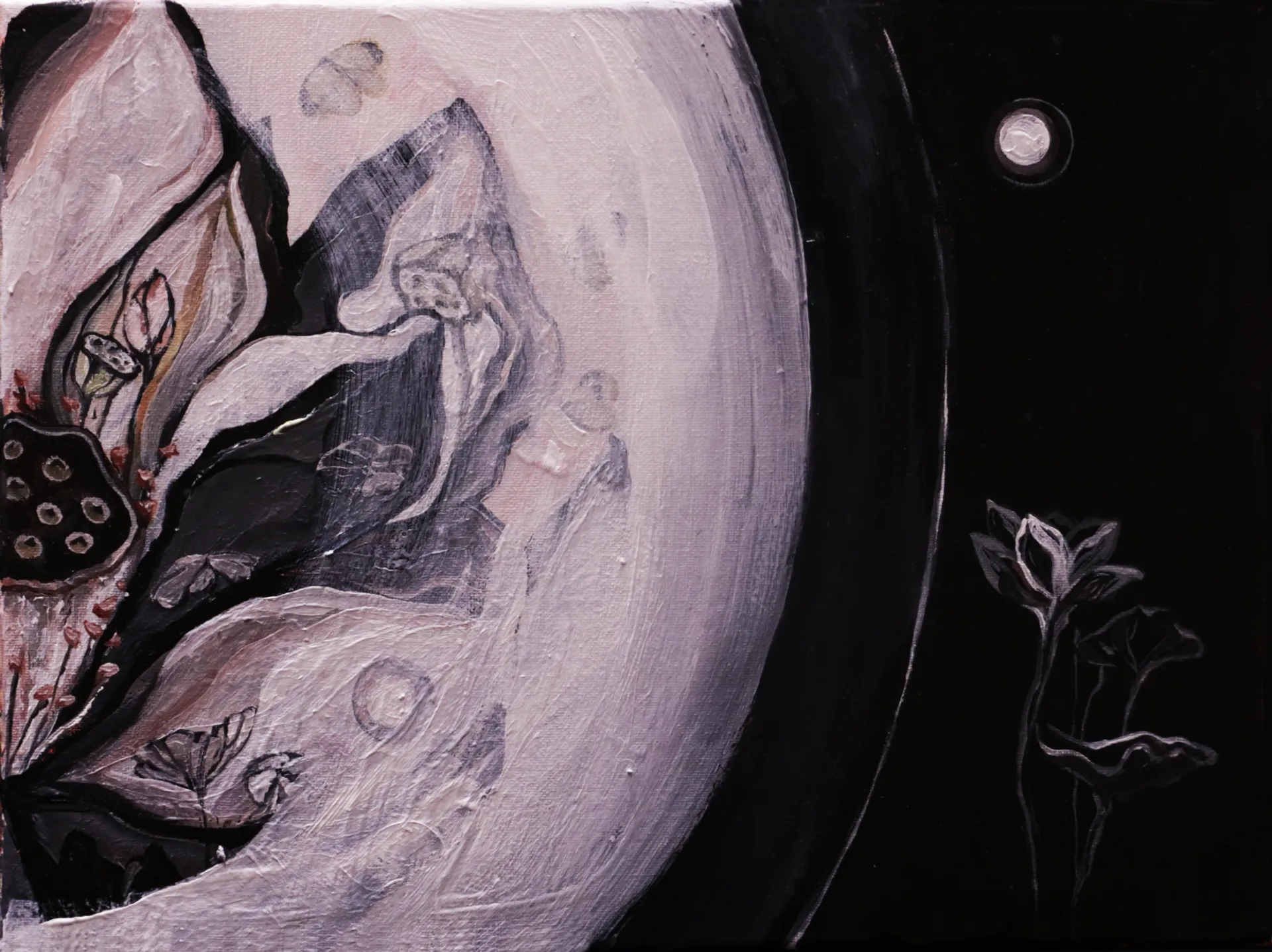 This project explores the philosophy of Taoism through an illustrated story The ” Lotus the Beauty” . The images use elements of animism, yin and yang, balance and life force as Tao visual elements. Each image is part of story and together as a whole. They stand alone united. The project features a girl who is both sensible and uncomplicated. At first, she rejects the love of the young scholar, cautiously watching to see whether he deserves her heart – even transforming into an odd rock. Finally, the two young people come together. She cares for the home, is intelligent, and knows her self-worth. Until Once she feels that her debt to him for being so kind to her has been repaid, so she left leaves the scholar to return to nature. “Tao emphasizes harmony, naturalness, simplicity and spontaneity. “ This story epitomises the Taoist notion, and she returns to nature. Meeting, and separating, are the constants of life. Balance is found in worldly life and in nature. The lotus flower takes on a figurative life, a manifestation of the Tao’s all-embracing spirit.