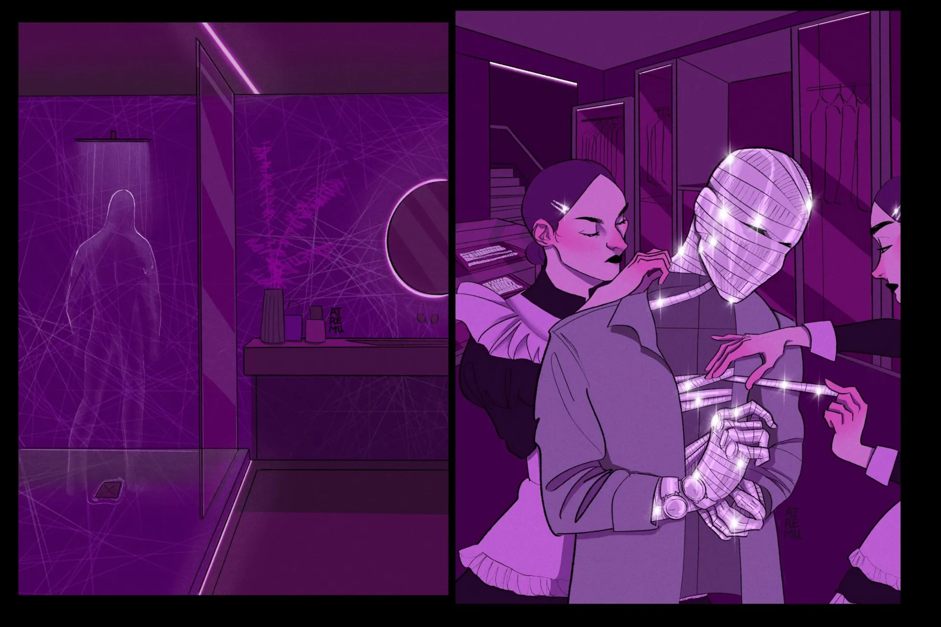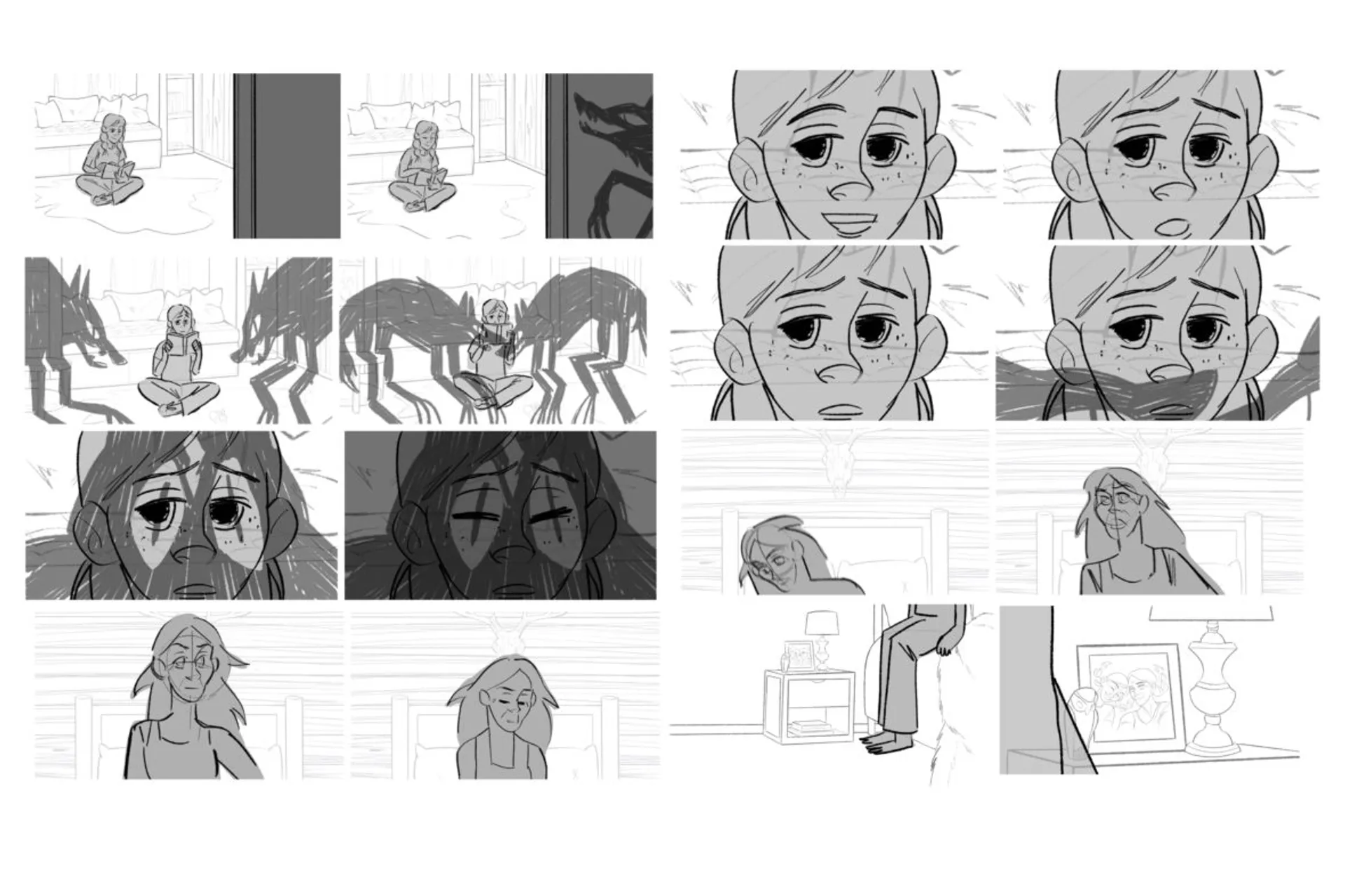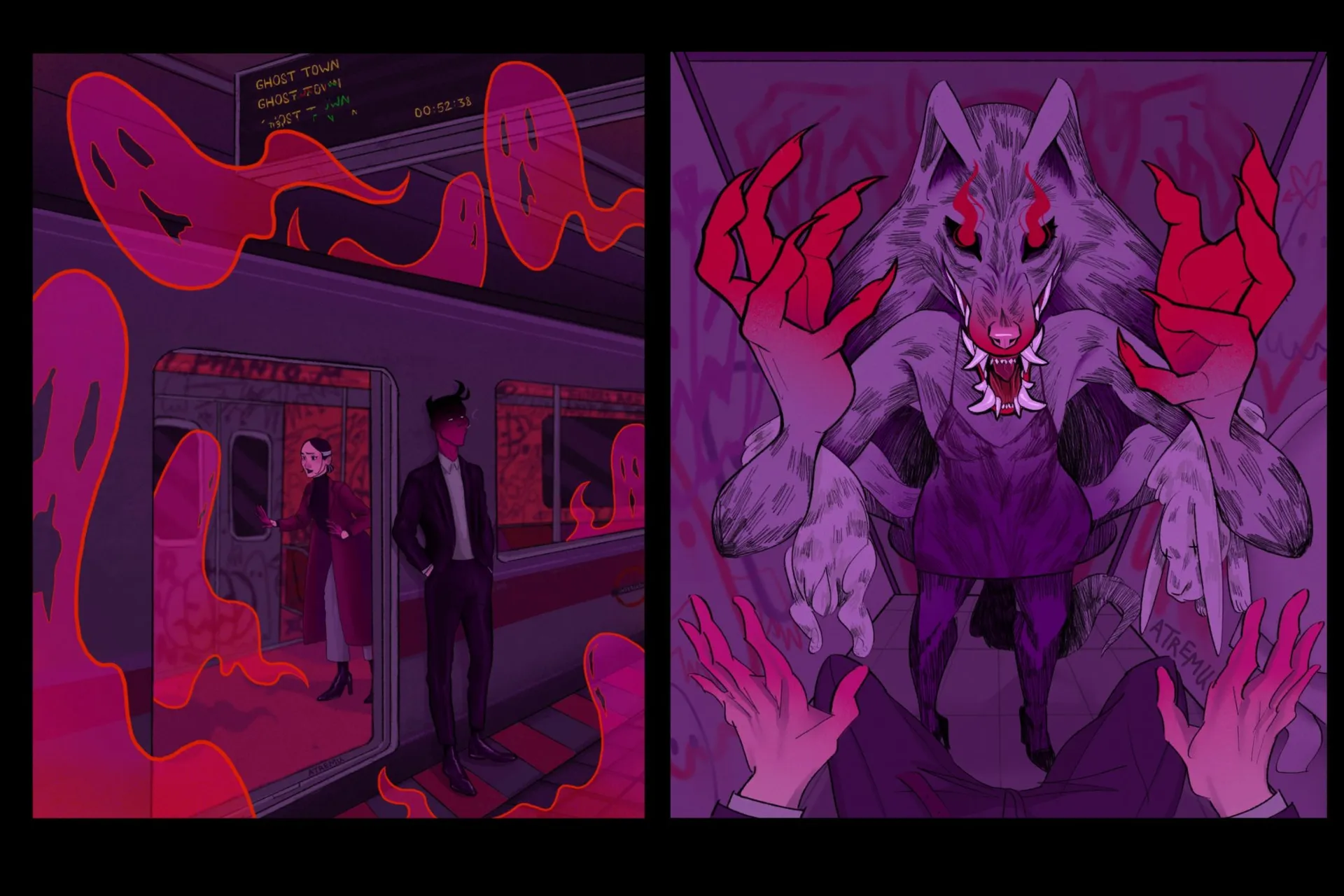 Karolina Šauklytė, also known as Atremu, is a Lithuanian artist known online for her upcoming webcomic about a monster murder mystery. Using Procreate and Adobe Suite, she produces colourful work straight from her kitchen. Her art is narrative driven, with character design that puts a spin on classic monsters such as the invisible man and frankenstein’s monster. Her graduating film, Wolves In April, also does not let go of the monster theme, the story following a hunter mother with a werewolf daughter. The animation is personal, inspired by her own relationship with her mother, a piece about becoming something different during your teenage years and learning to let go of the way things used to be. Now having graduated in Kingston, Karolina will continue further studies in Vilnius Art Academy. She is always up for a chat, whether it be work related or personal, so do not hesitate to contact her via email or Instagram DM!