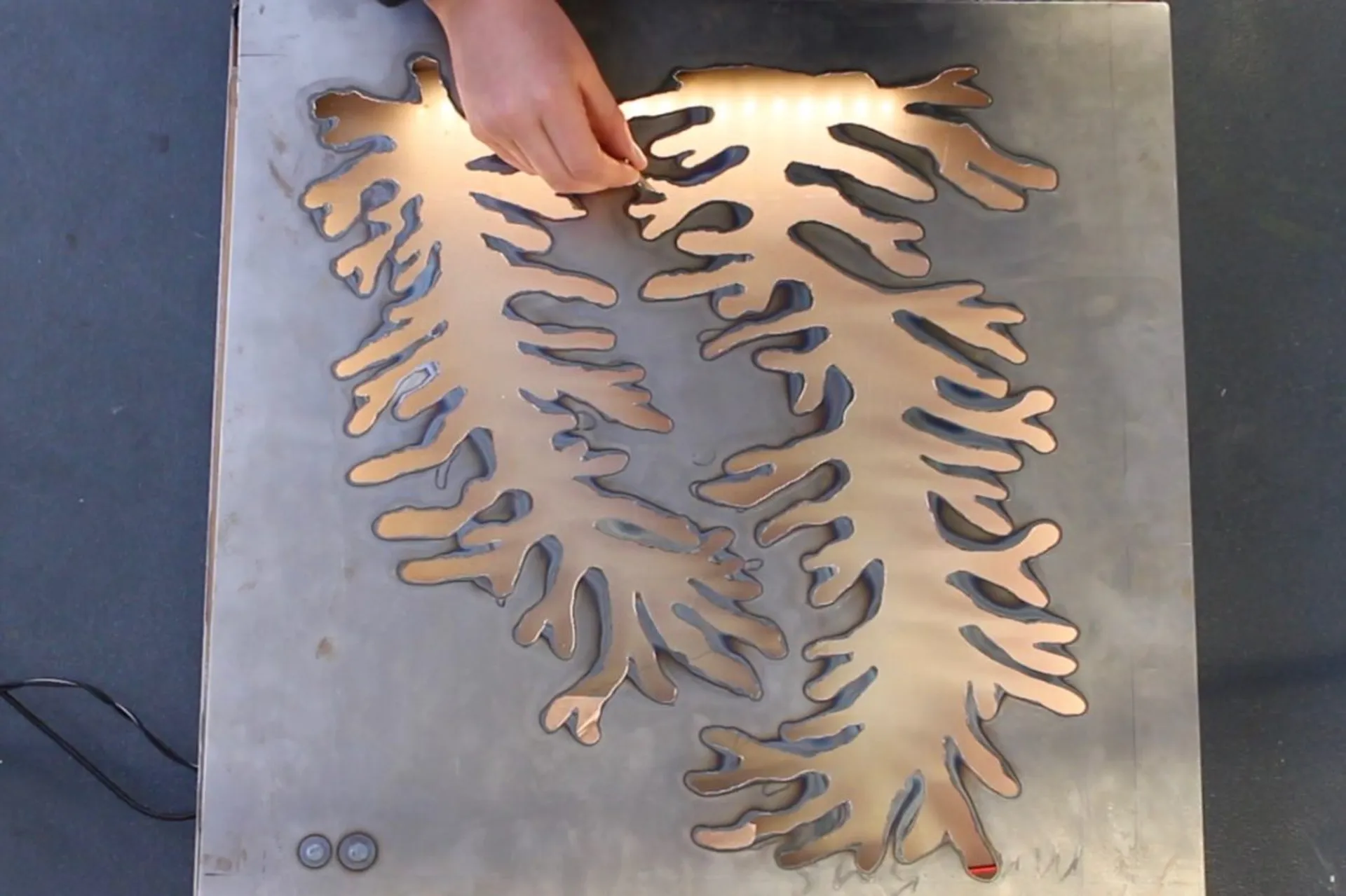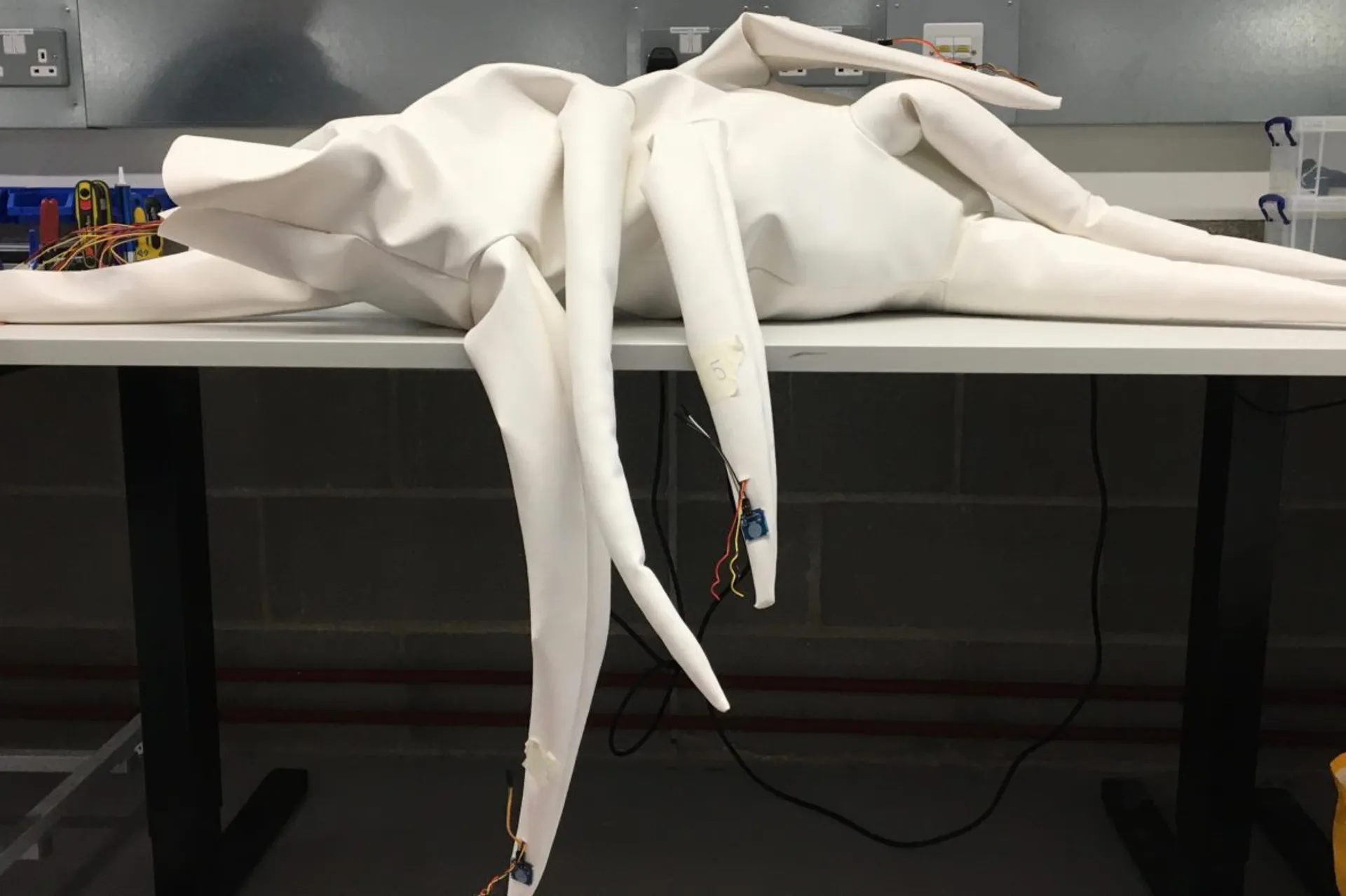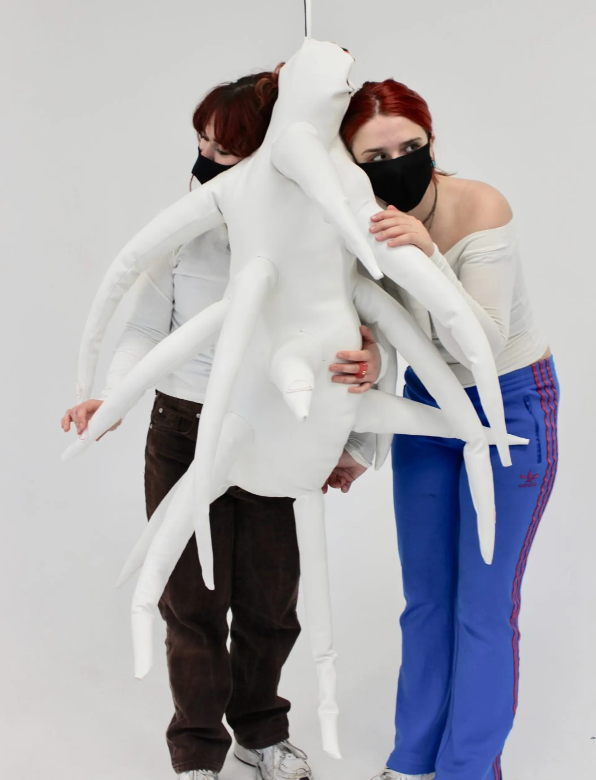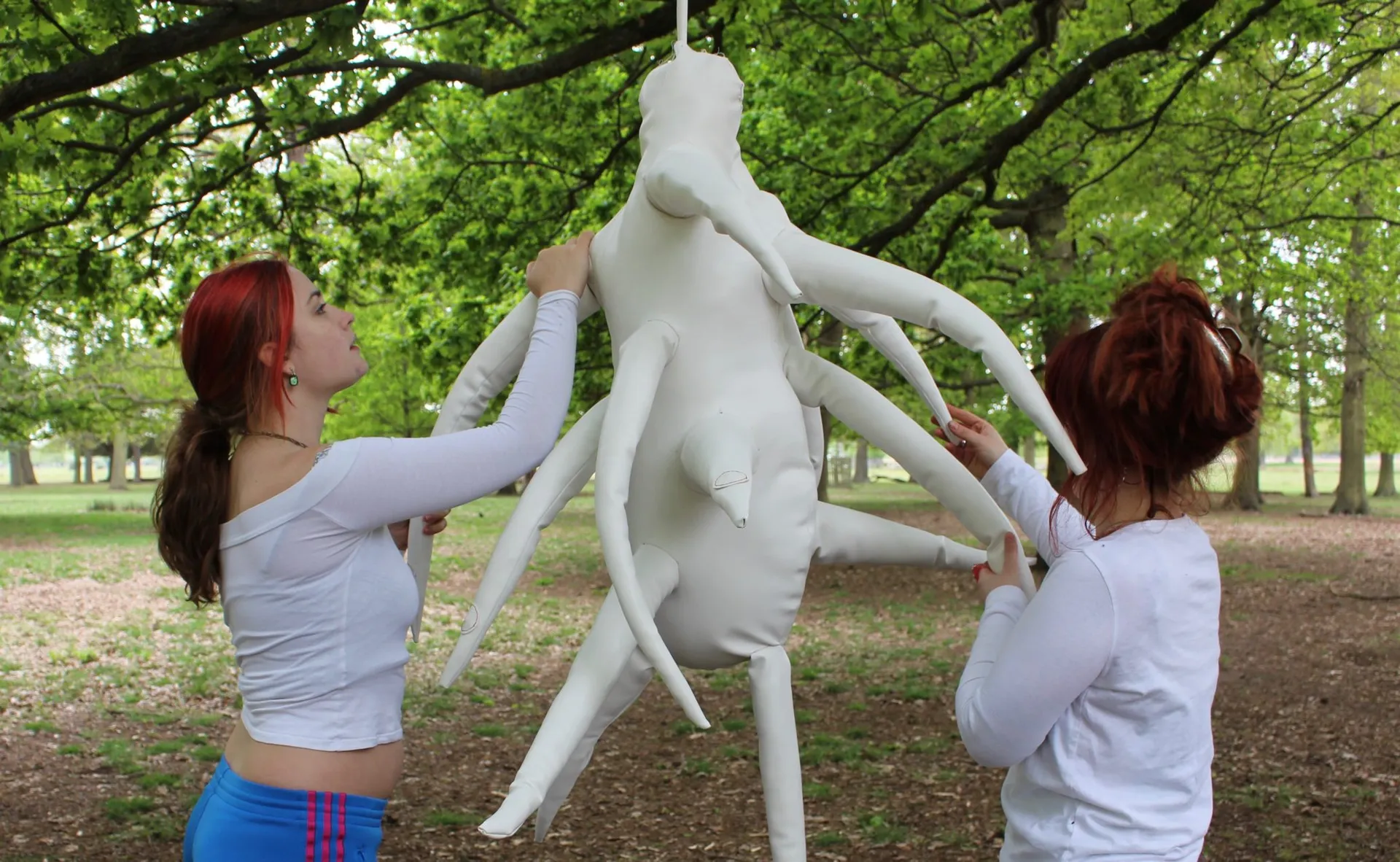I have made an installation inspired by Mycelium. A soft sculpture sprouts root-like hyphae that encourage the viewer to squeeze. Upon touch, the hyphae with red embroidered rings trigger birdsong or separate melody lines sang by my mum. The weaving of the sounds mimic the growth of the hyphae.