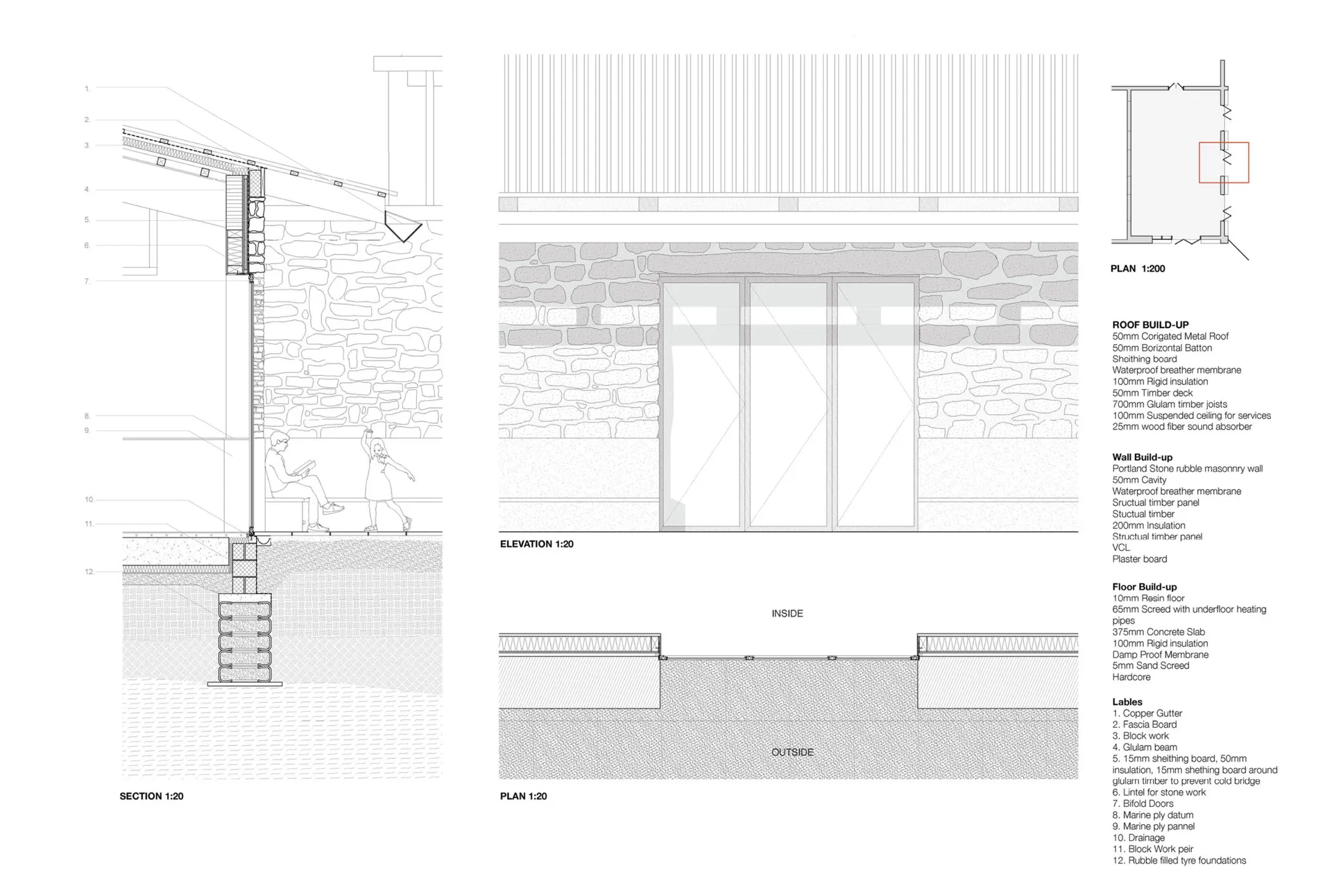 The market hall is a stone and timber structure with a civic quality with a public offering of a water feature and places to sit. It also reminds one of gate houses but also harks back to the terraces that would have been on the site before the east end slum clearances.