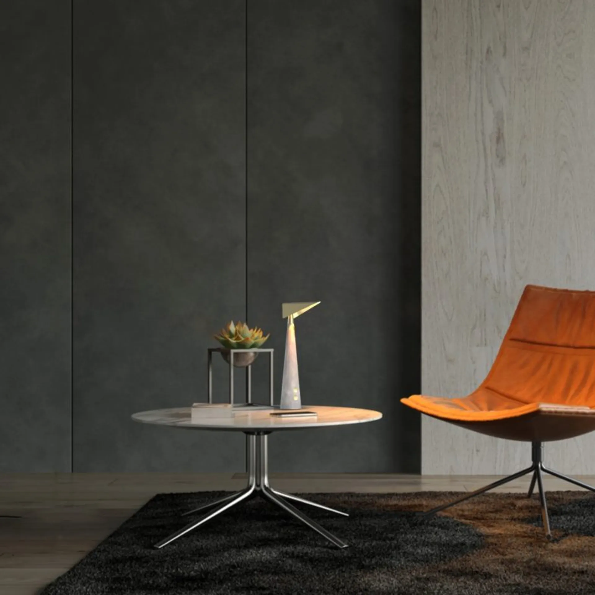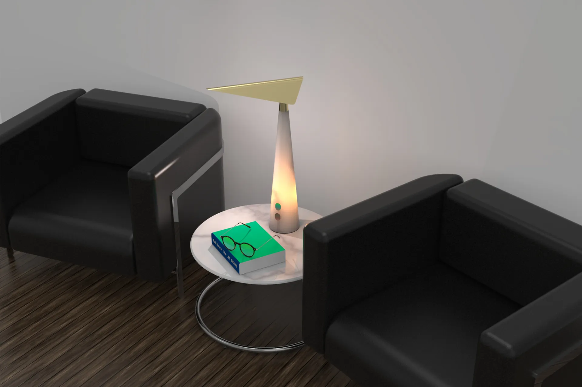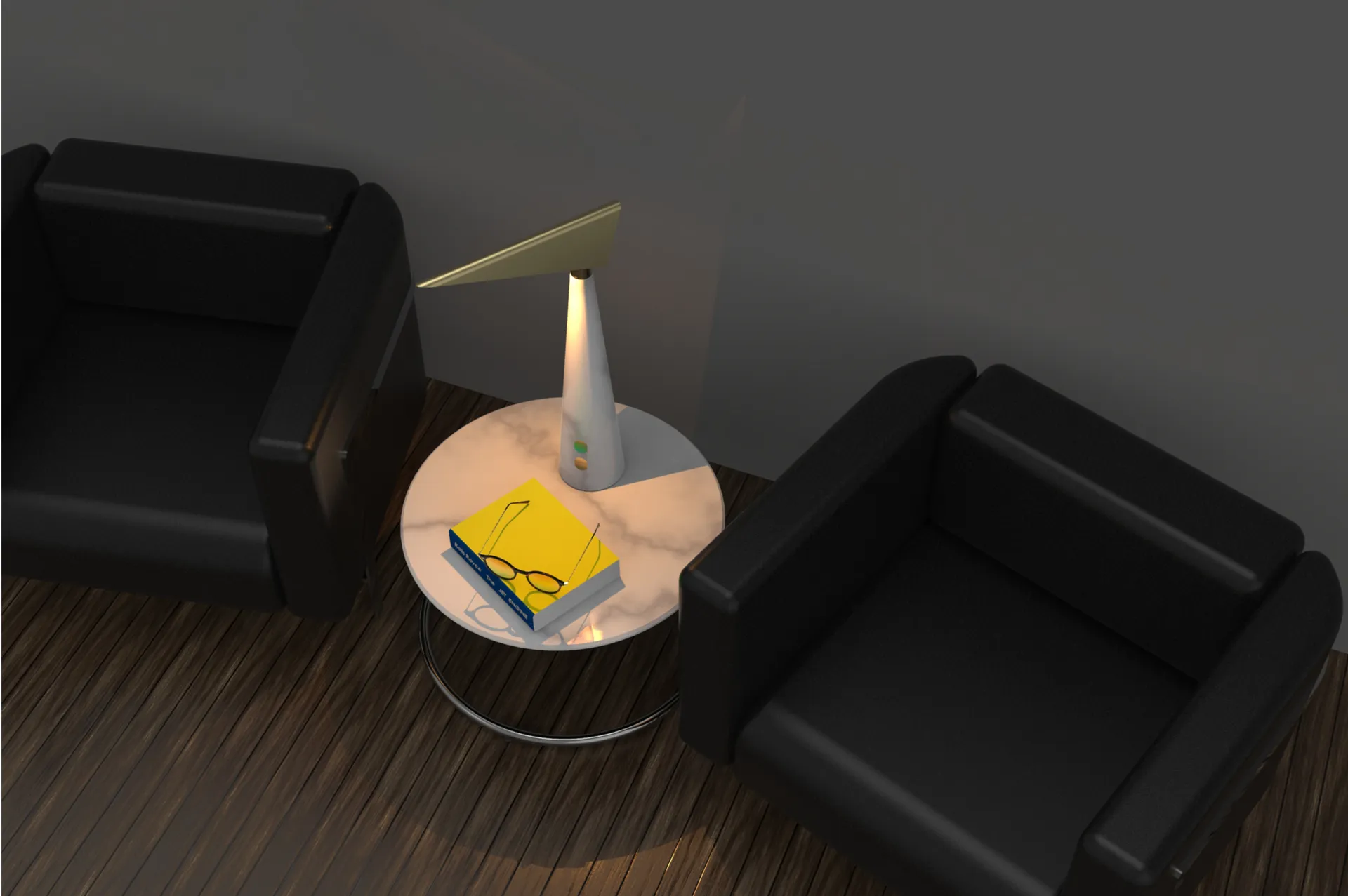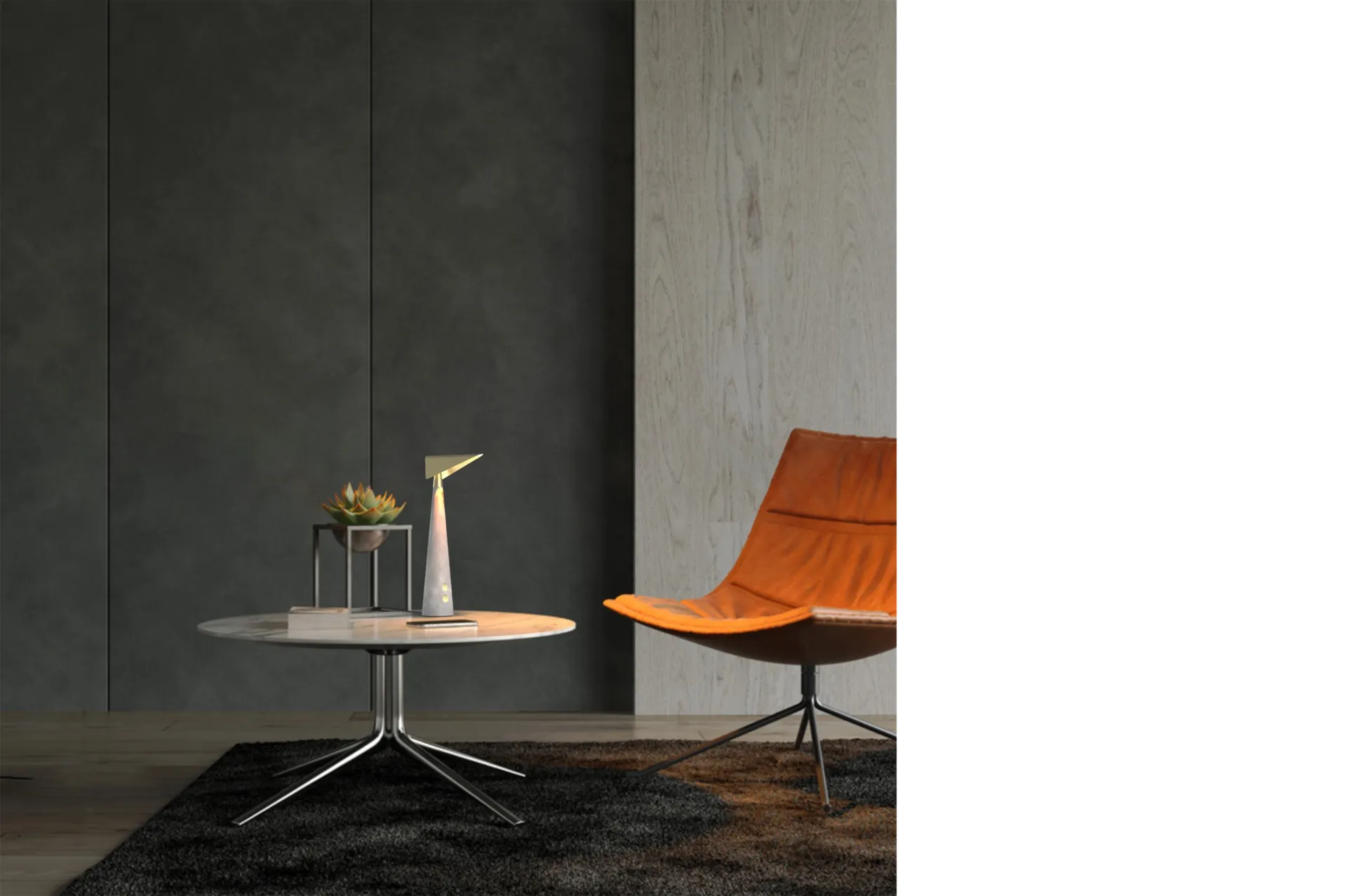 A desk lamp that has a dual function, a minimalistic and slim design and consists out of high-quality materials.
