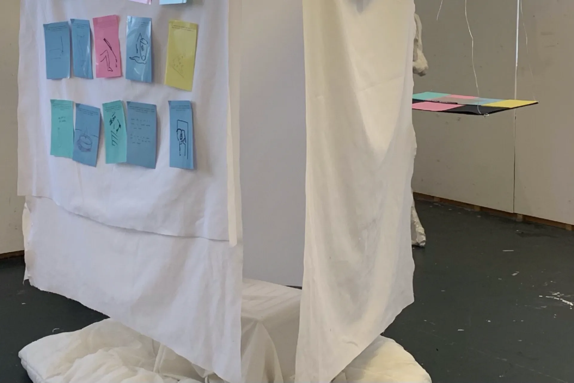 Expressing our emotional turmoil is believed by many cultures to have healing effects. My work encourages the viewer to express a painful memory – this memory , expressed on paper, is attached to a sheet to create a quilt. This quilt exhibits a shared vulnerability between people, while also encouraging others to heal through self expression.
