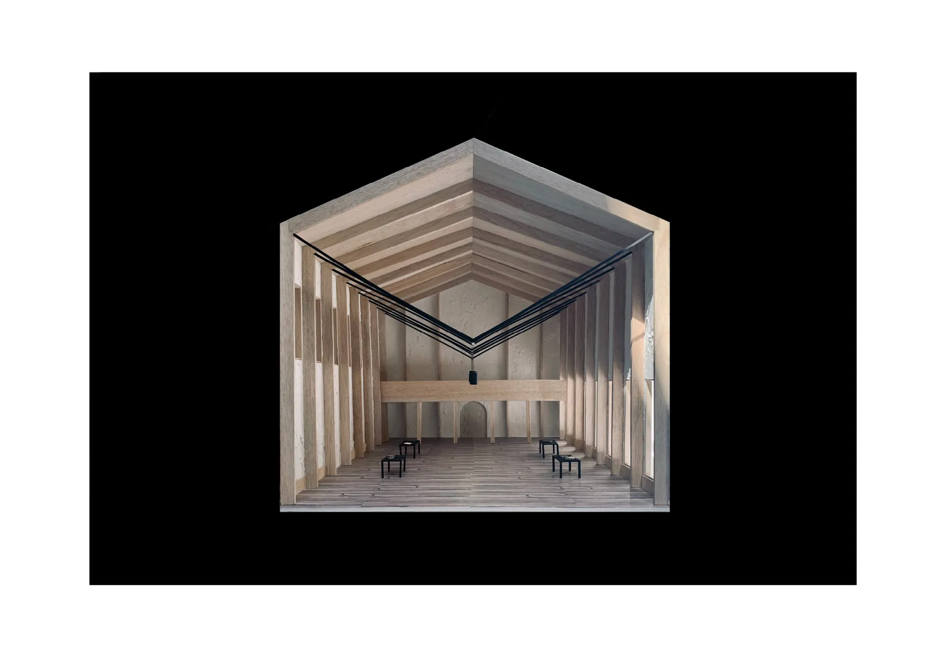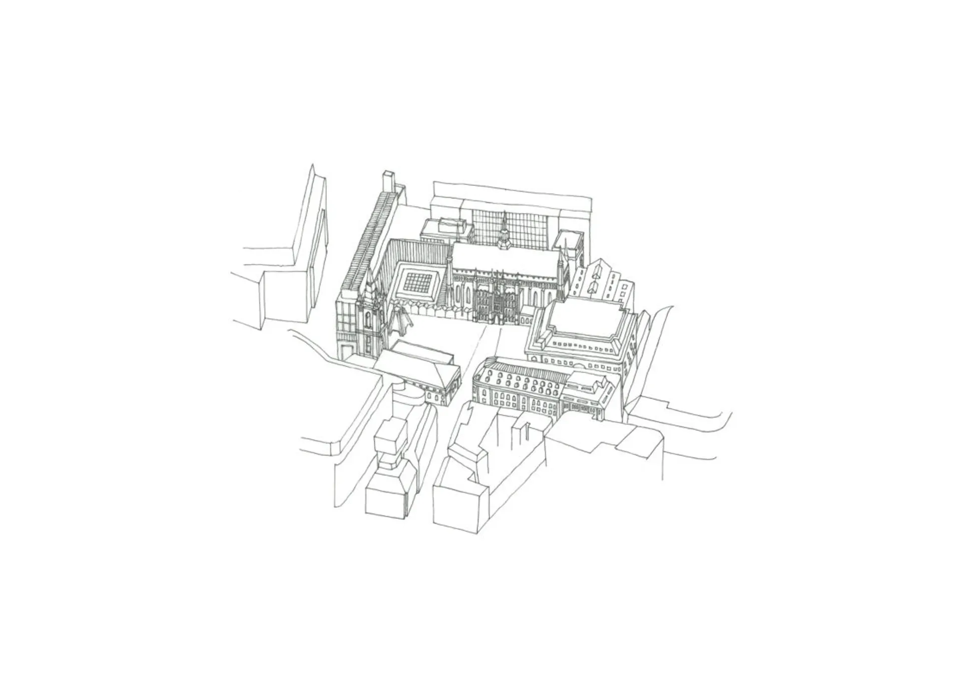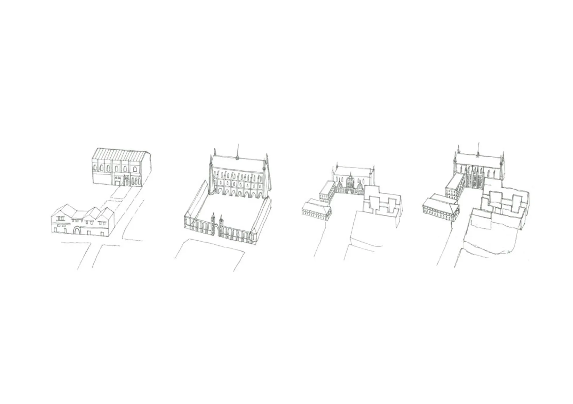 This thesis responds to the ambivalent conditions of The White Cliffs of Dover, England’s ‘façade’, between land and water, Britain and Europe. A small tower provides a place to stay along the cliff walk, with a sheltered walled garden – a room open to the sky. Exploring the evolution of the courtyard at the Guildhall in the City of London from a private yard to a public square led into the main proposal: a People’s Palace for St Margaret’s-at-Cliffe. The complex forms an edge to future expansion of the village. Its enclosed court relates to the neighbouring farmland, providing a marketplace and orchard. The more open court is the focus for a museum, gallery and Great Hall, situated between forest and garden, settlement and landscape.