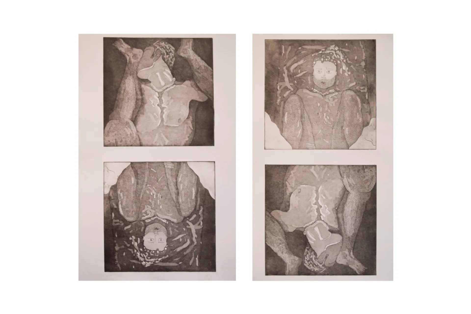 My practise focus’ on 2 main themes, power dynamics and identity, largely in the context of LGBTQIA+. I use these themes from both a personal point of view and wider community view, allowing me to make personal work as well as work that everyone can place themselves inside of. Using a variety of materials in my practise which include print, collage, sculpture, sketching/drawing, film and publication, I explore things from different avenues, but mainly use the process’ of print and collage. Having begun focusing on a specific area, Print, I have been able to produce work I feel is truly indicative of my approach to an art practise. I have been able to explore new printing techniques, mono-screen printing, etching and risograph, which, through trial and mistake, have become pivotal within my practise. The themes of power dynamics and identity were easily explored through my materiality of choice, using materiality as a way to initially construct ideas. The materiality is also considered as I want it to inform the artwork itself. The main contexts for my work come from the wider LGBTQIA+ community, exploring the boundaries of gender, sexuality and queerness. Exploring gender identity, homosexuality, homophobia, the history of gay culture and the notion of “self” presented inside this community I have been able to dive deep into further queer research material. By its definition the LGBTQIA+ community is not binary and therefore my practise explores these different avenues. I view my work as a prompt for conversation, I see the conversation as a continuation of the artwork, and just as important as the artwork itself. I therefore view my work as a vessel for communication, It’s important to have conversations around these social issues with anyone to understand each other’s points of view and educate each other to move forward constructively as a society. I want to promote the viewer to explore their place in a wider context to world or an object.