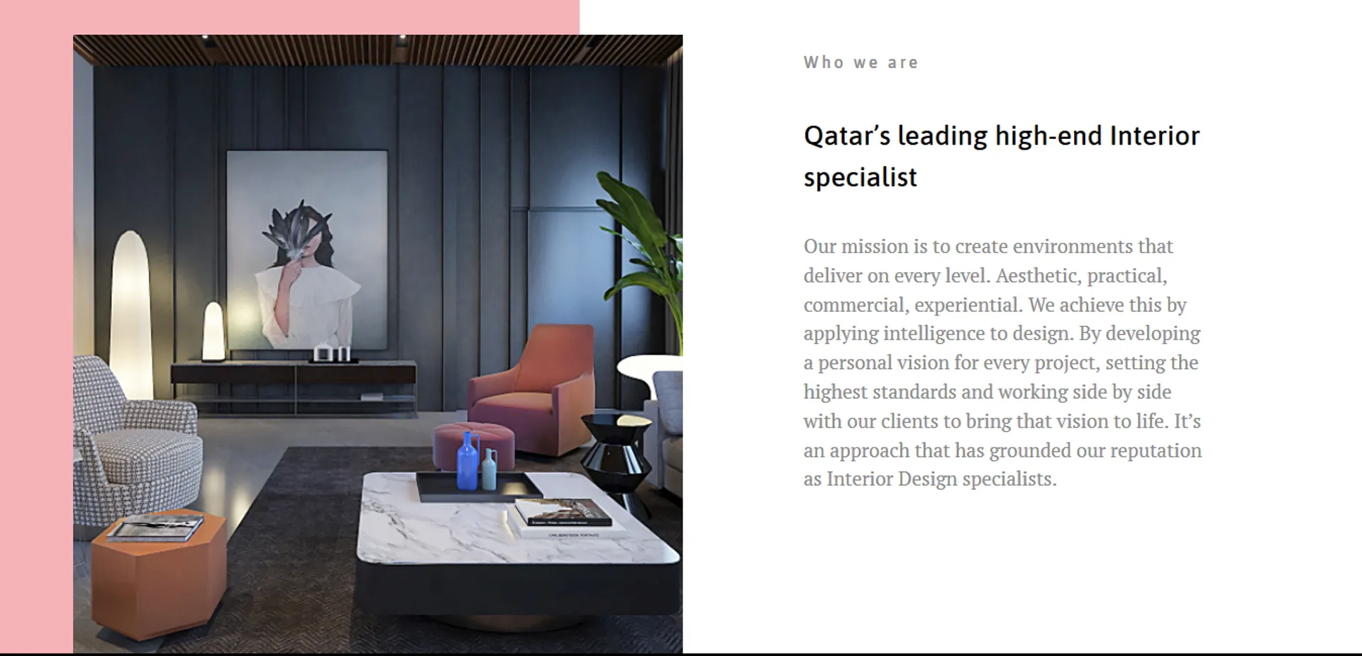 Our mission is to create environments that deliver on every level. Aesthetic, practical, commercial, experiential. We achieve this by applying intelligence to design. By developing a personal vision for every project, setting the highest standards and working side by side with our clients to bring that vision to life. It’s an approach that has grounded our reputation as Interior Design specialists.