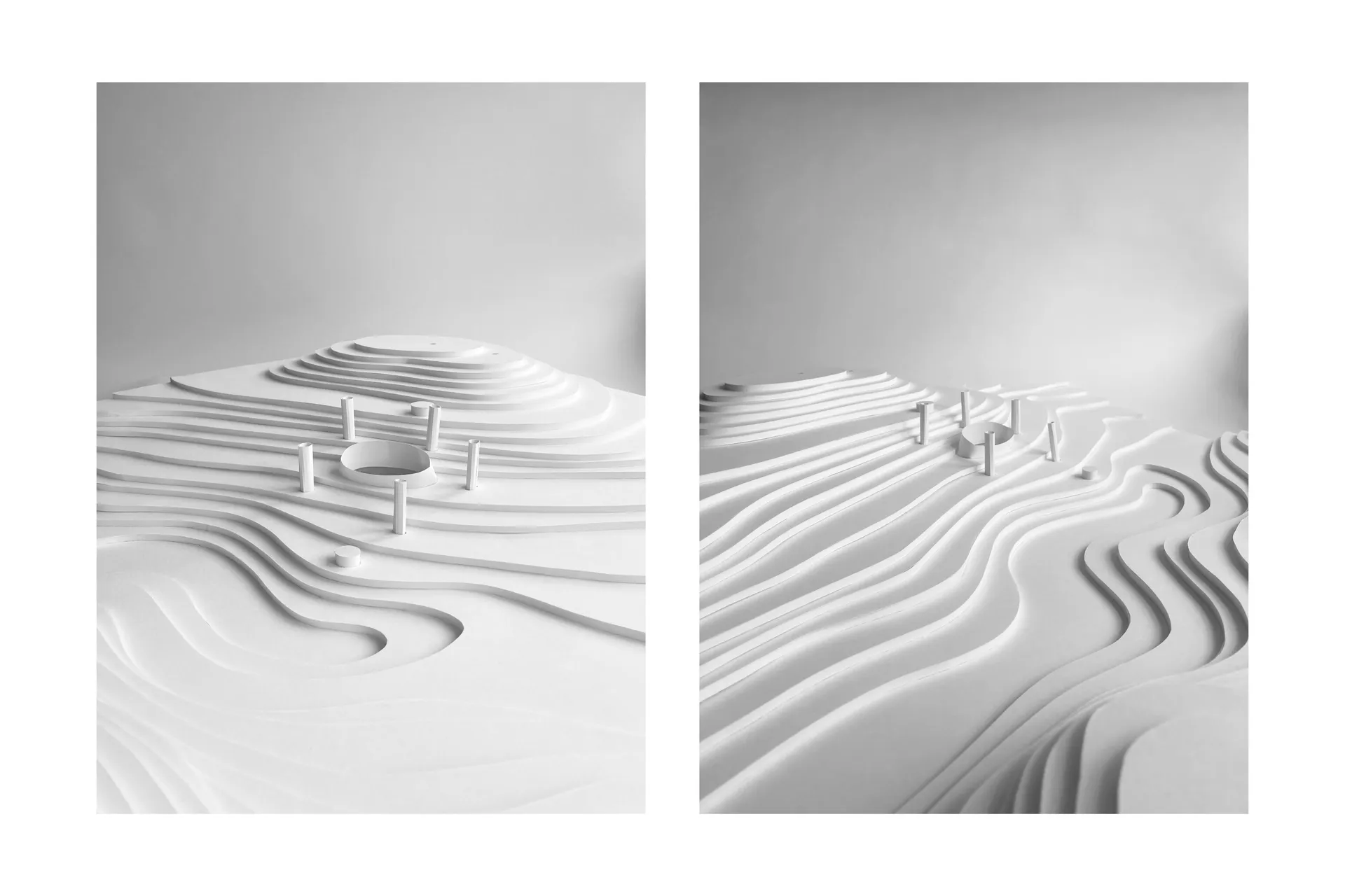 The project gave rise to an opportunity to explore tectonic and spatial qualities in a unique way, resulting in a proposal that straddles the dualities of narrative and reality, open air and subterranean, carved and made.