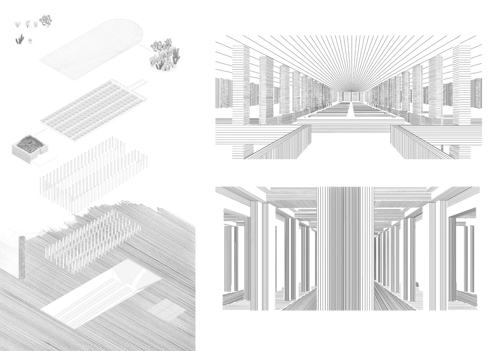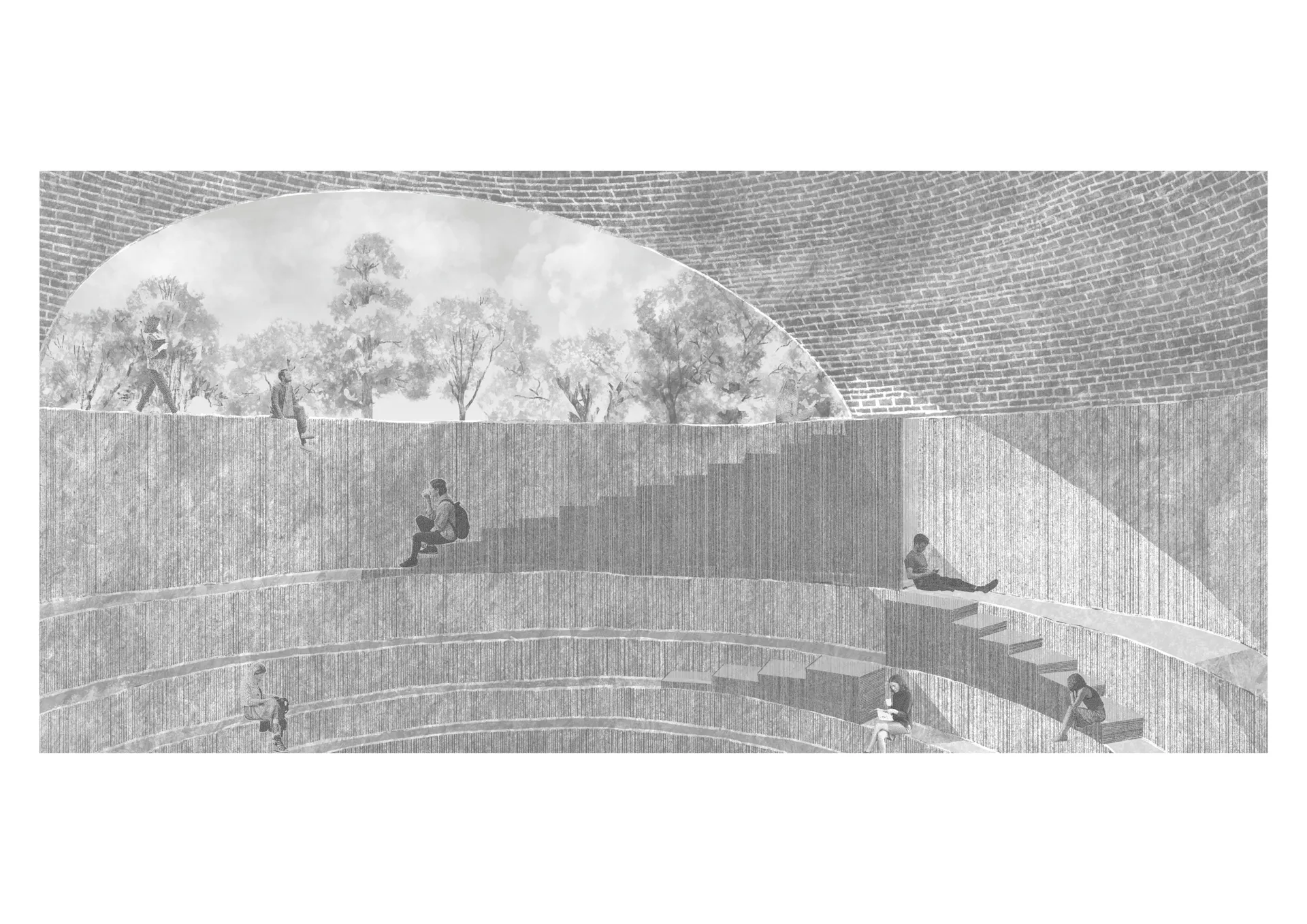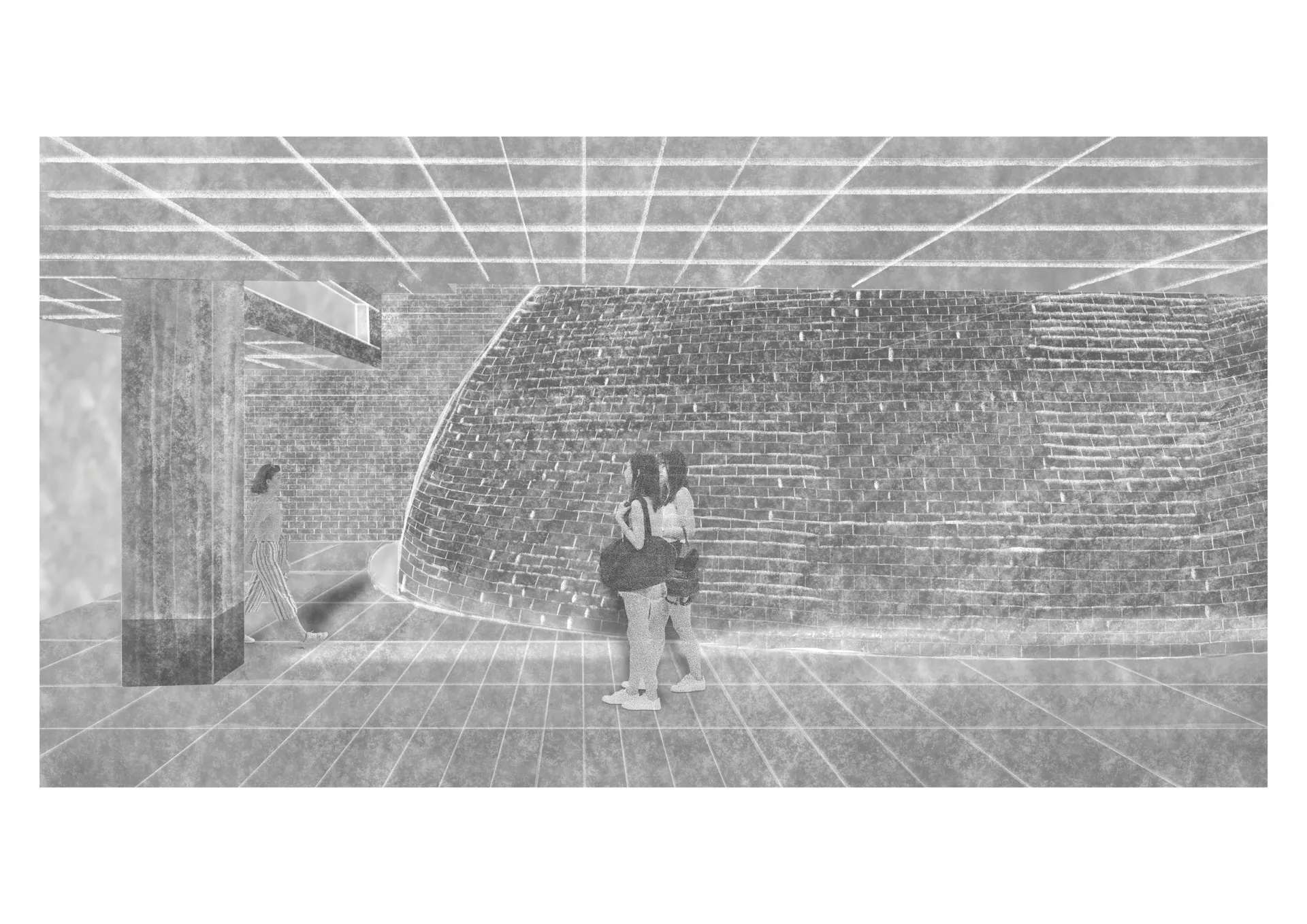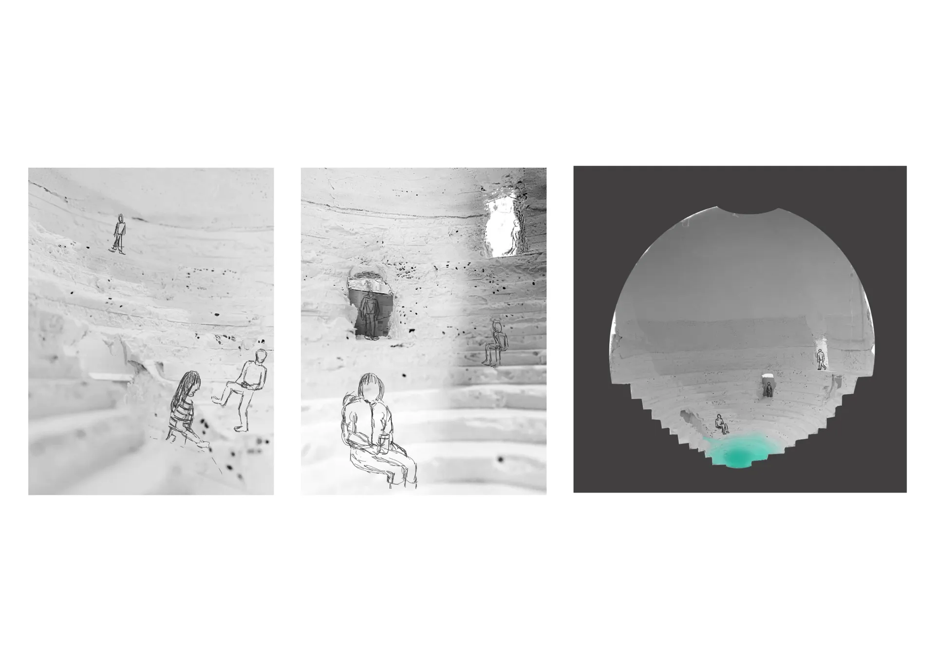 Set in one of the most water-stressed areas of England, East Sussex, my proposal seeks to use the element of the grotto as a vessel that captures water from flood zones and transports it to areas experiencing drought. Grottos in my project are used to mean stretched spatial thresholds which unite indoors and outdoors. A grotto protects the inhabitor from the elements by slowing their effects but allowing them entry to the protected space. Three connected elements create this network. Firstly, the outtake building is located within the flood zone of the powdermill reservoir, secondly, the subterranean cistern located on the hills north of Brede Valley and an aqueduct stretching from Sedlescombe to Westfield Village. The domed step-well captures overflowing water from the reservoir and guides it to the cistern where it is filtered and stored until Summer. Then, it leads to an aqueduct over hills and valleys to Westfield. Each infrastructural element is designed for secondary public/civic use during parts of the year. During Spring when water levels are lower at the reservoir, the out-take building is home to the Hastings Fly Fishers Club and in the summer, used as a summer school about water processes. The civic space above the cistern can be used all year round as a public park and a means to learn about the ecosystem and different habitats. These three provisions which carry water create a narrative much like the book fragmented, yet effective.