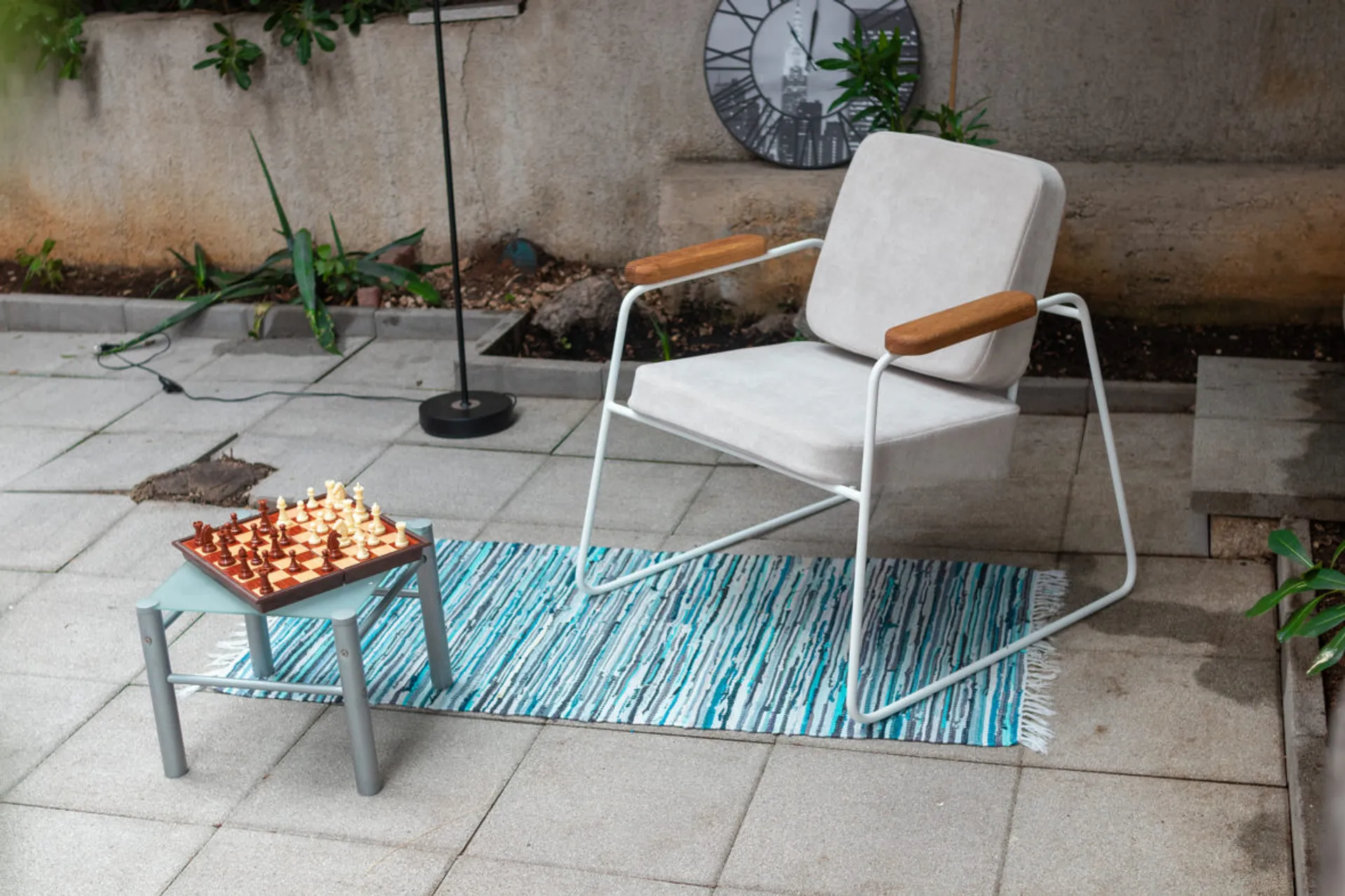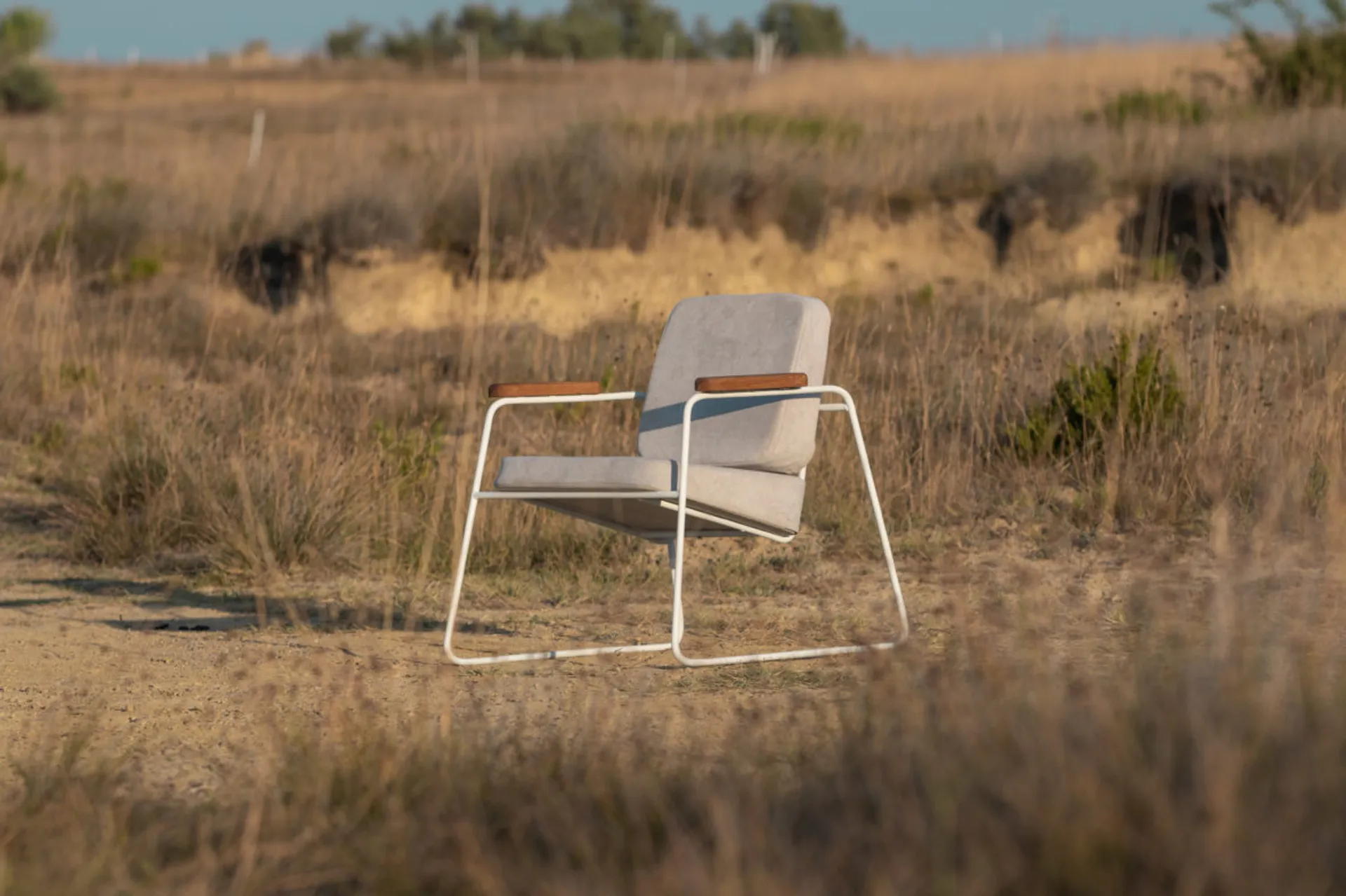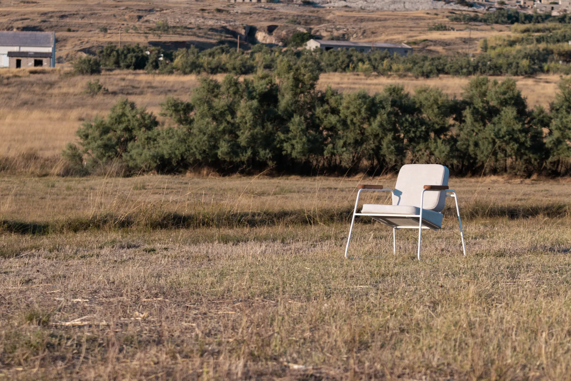 A thin steel construction and softly rounded corners are what makes this chair elegant. However, because of the massive smoothly sanded armrests, when resting on a chair, users will have a sense of natural materials.