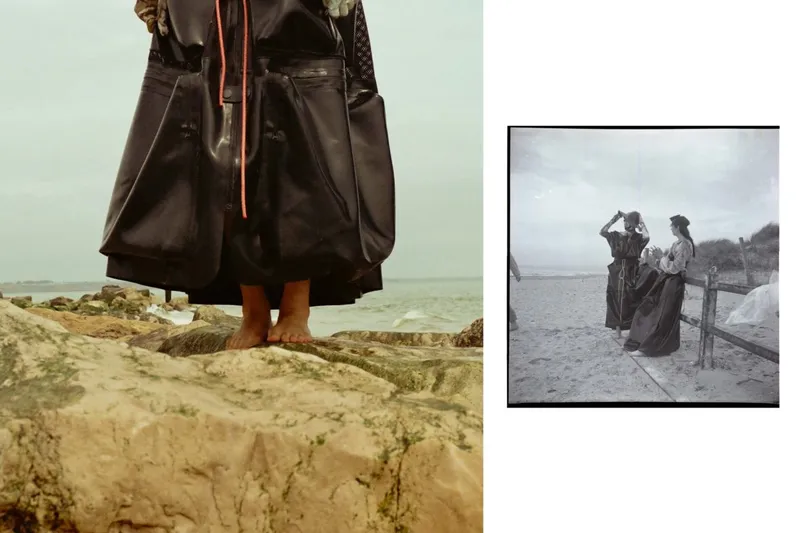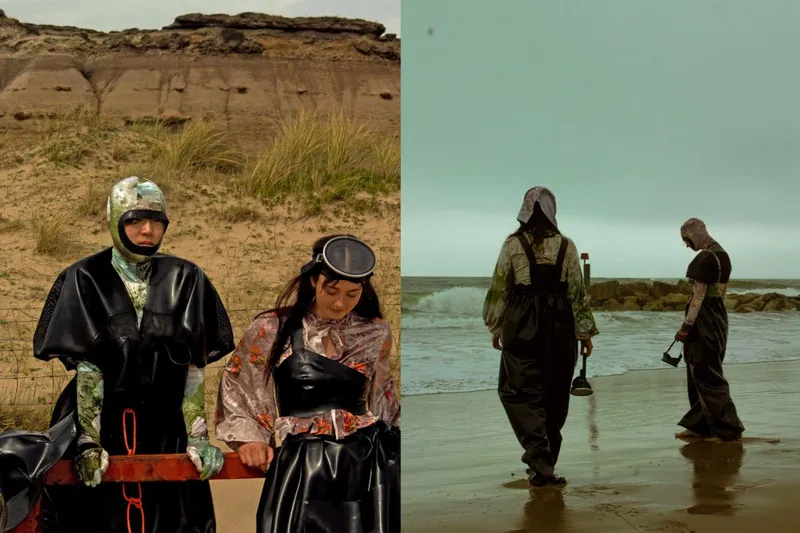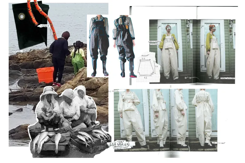 Haenyeo [해녀], the female free divers of Jeju Island are the inspiration for this collection. I wanted to create an empowering collection that celebrates their strength and individuality, using latex, a renewable material, to create strong, voluminous shapes. Each print comes from analogue images I took whilst studying and travelling in South Korea, edited to create modernised floral patterns that reflect the diver’s weathered clothes.