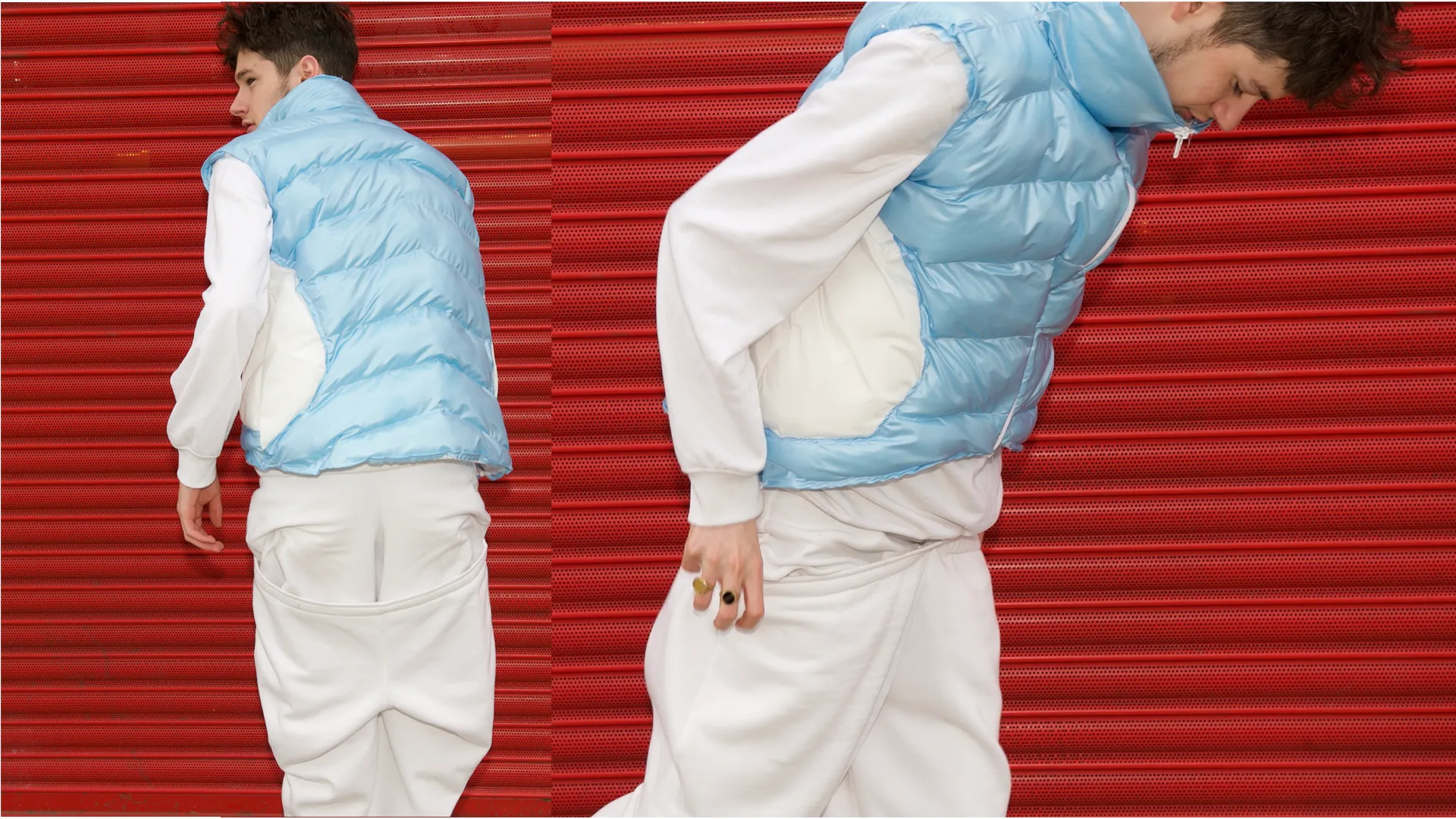 My project explores masculinity from the perspective of straight males growing up in London. Utilising the details of menswear this outfit explores elements of womenswear and referees of the female form in order to portray men in a more emotion/vulnerable state.