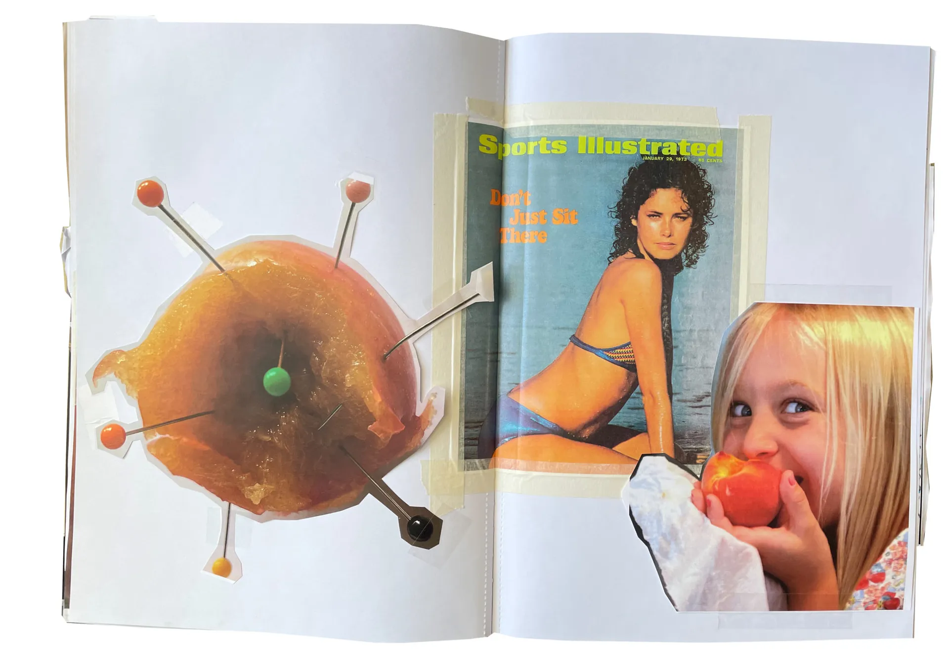 The relationship between fruit and female sensuality. I visited the Soho Original Adult Store to find magazines to collage for research. Inside the store, I found it only catered to men and sold objectifying images of women. I wanted to rectify this by celebrating the bountiful female figure.