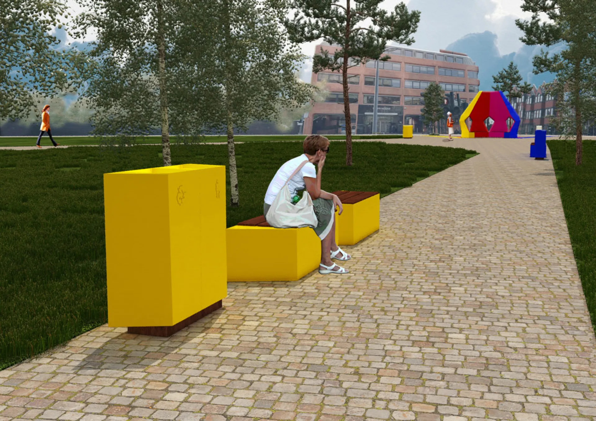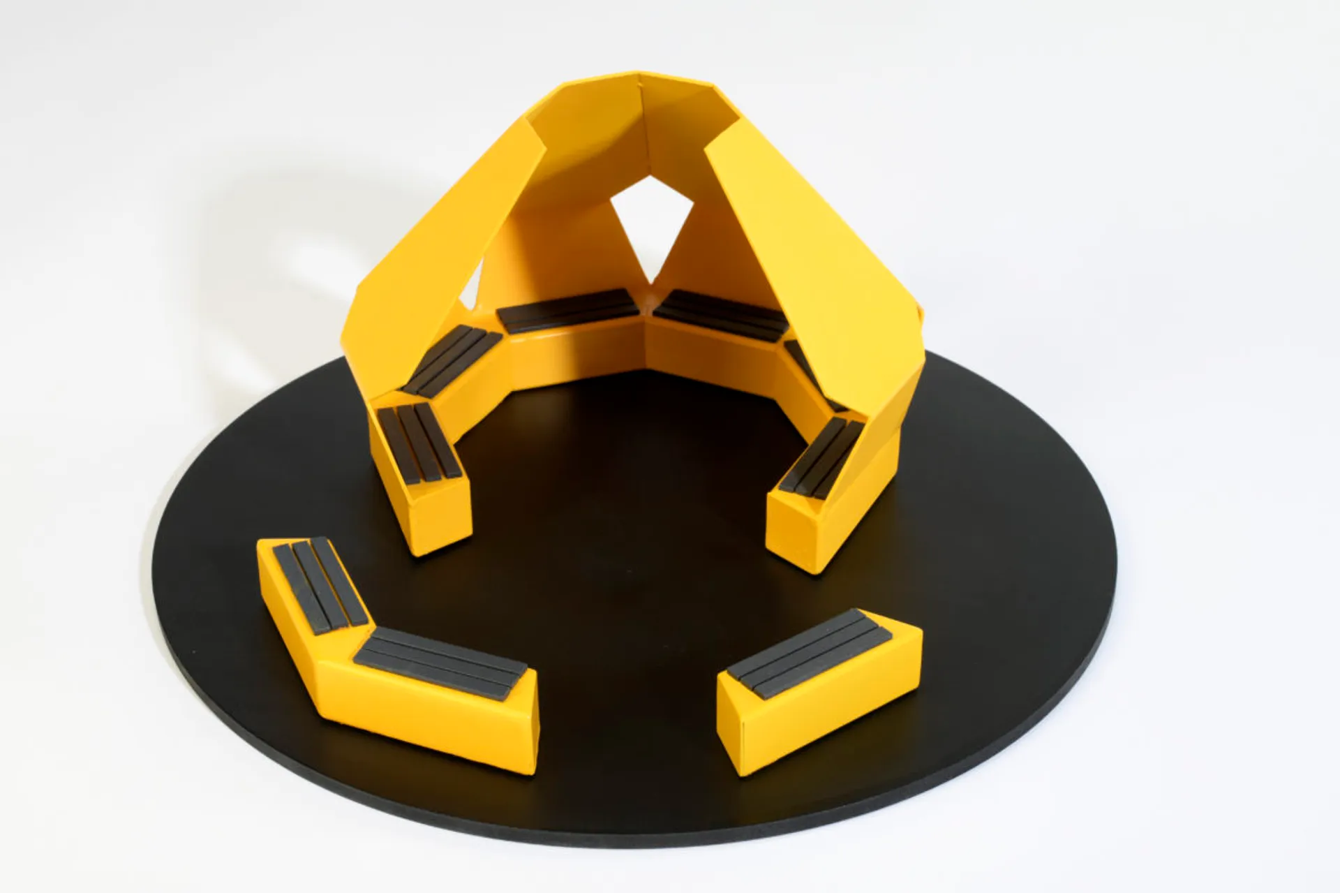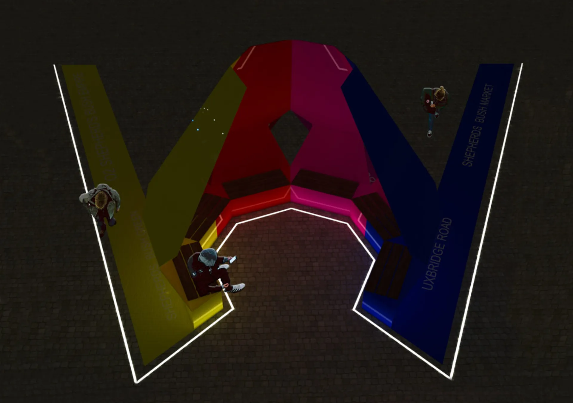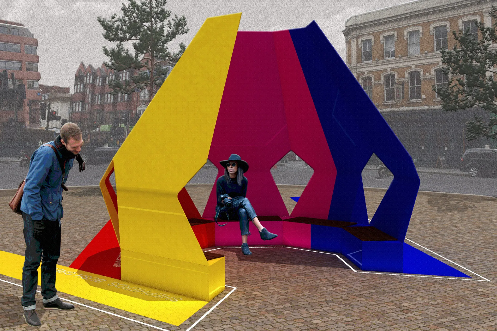 “MEETING-POINT” is a group of seating installations for appreciating the background of the Shepherd’s Bush also an appropriate solution for a busy and noisy neighbourhood to create a peaceful area for visitors. The different angles make it look like a tent, protecting from the striking sun, wind, and frequent rainy days in London, also reduces the noise and the stress of hectic streets, interpreting an outdoor shelter.