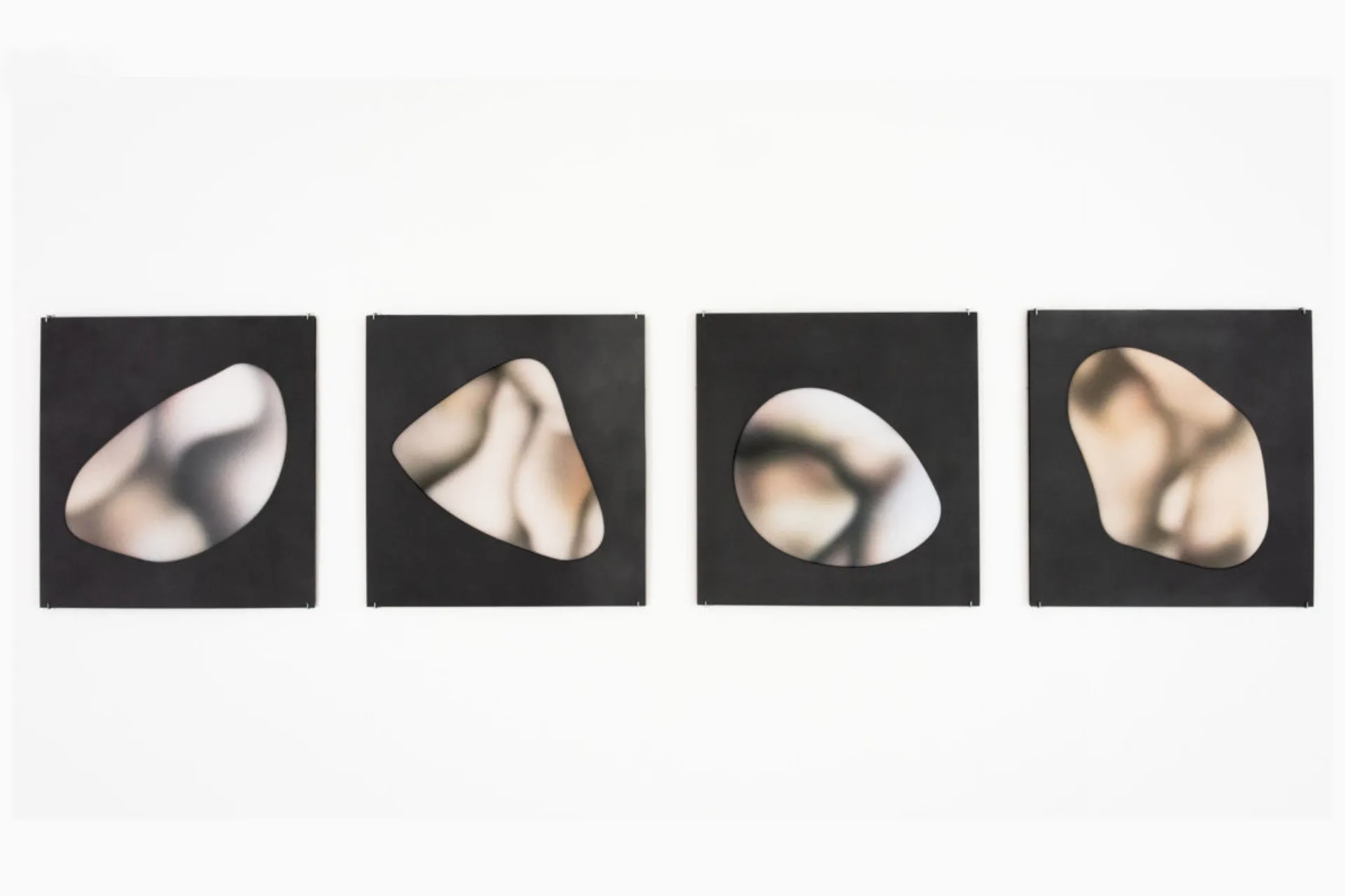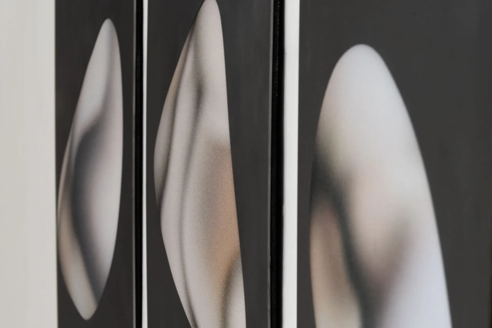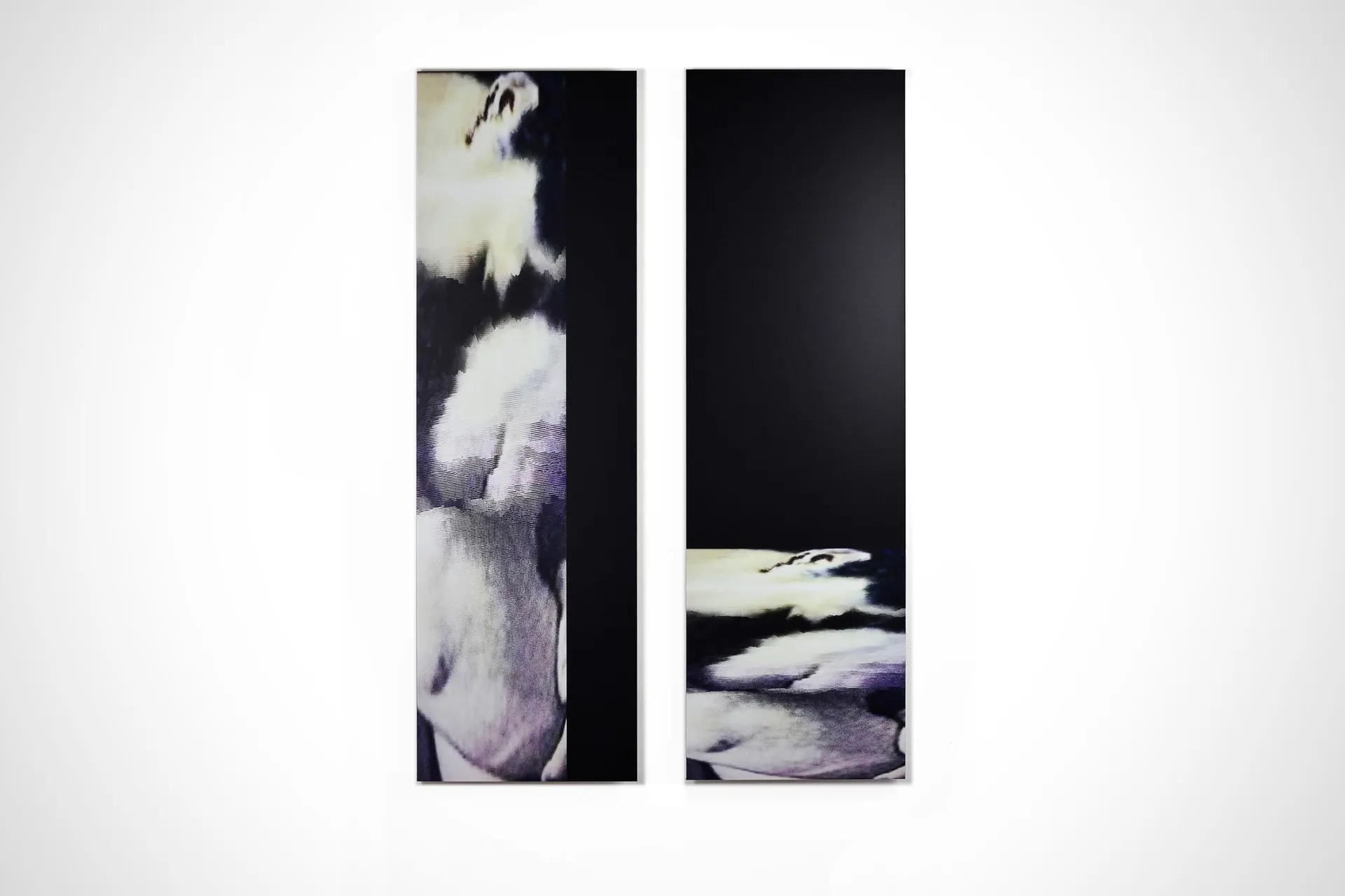 Display is an important consideration, and her recent works have evolved into semi-sculptural pieces, combining materials suggested through the images subject, history and situation. Bodily imagery printed on memory foam is pressed through steel; soft sensual imagery appears as if bolted to the wall. These are perhaps more unsettling than earlier works which tended towards gentle ambiguity and are more visually demanding in their juxtaposition of image and material.
