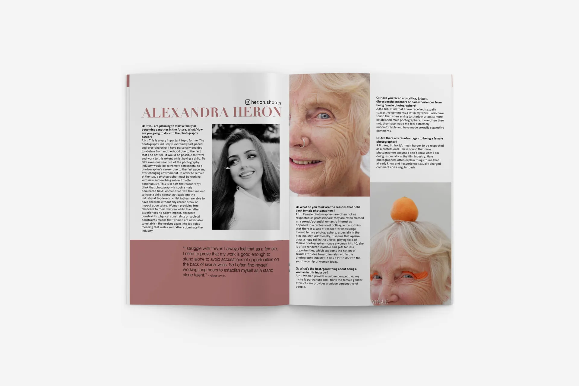 The inspiration that led me to start this project was my awareness of gender bias in the creative industries. I have always been intrigued by photography, yet people would frequently say to me that it could only be my hobby, not my profession as it is a man’s job. That seems to confirm the idea that gender bias in the creative industry exists, and this drove me to become more sensitive about how female photographers are portrayed.