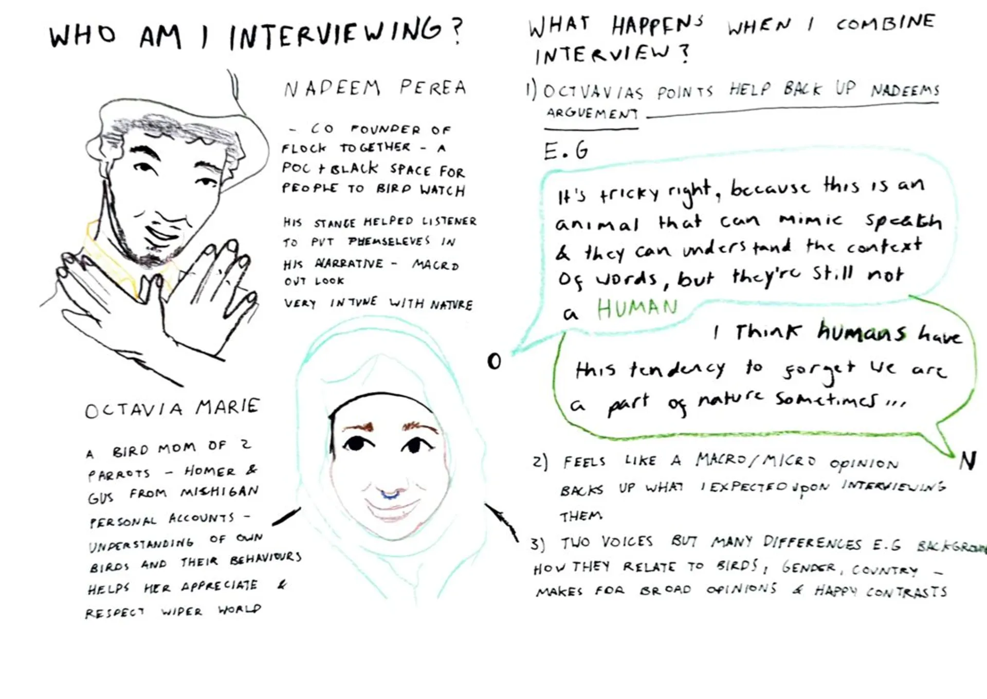 Throughout my project I have been exploring our relationship with nature via pets. My animation explores this through two interviews about two different relationships with birds, creating deeper introspection. I hope it inspires others to form a deeper bond with the natural world.
