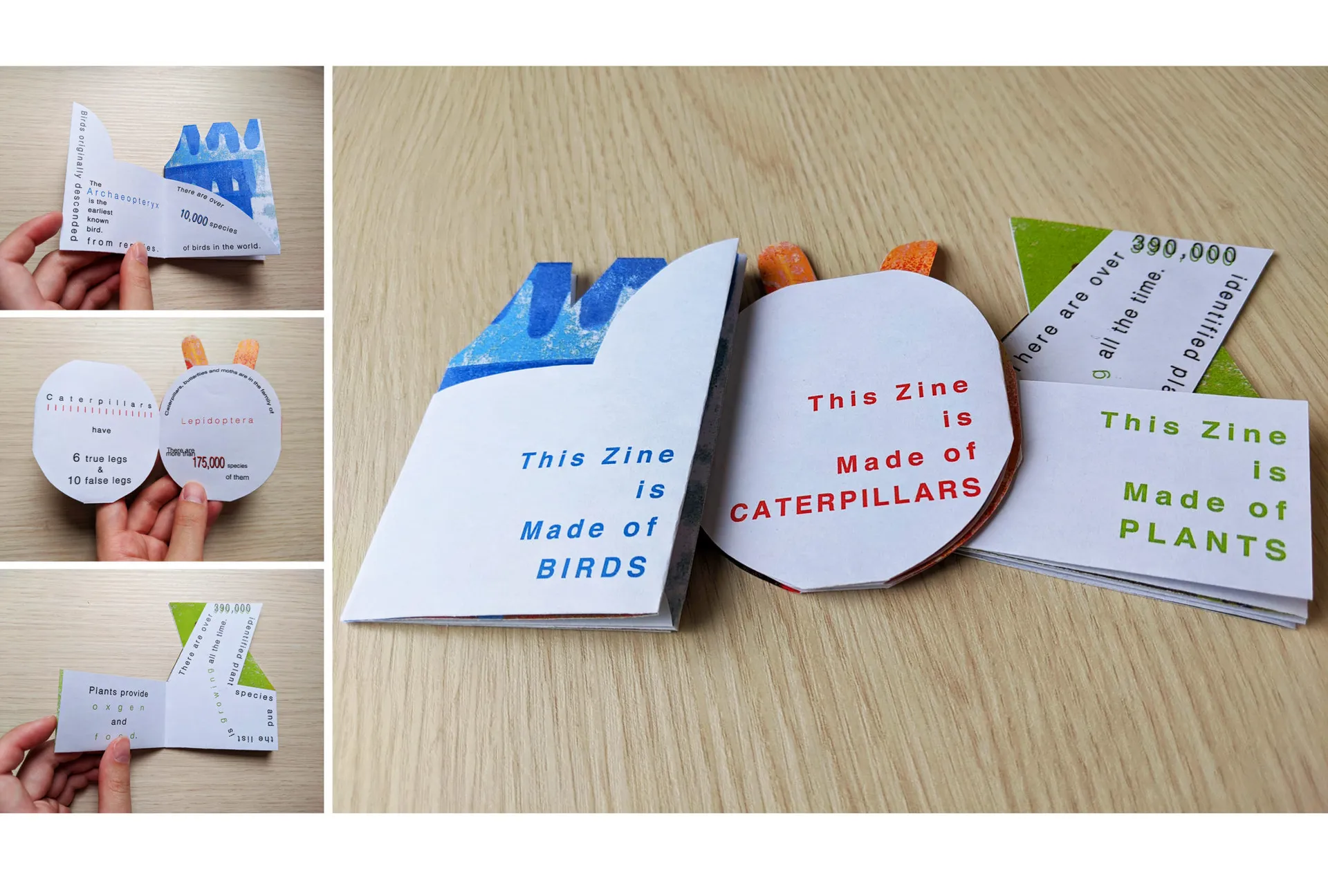 Studying and keeping caterpillars from a young age developed RedLouise’s fascination with ecology. She thinks that if nature is regarded as a commodity, beauty and artistic value are definitely one of the big selling points. She is always finding gentle ways of working to approach serious tones and topics in order to make people care more through empathetic qualities. She selects different green materials, displaying the related issues. To make it more meaningful and persuasive, she believes there should be consistency within the whole concept and whether the process of making and its results are compatible with the aim of sustainability. She hopes that her work can encourage readers to become more curious about ecology and immerse themselves whilst bringing others closer to nature. Ideally, if more audiences read the environmental messages, there will be more possibilities for them to take more actions, encouraging them to become the next environmental communicators.
