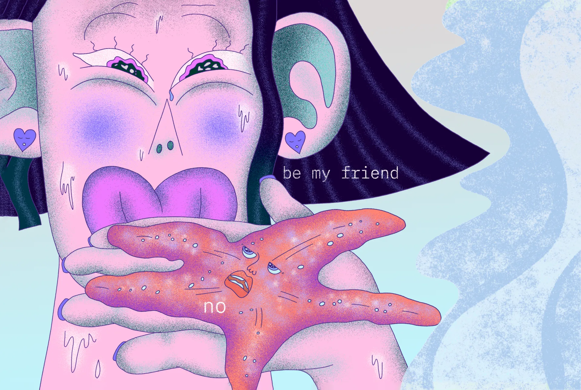 As a Digital Animator and Illustrator, she is inspired by the strange, surreal moments of everyday life, creating 2D animated films and installations. From an early age she was encouraged to ’embrace my inner queerness’, which Rosie thinks has become an apt manifesto for her creative practice. Rosie looks at the world with a childlike view, creativity and imagination, in an attempt to loosen boundaries, whether that be visually or structurally . As a creative, she tries to enter the weird and wonderful world perceived by children. By creating new, perplexing, humorous, exaggerated, and unconventional worlds, for a viewer’s childlike and adult subconscious alike to feast on.