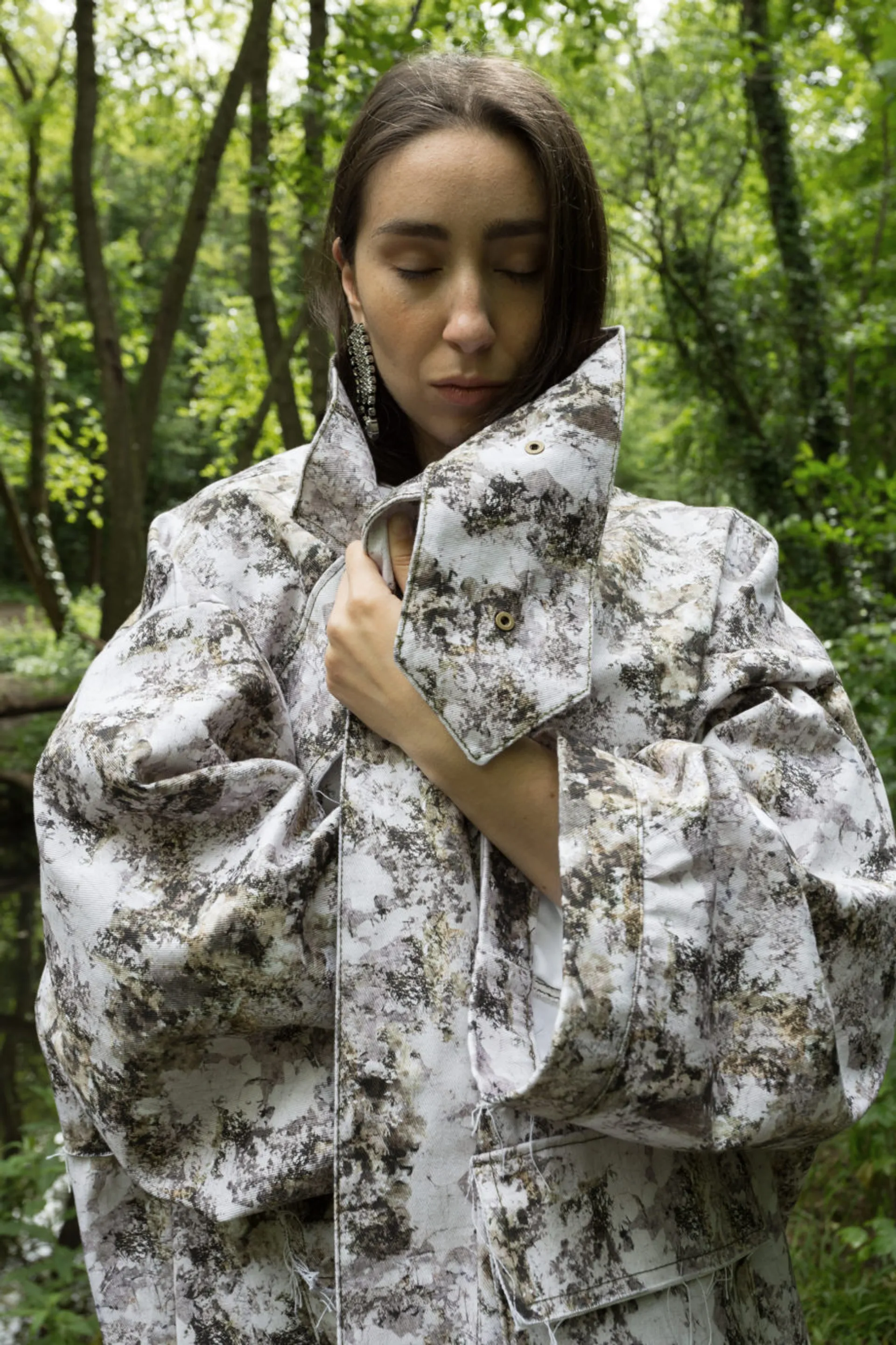 Initially inspired by my time spent on Noirmoutier, a French island. The islands landscape is made up of a pebble beach which has old derelict bunkers from the Second War. These became the starting point of the collection which focused on Western Wars of the 1900s. The womens role within society at this time was key and the elegant and iconic actress Marlene Dietrich became the contrasting muse. She experimented with gender and dressed as a man, whilst playing with femininity. Creating mystery and sex appeal, an air of detachment but always with confidence.
