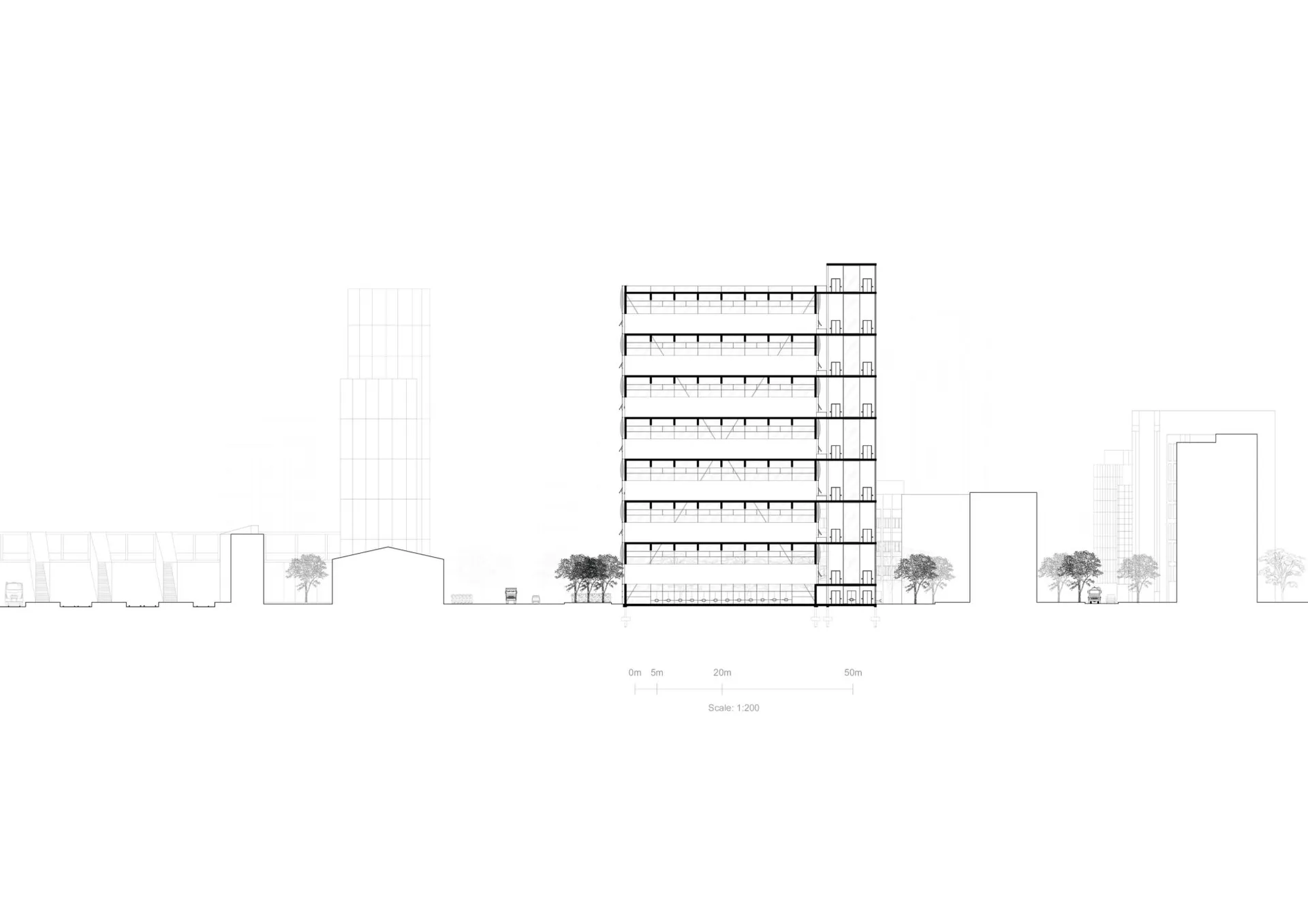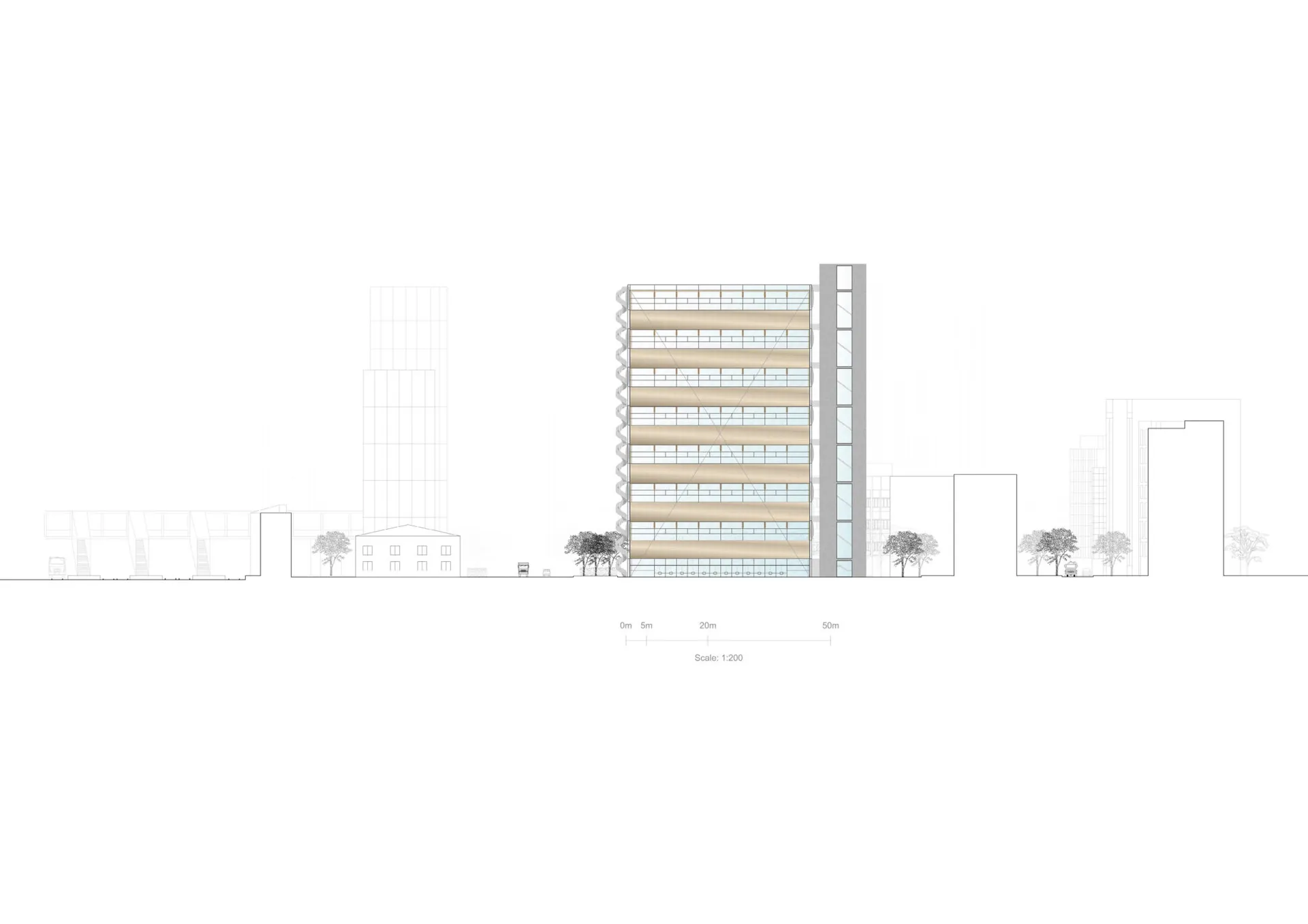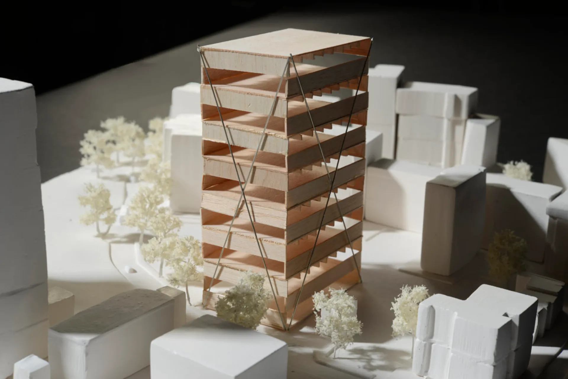 My proposal for the Palace for the People of Croydon is a contemporary community space with a generous, open plan form to accommodate various uses. It is a seven-floor building assembled by stacking very deep cross-laminated timber beams which span the entire length of the building from corner to corner. The stacked CLT system creates bold corners and gives the building a clear tectonic expression, a strong sense of rhythm and a sense of balance.