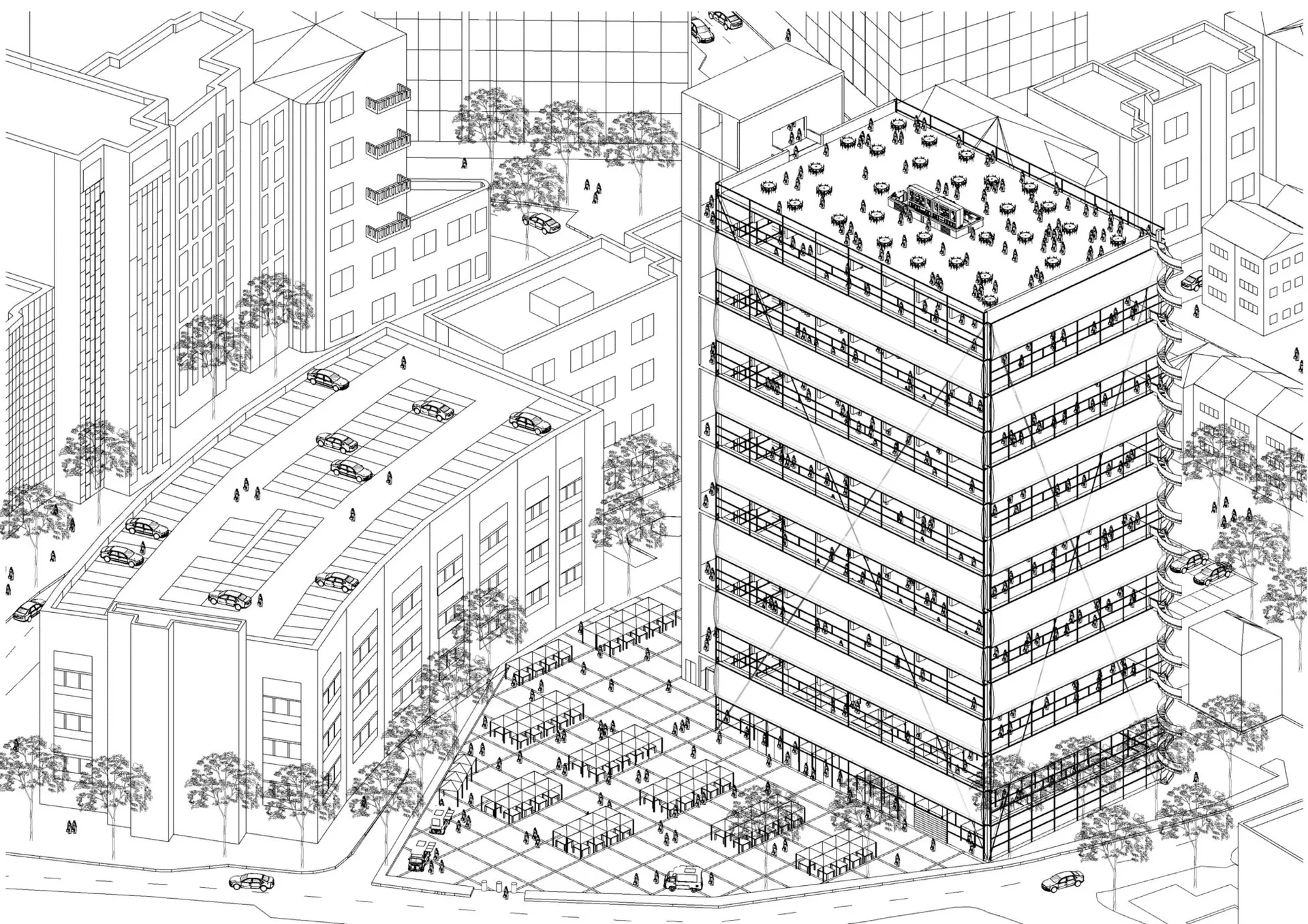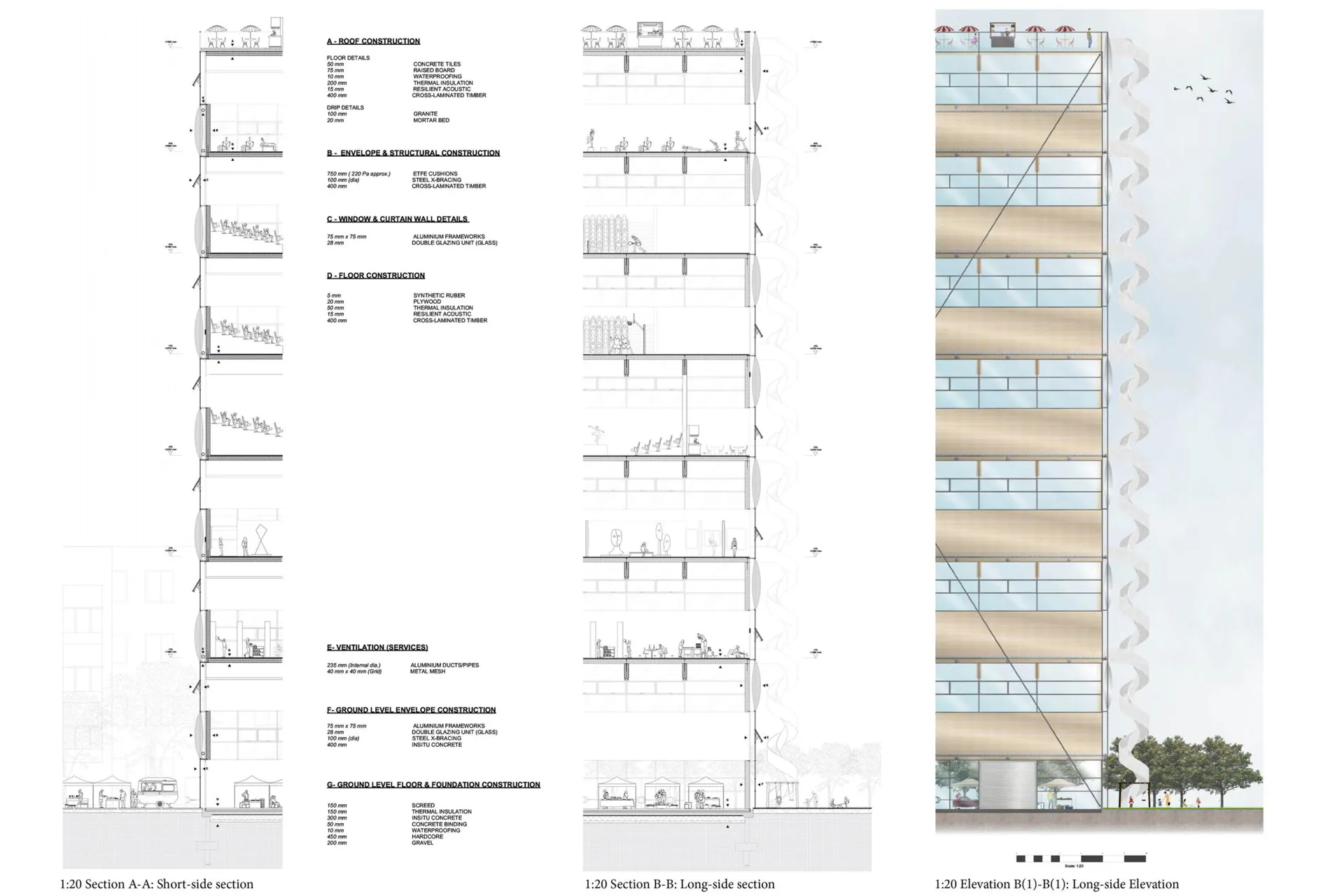 CLT sequesters carbon, reducing the overall carbon footprint of the building in stark contrast to the traditional concrete and steel buildings in Croydon. In addition, the building is future proof due to the flexibility of the floor plans. In designing my building, I have tried to bridge the gap present in the oxymoronic title “Palaces for the People” and make it a people’s place that is defined and controlled by them. I have kept people at the heart of the proposal, which aims to create a strong sense of belonging while being a site-specific design. I have tried to design a space that is socially inclusive, spatially diverse and visually attractive.