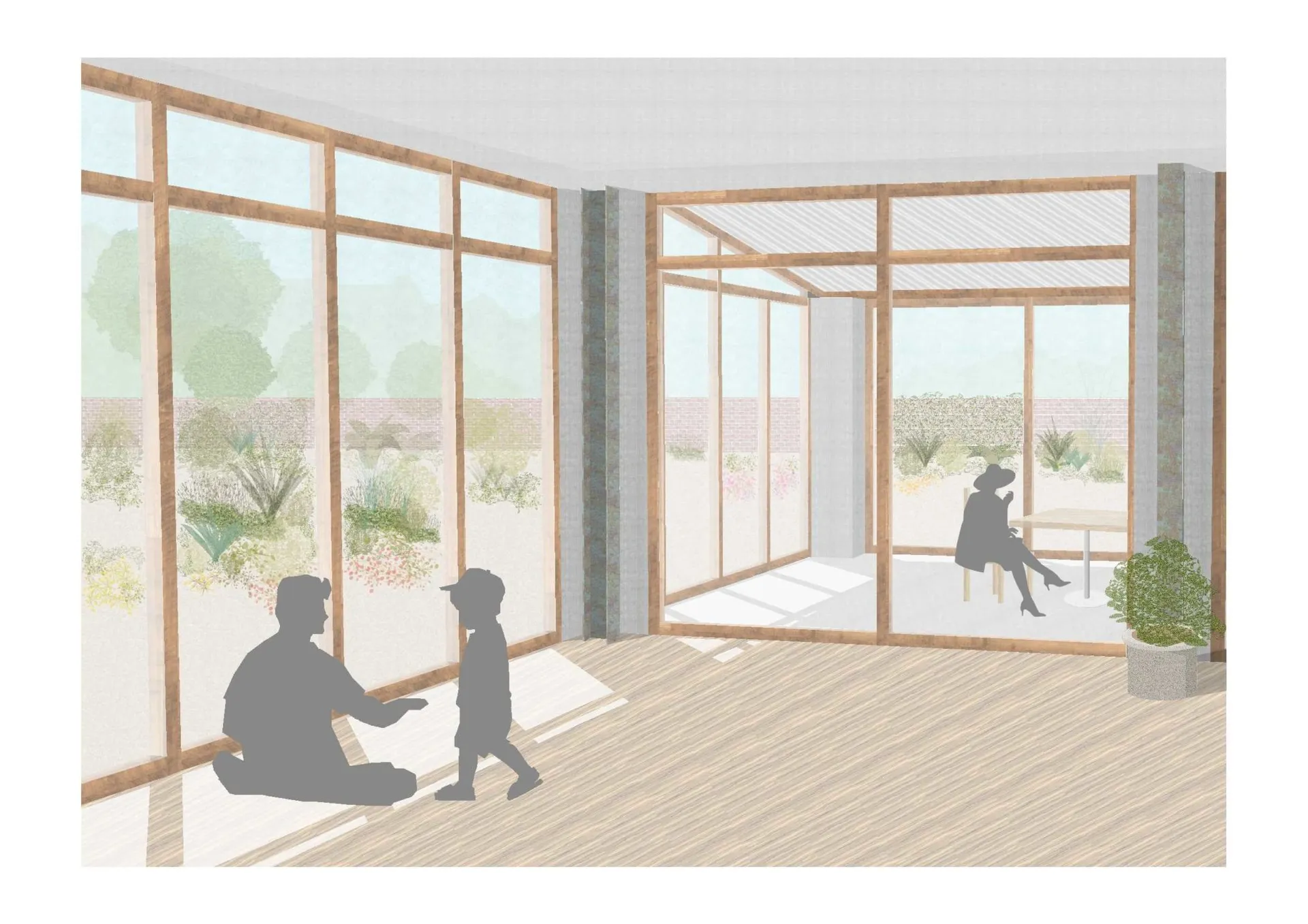 The typology developed for this program is to open the user to the outdoors in every meaning of the phrase. The design will host educational facilities, a flower-based garden centre, a drought-resistant garden, and allotment plots. When designing, the mission statements from Thameside Wildlife Trust were adopted and incorporated into design features like the addition of native species and drought-resistant healing plants. Limiting my impact to the surrounding landscape and habitats and design a scheme that could enrich the area with people and wildlife are core to the project.
