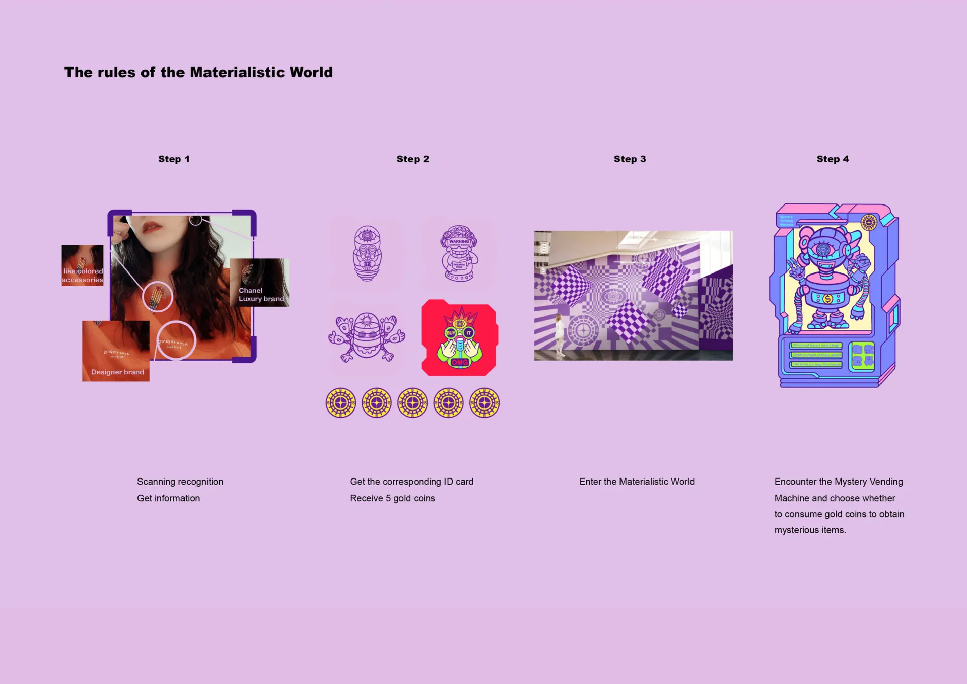 It is a fantastic materialistic world. There are mysterious vending machines hidden here. So please take your ID and initial gold coins to start your journey! The mystery vending machine automatically identifies the ID attribute and matches the corresponding speech art for different consumers. The only rule in the materialistic world is “you shop there for you are exquisite.” But if you leave the materialistic world, please pay off your debts. The project reflects how current consumerism creates and sells demand and lets consumers fall into capitalists’ carefully designed trap. It is hoped that through this project, participants can understand how to live in the real world outlined by consumerism.