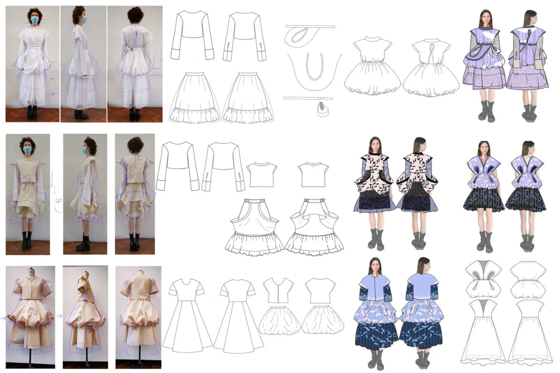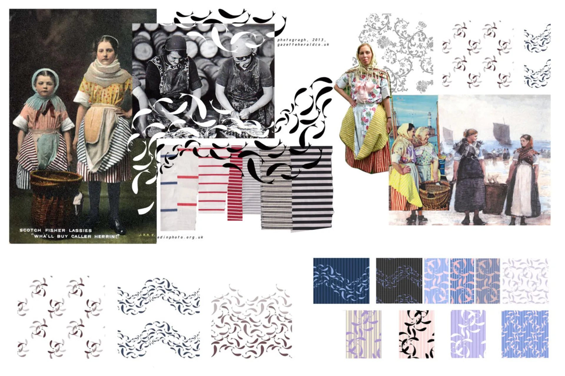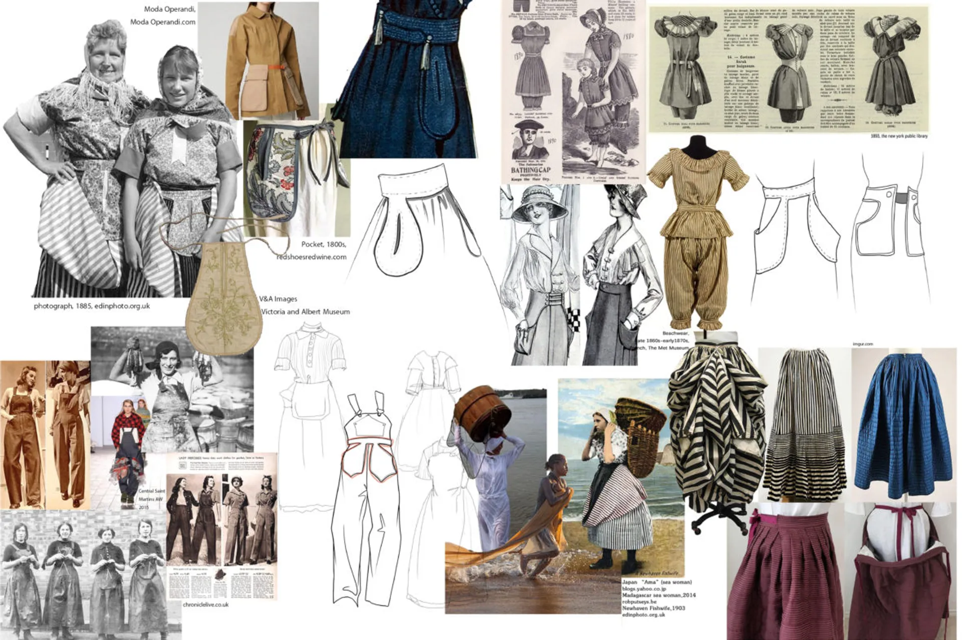 My project is based on researching the clothing of women working in the sea fishing industry in different countries in the early twentieth century, focusing on pocket construction and print design, and designing a range of feminist and romantic clothing for a more physically active woman. I wanted to convey that the feminist beauty of my brand was not just for beautiful, sexy women, but that the fat or muscular woman who works manually could still have beautiful clothes.