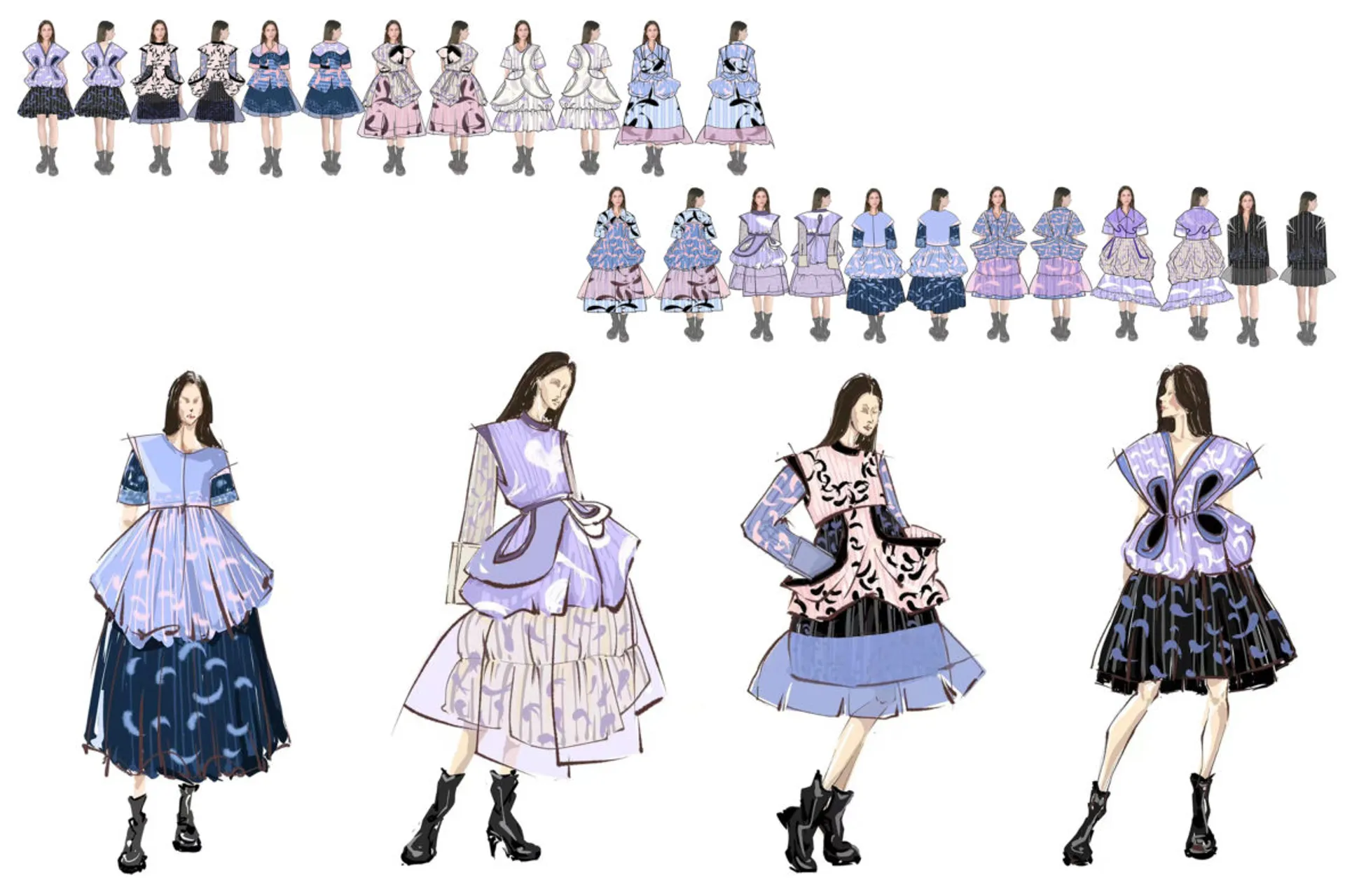 I wanted to give women the power of confidence and optimism in my designs, and my clothes can be combined in different ways, which I hope will convey the romantic feminine beauty that I seek to discover in the lives of these poor women who were struggling to make ends meet, to encourage contemporary women to dress with femininity, optimism and confidence. During my research, I found that these women who live by the sea, despite the challenges of poverty, work and tension, never lose their zest for life and their smiles, and work and decorate as many aspects of their lives as possible, using their own clothes. I set out to create clothes that were suitable for modern women, while leaving a romantic and feminine impression.