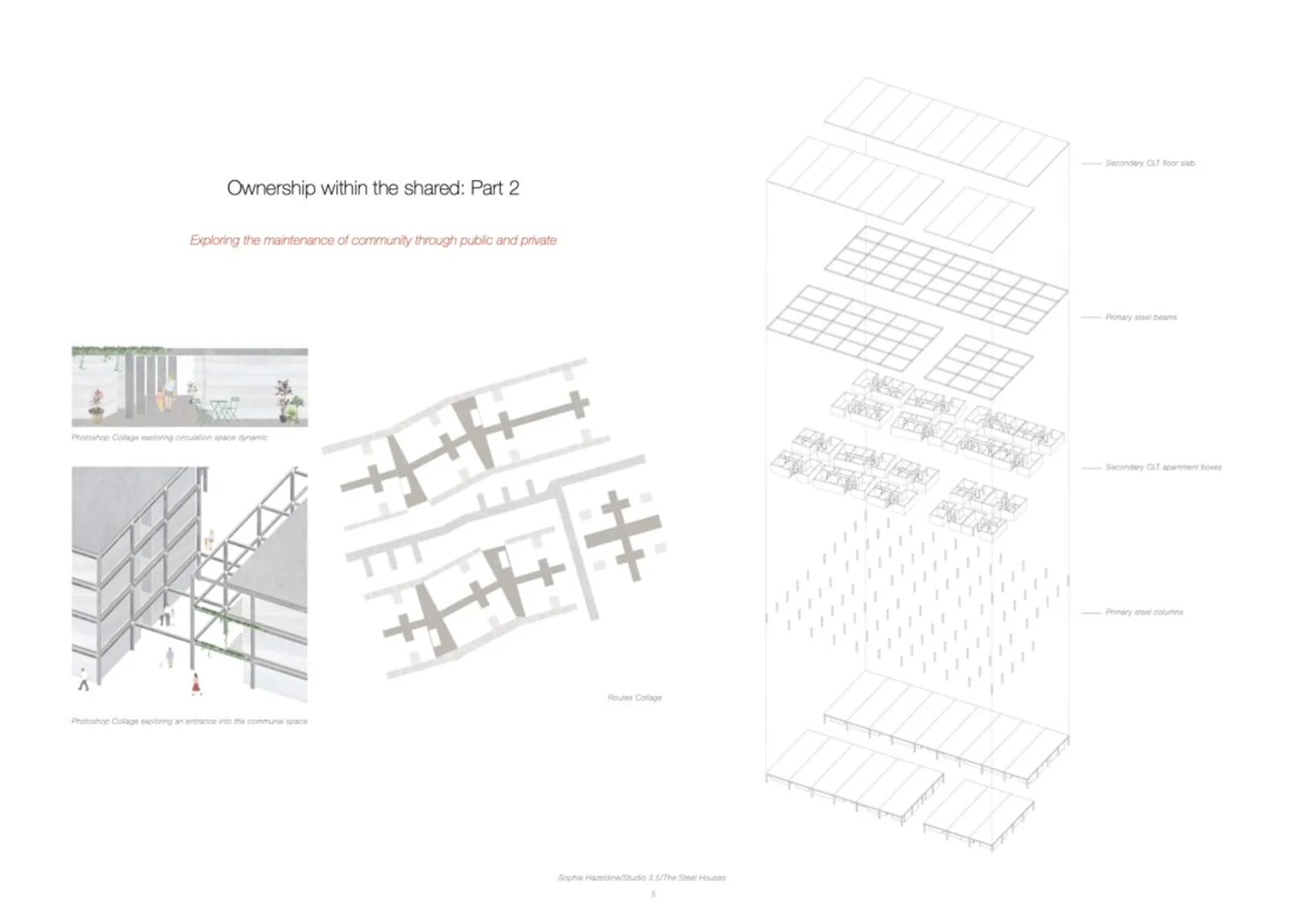 ‘Building with the intent of communal maintenance and adaptability furthers the longevity of a community beyond the daily social interactions. Both historically and currently, funding for maintenance repairs for socially rented housing is minimal. Not only this, but both historically and currently funding for even building housing that the majority is socially rented is also minimal. These two factors combined have caused communities to dissipate, this being done through major repairs, rebuilding and rehousing. The needs of a community change over time but if there was a thoroughly designed building that has a material palette that is easily adaptable and ethos of communal maintenance, new and existing communities could last much longer than they have in the past.’