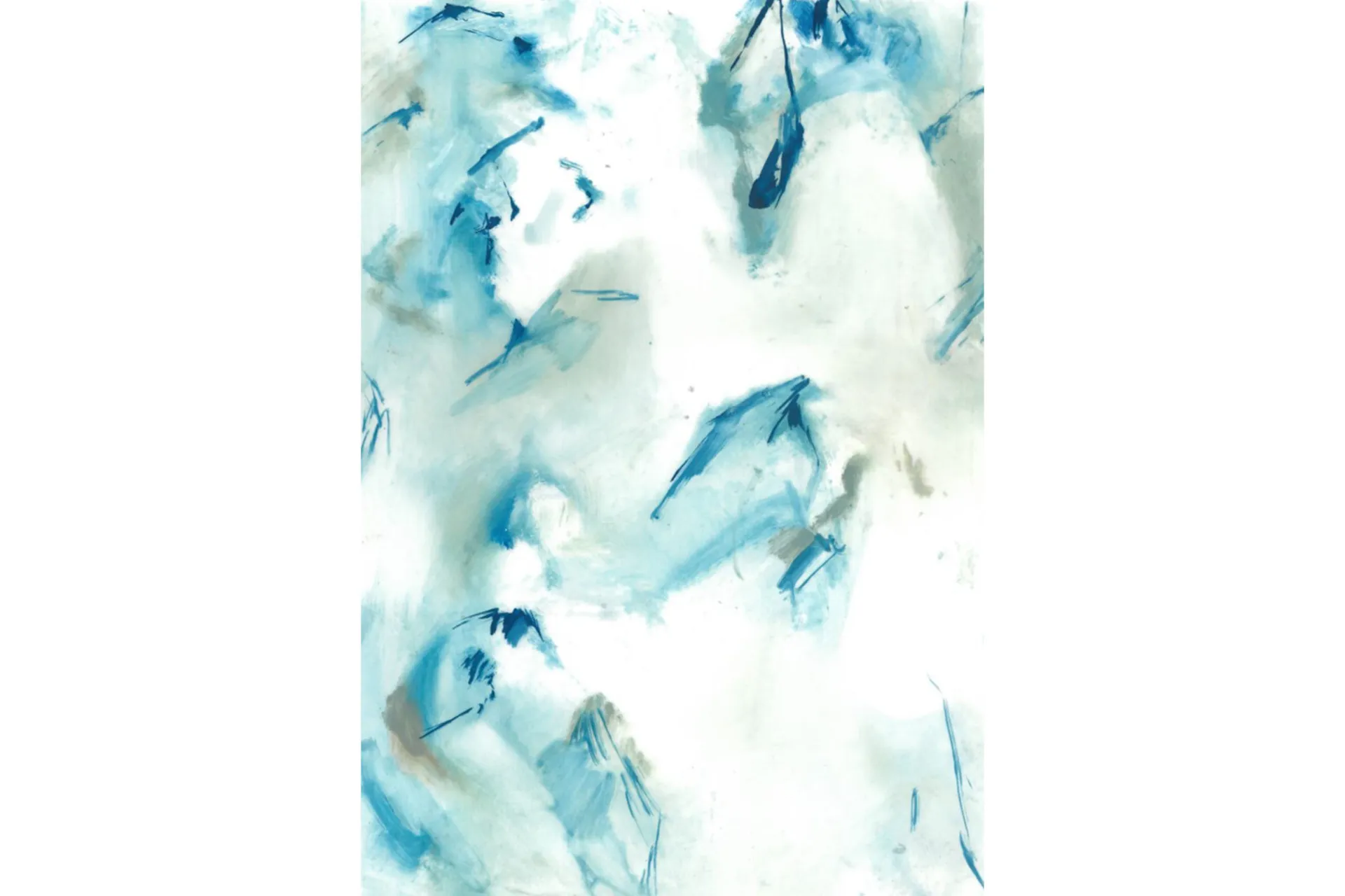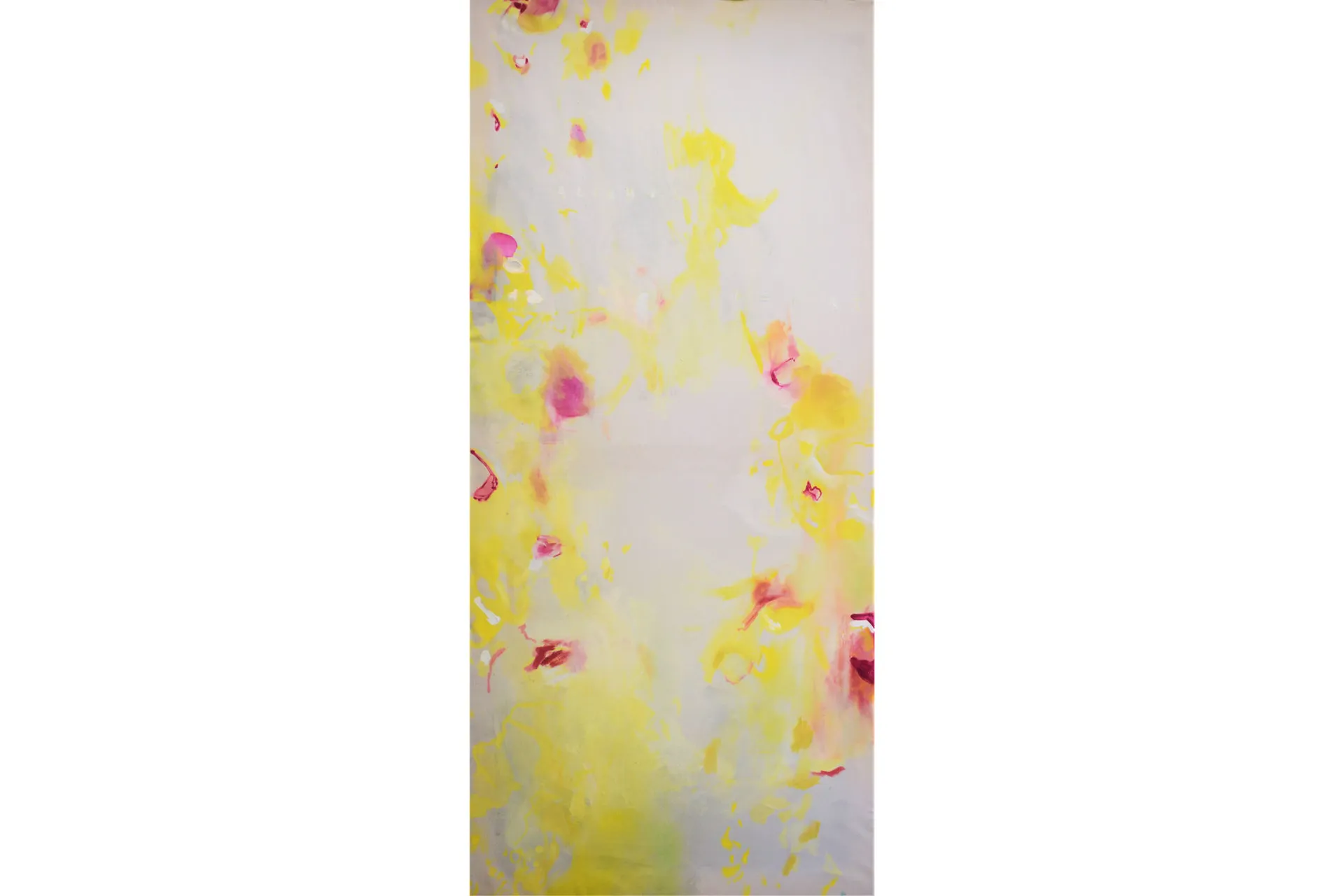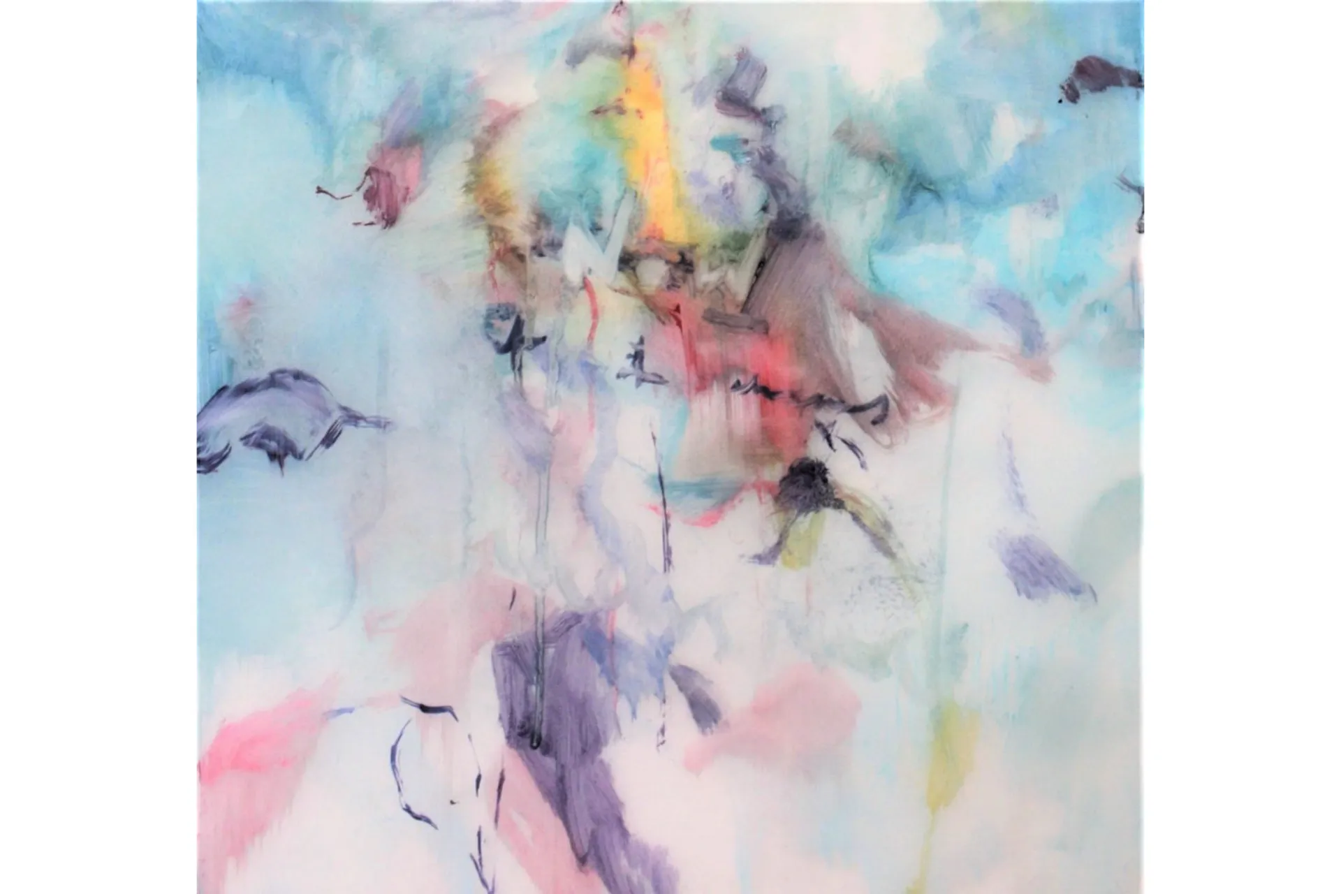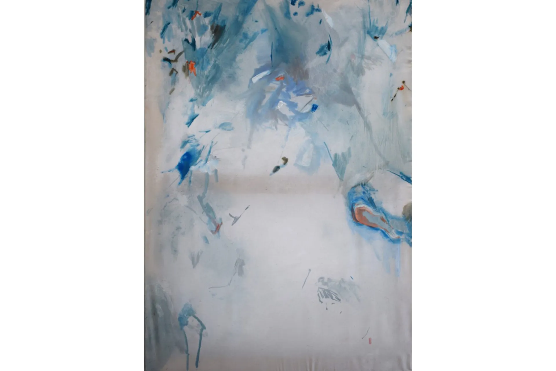 This selection of work is created using oil paint upon unorthodox materials, including tracing paper and translucent chiffon fabric. The delicate, see-through nature of these substrates is reflective of the transient and the transcendental; descriptors which reflect my experience of life itself. The juxtaposition between the fragility of the translucent chiffon fabric seen in the cold breeze of the evening, and the acidity of my tears these days, against the concrete stability of the frames, queries the idea of the ‘art object’. With frames conventionally being utilised to stretch opaque canvas to conceal the material qualities of the restraints, exposing the constraints as a visual component enables exploration into phenomenological concerns of the frame. The gestural mark making, alongside the at times illegibly scrawled text, all relate back to the artists hand. Painting is viewed as drawing in this sense; the process involves a searching for and carving out of the image, through swathes of paint which act as mist. These ‘searching marks’ are evidence of attempts at capturing a suggestion of something, rather than settling on a ‘completed image’, and work is ceased at a purposefully ‘unfinished’ moment, distilling this process in its working stages. Within the realm of the abstract, with each new painting undertaken, there is an attempt to add less, to push how little can still be read as an image. Poetry plays an integral role in my practice, blurring the boundaries between these disciplines directly, phenomenologically and in painterly terms. I posit importance onto written text as being not only an image making tool within its storytelling abilities, but also physically, being a visual entity in and of itself. This intentional confuddling is furthered in the use of written word, at once adding meaning through words here and there that stand out, providing clues but leaving the true meaning ever elusive.