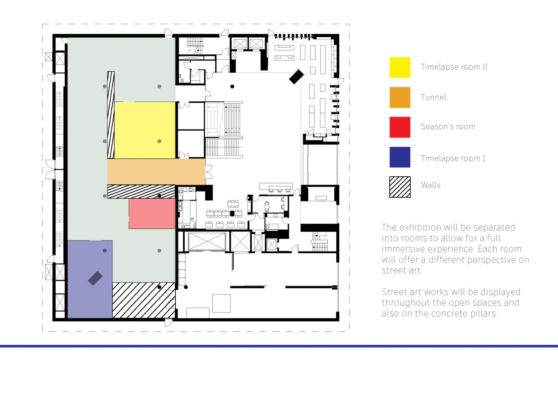 Street art is something that is found outside in the public sphere. How can we bring this art inside the museum walls? “Curating Vandalism” looks into street art as an art form and into curating an exhibition for The Design Museum. Research delves deeper into the questions, why isn’t street art found in museums and do street artists want to be included in art institutions? Using these questions as the base, this exhibition was curated with the intent to preserve the original meaning of the art by recreating the outside world. The exhibition aims to help people understand street art and its ephemeral nature. It is not a means to preserve the physical art but is a way to document the art of the current times without trying to conform it to the institution’s standards.