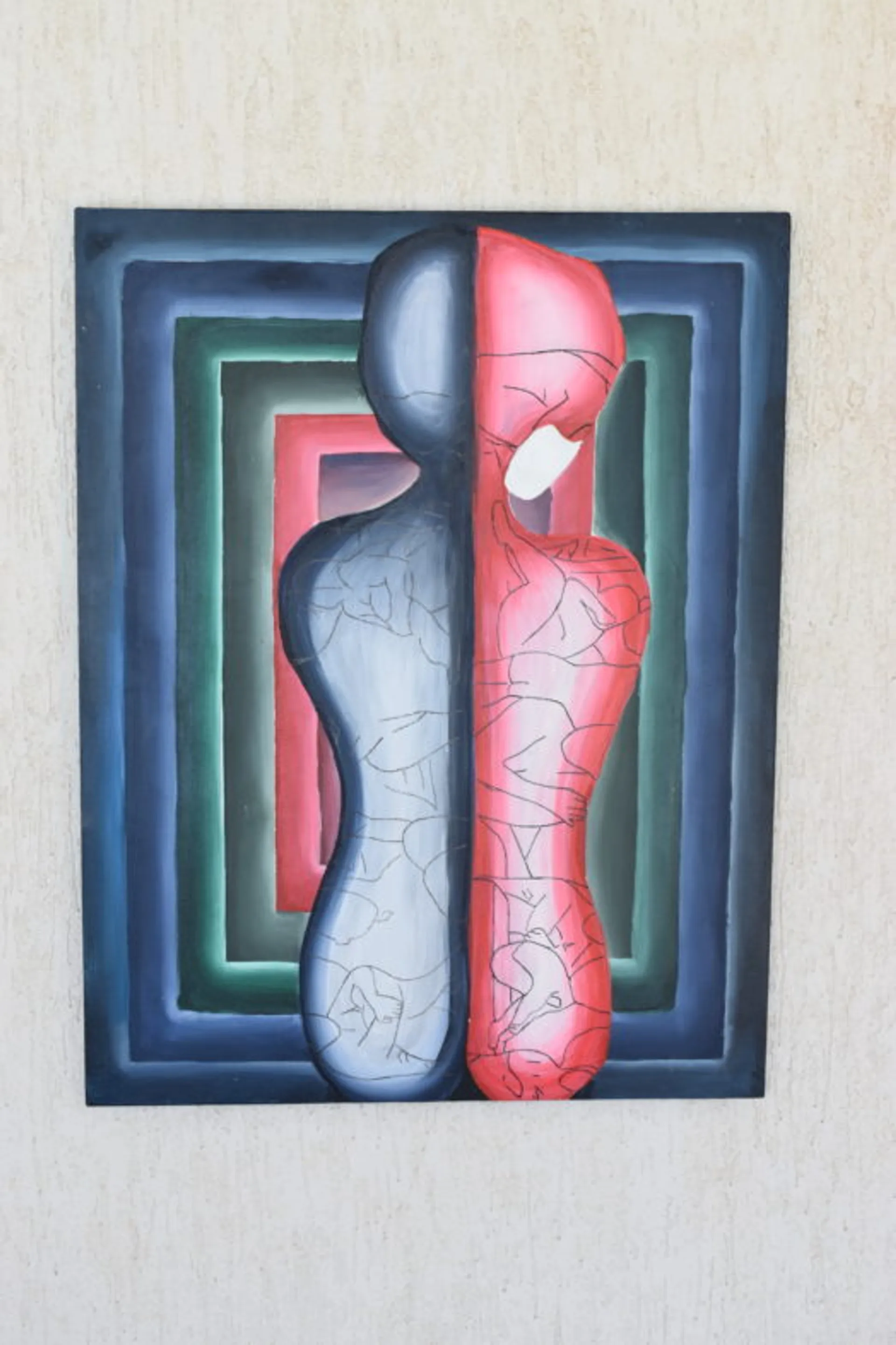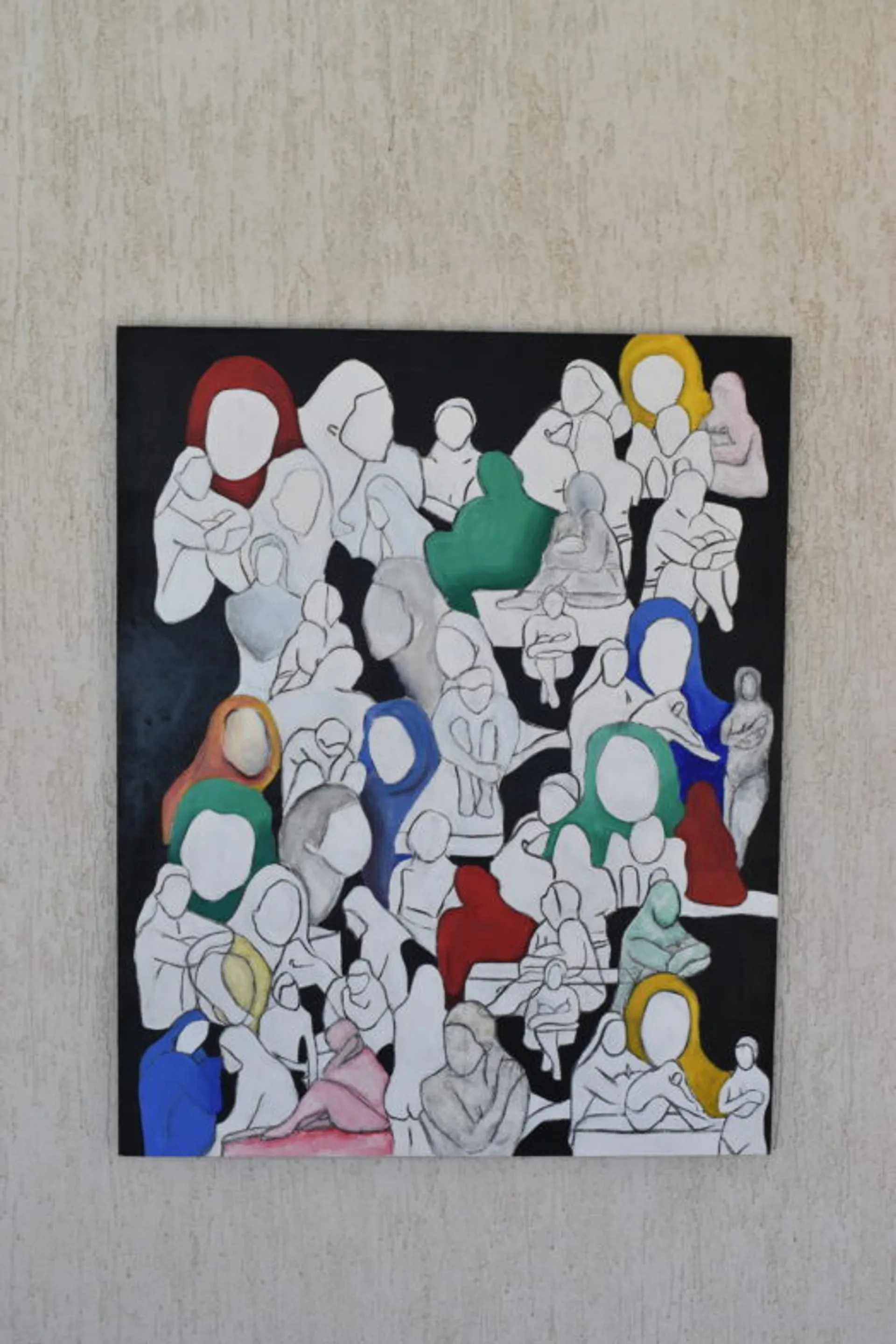 The work of Cypriot artist Stylianos Maratheftis is on a specific conflict of the 21st century, the issues of immigration and refugee crisis. He comes from a country that was divided by two in 1974 and a lot of people had to leave their houses to save their lives. From a young age he was listening to stories from his grandparents and father about their experiences through that time. Since then, the artist focused his practice on the refugee crisis. Through his art he was to bring awareness and sensitize people about what is going around the world and on his own way to tell different stories from refugees. In his paintings, he is using more outlined figures and plays with the colour meaning. He is using the colours to bring in the emotion to his painting but also his personal experiences from his family by using in some of his artworks their belongings.