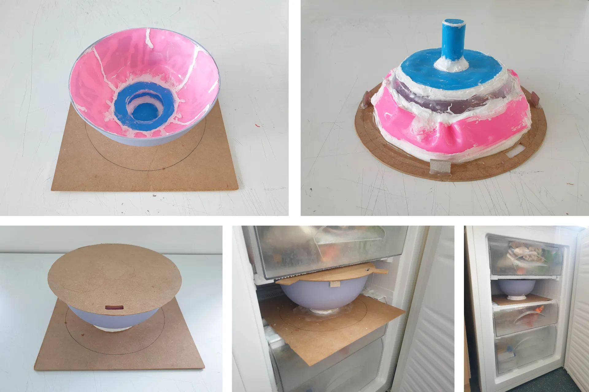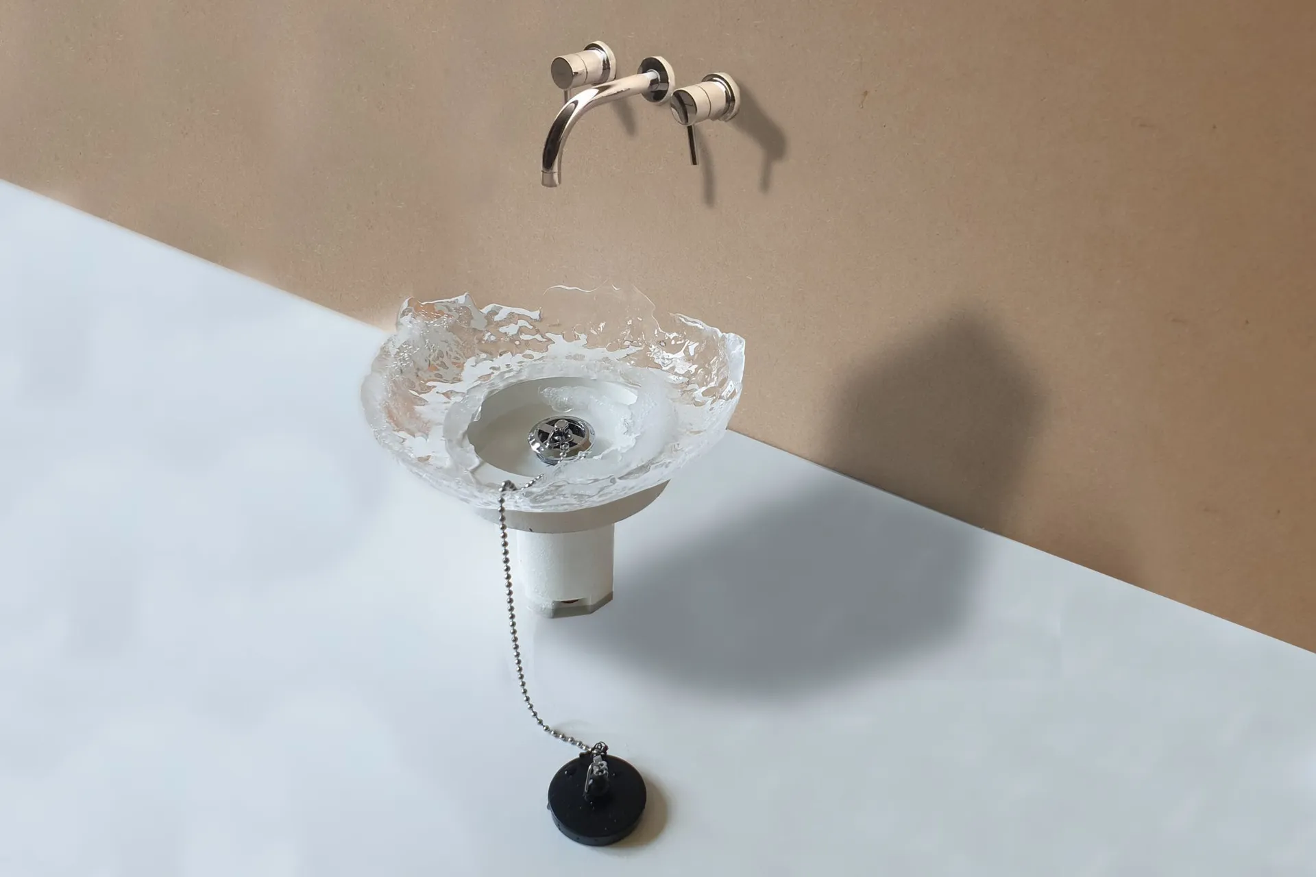 I separated a sink into two parts. On the top, I created an ice sink using a mould. When people use the water, the ice sink gets smaller as it melts and the use of hot water accelerates the speed of melting. On the bottom, I made a very limited sink. When the ice sink disappears and melts there is only limited area left which this makes water splash. I made people save water.