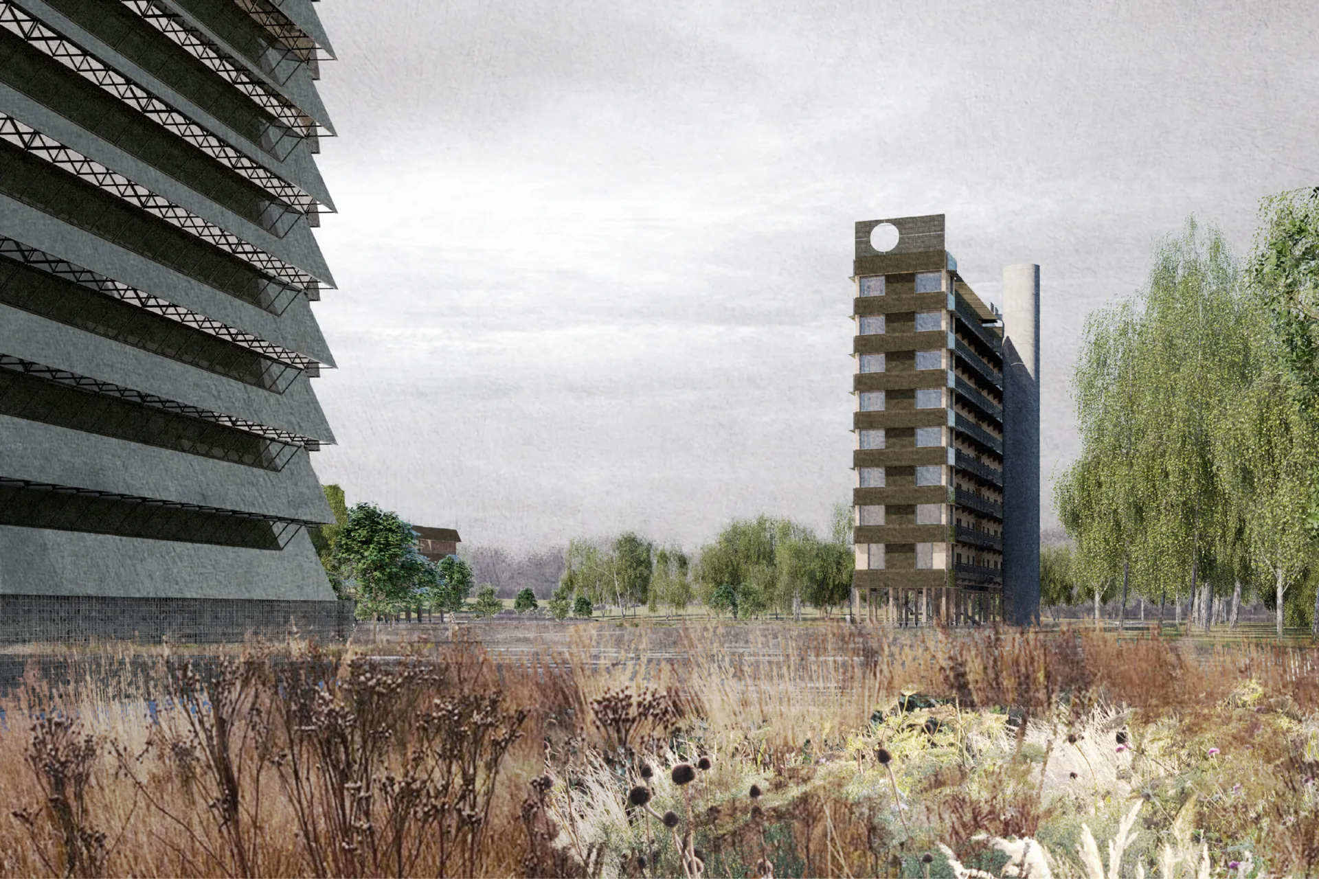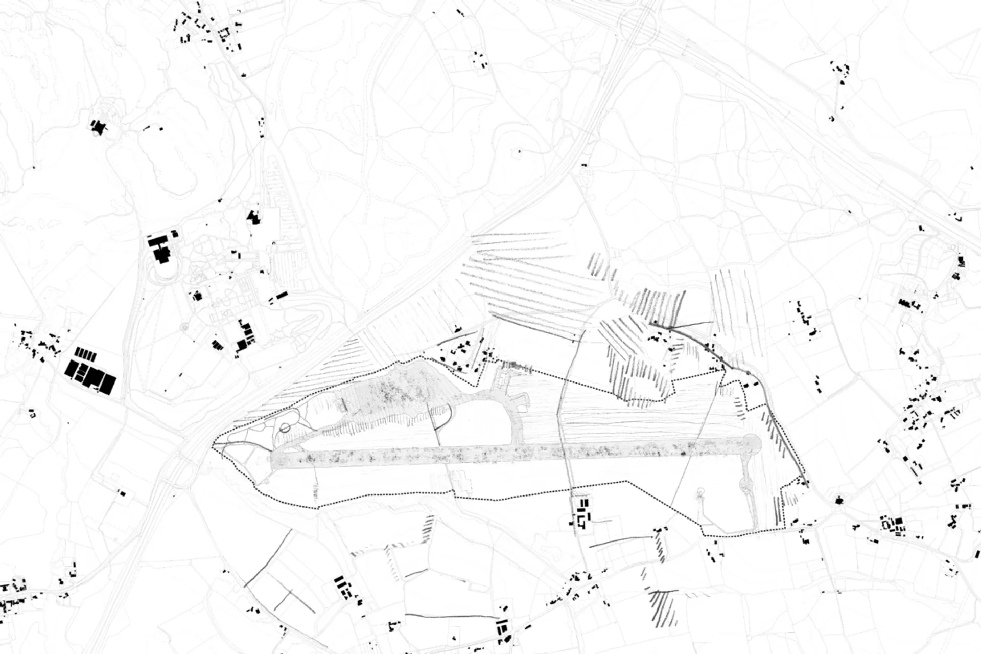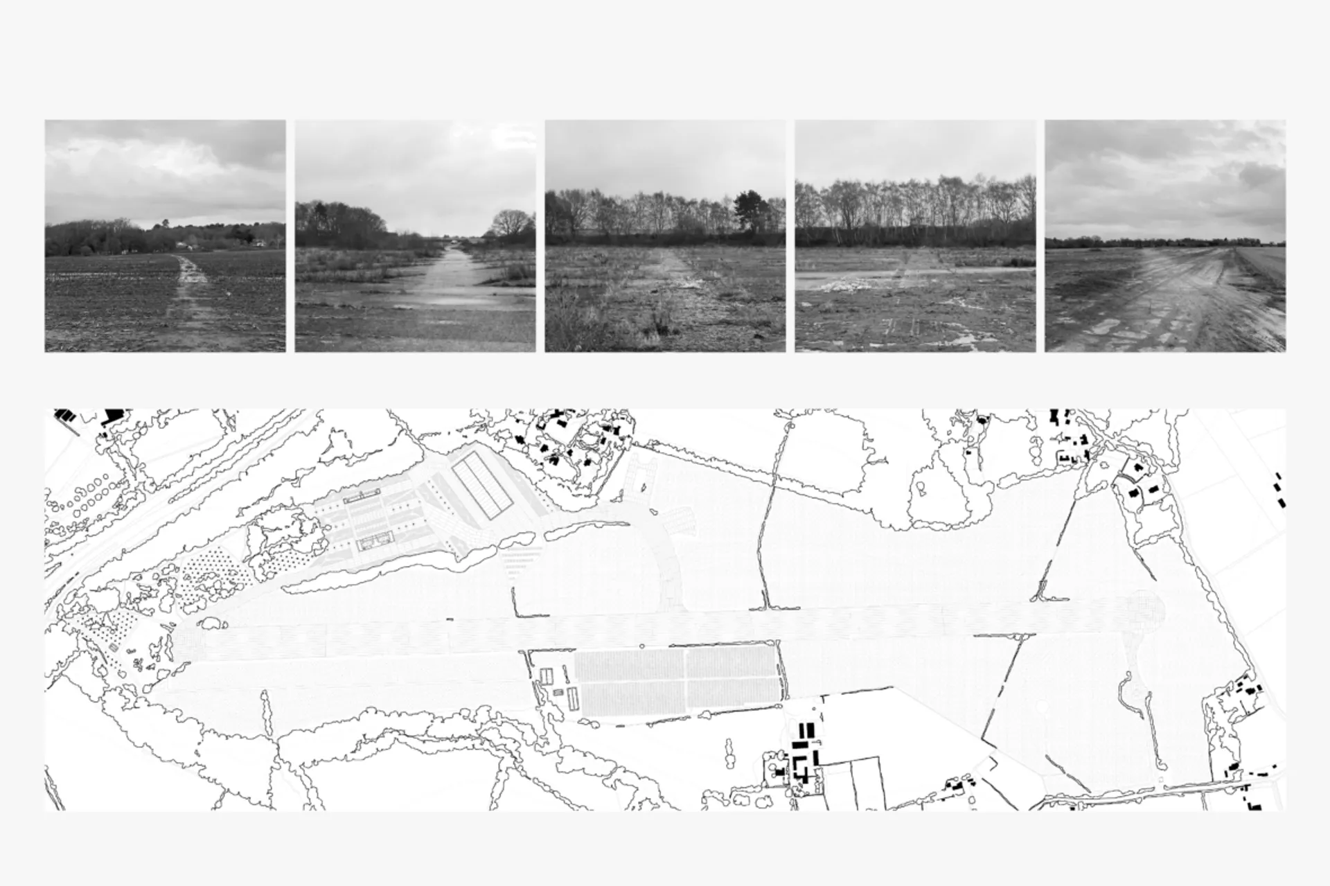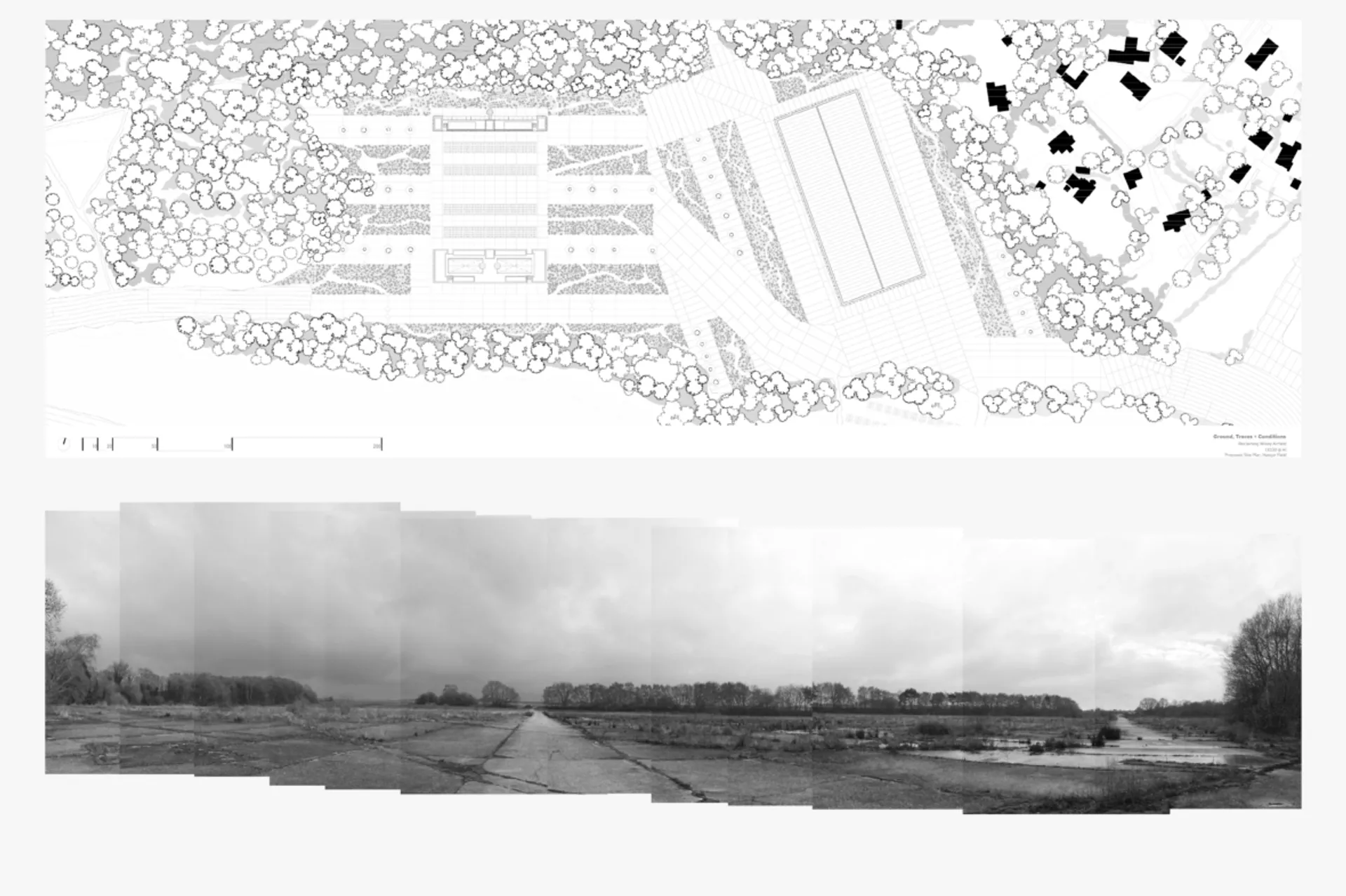 Wisley Former Airfield has laid dormant for the last 50 years, subject to abandonment and disuse. It sits amongst the Surrey Hills, providing a clear definition on the ground of the sites former use. This project aims to repurpose this land, and in essence reclaim it. The project itself looks to introduce a new campus, one which sustains itself through the land upon which it is situated. The campus will be a built example of methods through which to produce a building in way which utilises both reuse of the existing ground condition and surrounding site, and one which utilises innovative construction methods. A core intention being that via a simplified and efficient design there would be no superfluous use of material, creating no excess – demonstrating only utility, minimising impact upon the existing site.