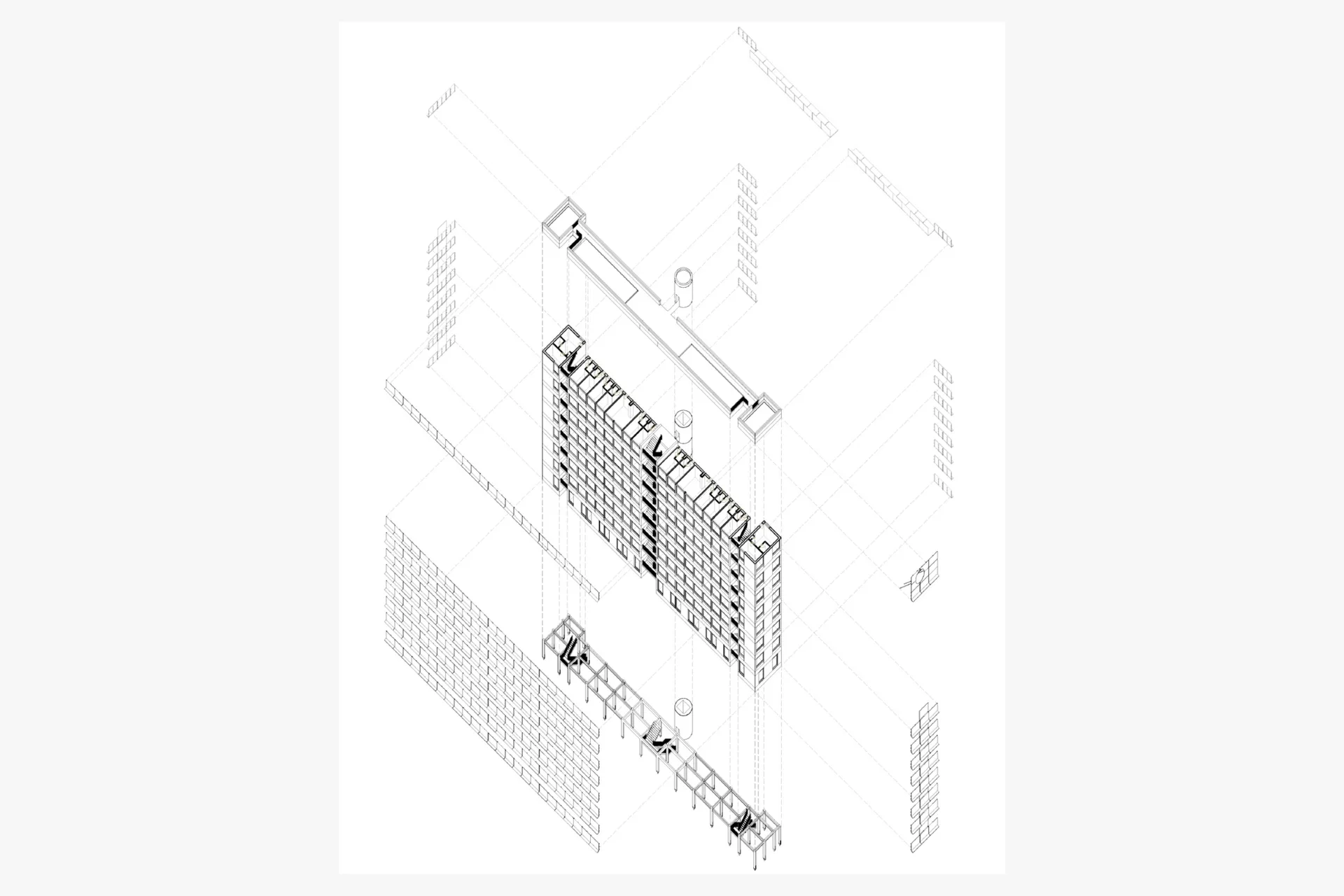 “The buildings harness a functional, un-pragmatic approach in terms of design + materiality. Material is used for the sake of material; its job being to act as surface or structure + not as an assemblage of decorative pieces. This allows parts to be renewed, via of repair or replacement throughout its future lifespan.”