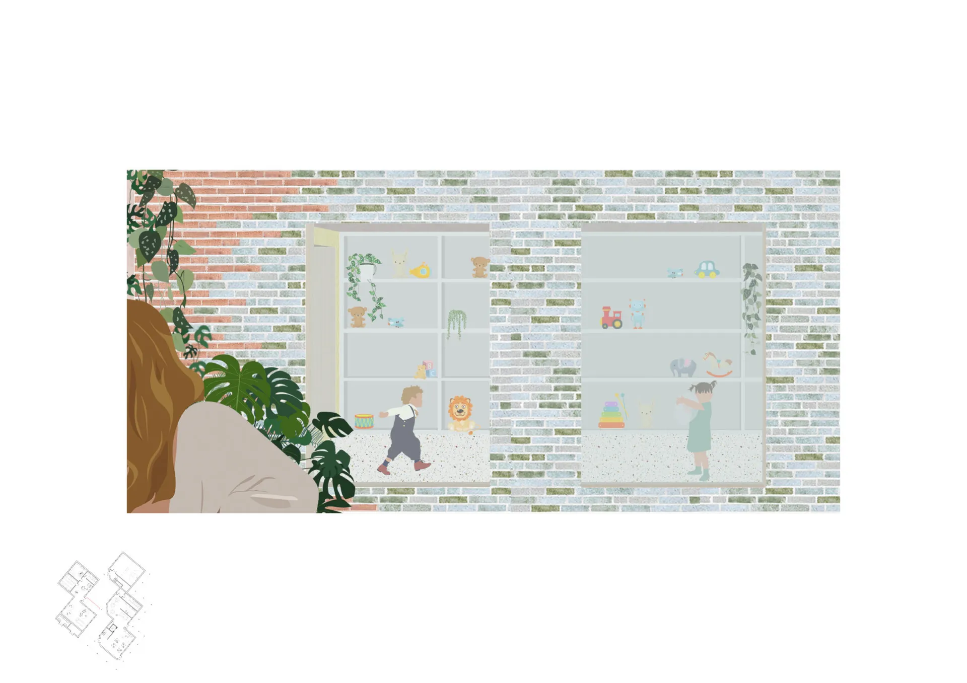The site is located in Woolwich, South-East London. Woolwich’s lack of public outdoor spaces is a concern as this affects not only the adults but also children, as it is crucial for them to be active from a young age. To be outside in fresh air, exercising all their body parts, to socialize and to learn from each other. My design thesis provides an alternative solution to the lack of spaces for children in Woolwich. The city can be a safer and more fun space to live and grow up in for kids. The proposal is putting the children at the centre of urban and architectural design. The project is a model for a better day care system with equal parental responsibilities, spaces for older children and youths as well as highlighting potential urban sites for new public playgrounds for a more children friendly city.