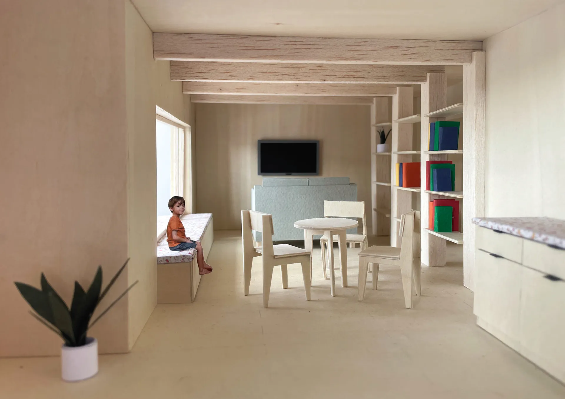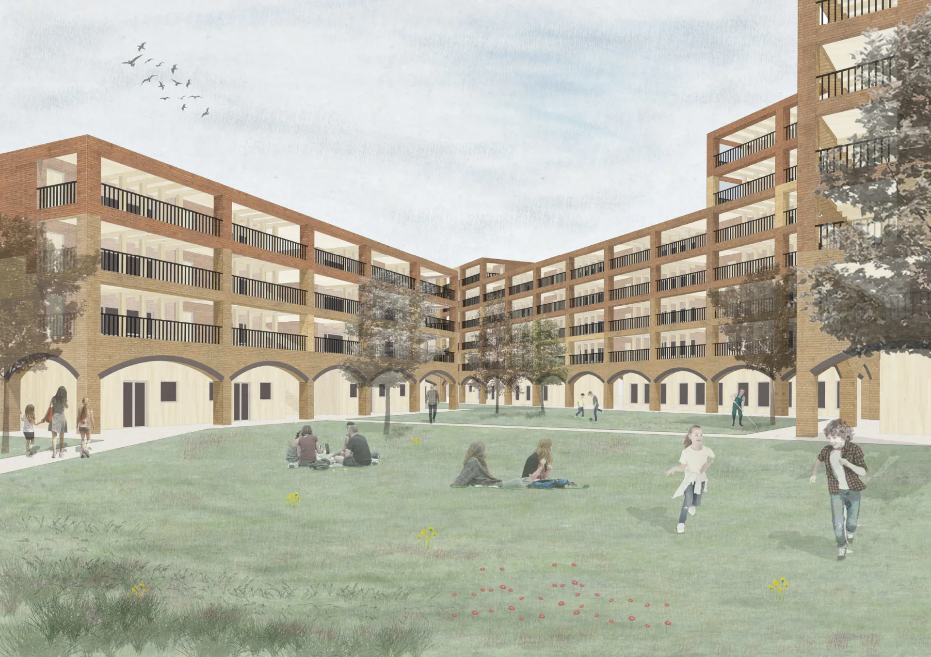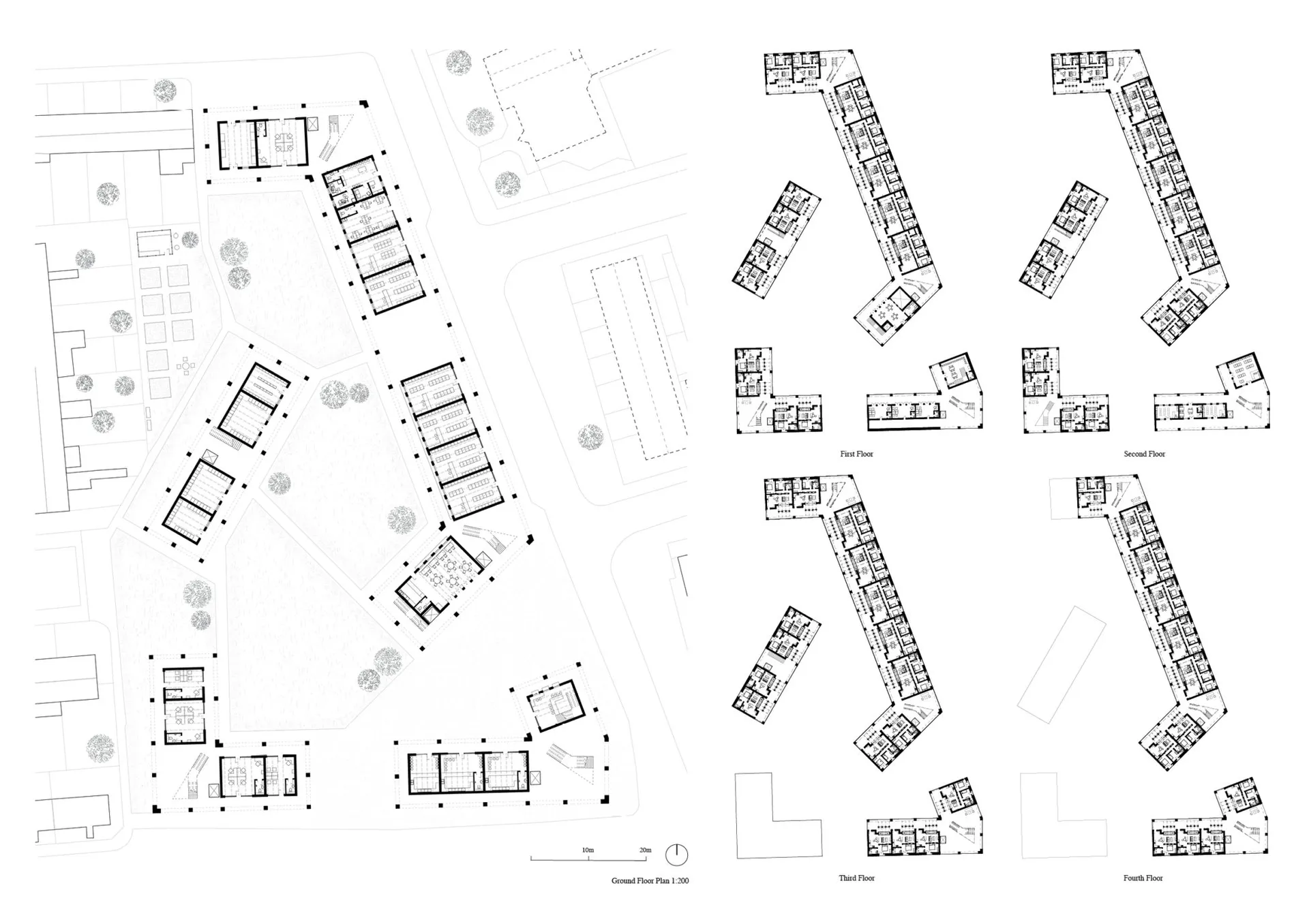 This housing proposal includes apartments ranging from one to three bed homes. The scheme also combines services in response to researching ‘PEACH’, People’s Empowerment Alliance for Custom House, a charity based in the location of the project, Custom House in Newham, East London. Since its creation in 2013, the charity has been working with the local community to create positive change regarding housing and the local economy. The proposed site has an existing building on it with services on the ground floor. Part of PEACH’s ambition is for the existing stores to maintain support as well as invite new services to create more employment opportunities. With that in mind, all the existing businesses as well as new services are included in the design.