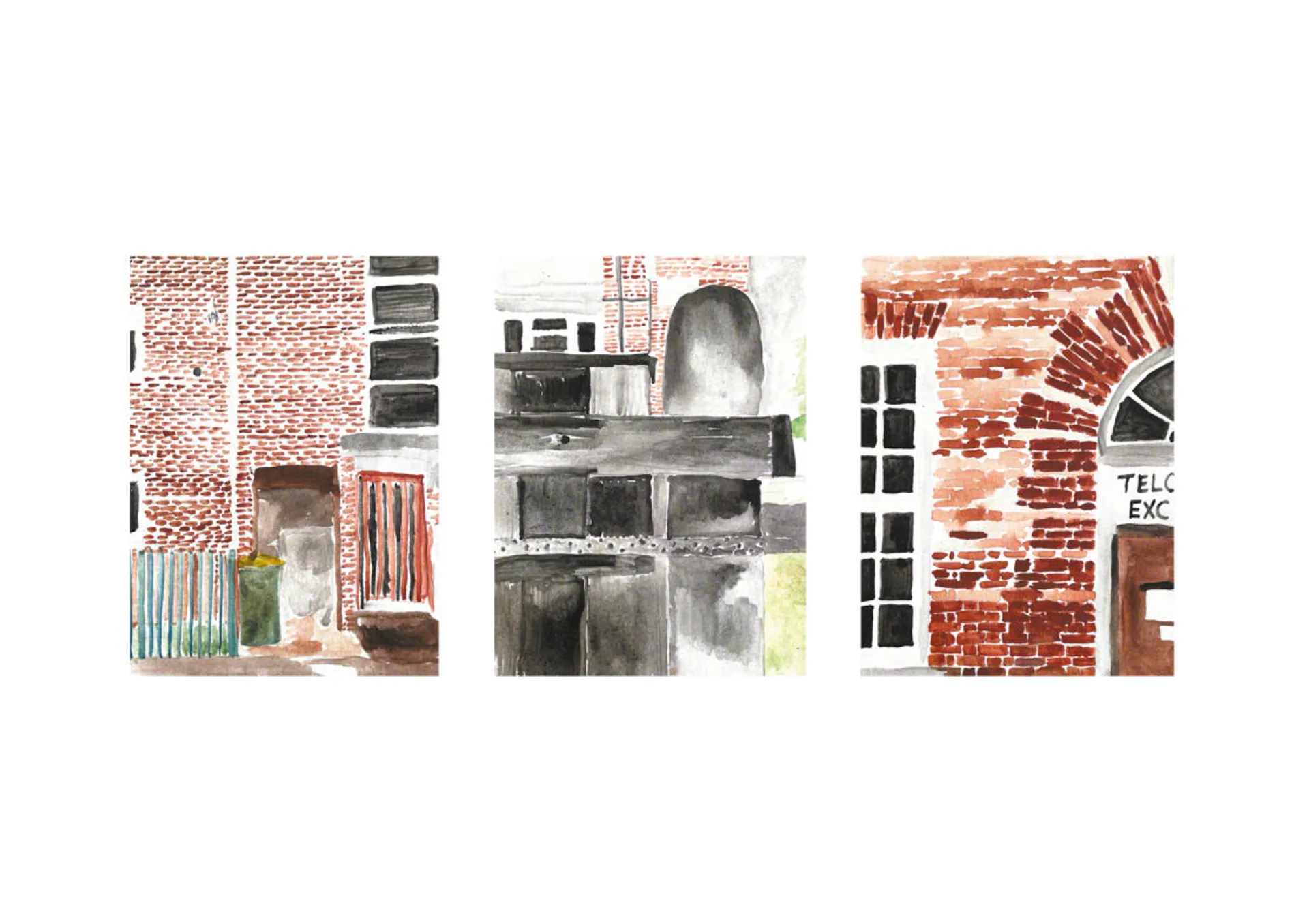 Through different mediums, I explored the materials, textures and character of the area. The elevational studies helped me understand the push and pulls that form various facade’s composition and how brick can be manipulated around edges and openings.