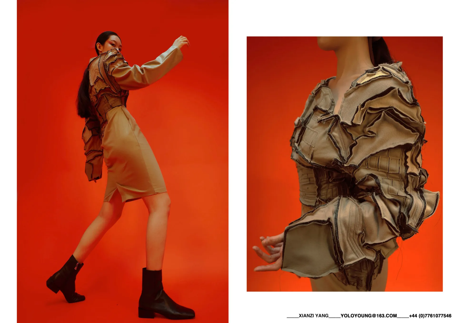 The project won a satisfactory outcome. The main reason is that the fabric design does not only blend my own characteristics, but also the innovative environmental protection concept. My collection is for the young audiences who are eager to take part in sustainable fashion. The age group should be the 20s and 30s with strong interesting of traditional Chinese Culture. I want to remind young designers through this project to pond over about recycling when producing their own collections. If people can value and use what they have, the neglected things may realize a value beyond themselves.