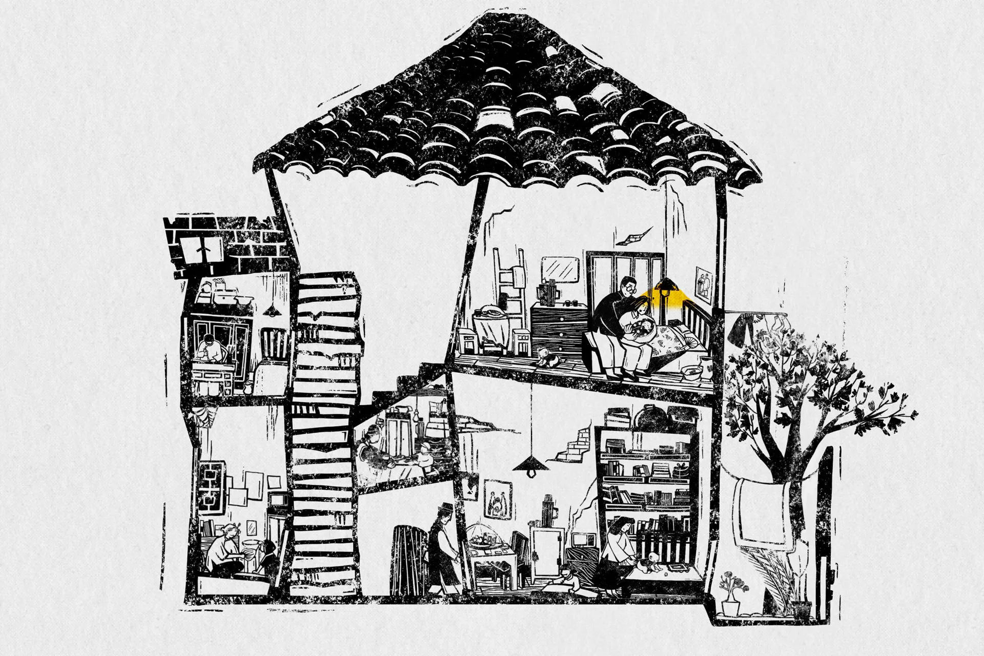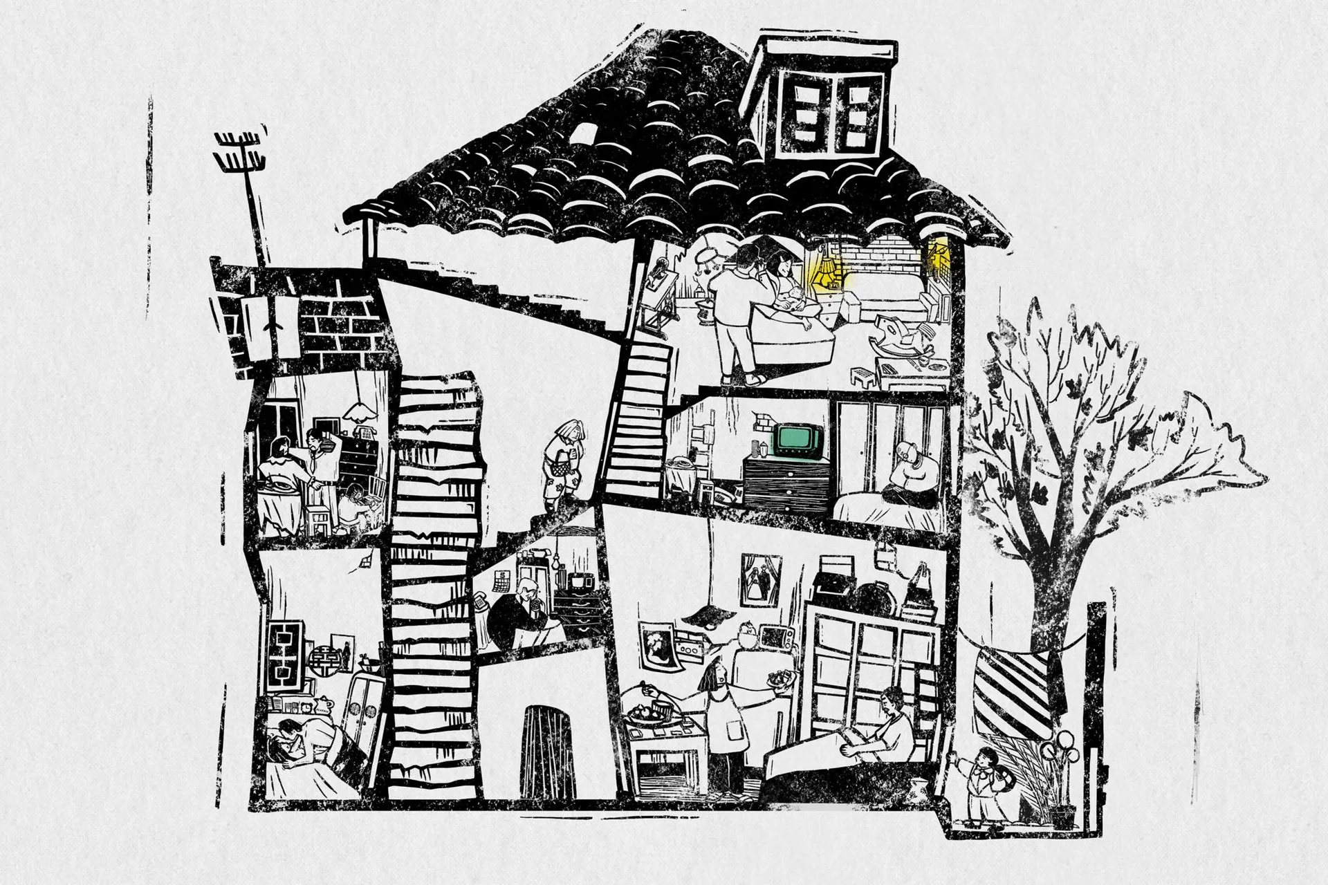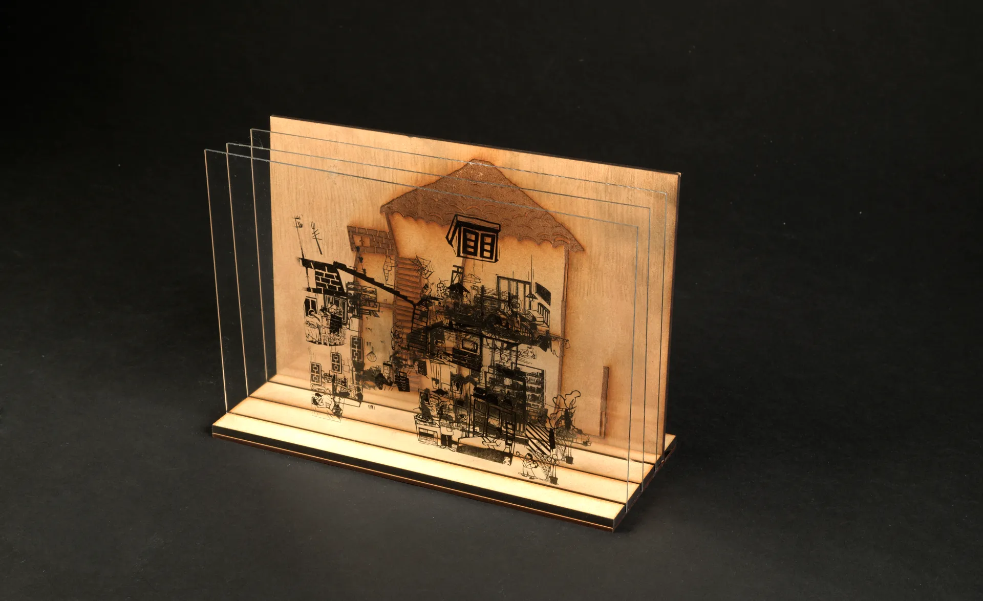 This project focuses on our relationship with the places that we inhabit. It explores the traces that we leave behind us and the traces that are left behind on us. The animation with accompanying installation uses visual, acoustic, and three-dimensional language to bring a now-demolished Shikumen house (a traditional dwelling in Shanghai) back to life. Through the illustration, the audience can see the living traces that previous residents and generations left on the architecture, and they are encouraged to reflect on what might have been lost as a result of the large-scale regeneration and refurbishment of cities, especially for those who were witnesses of the torrent of changing times.