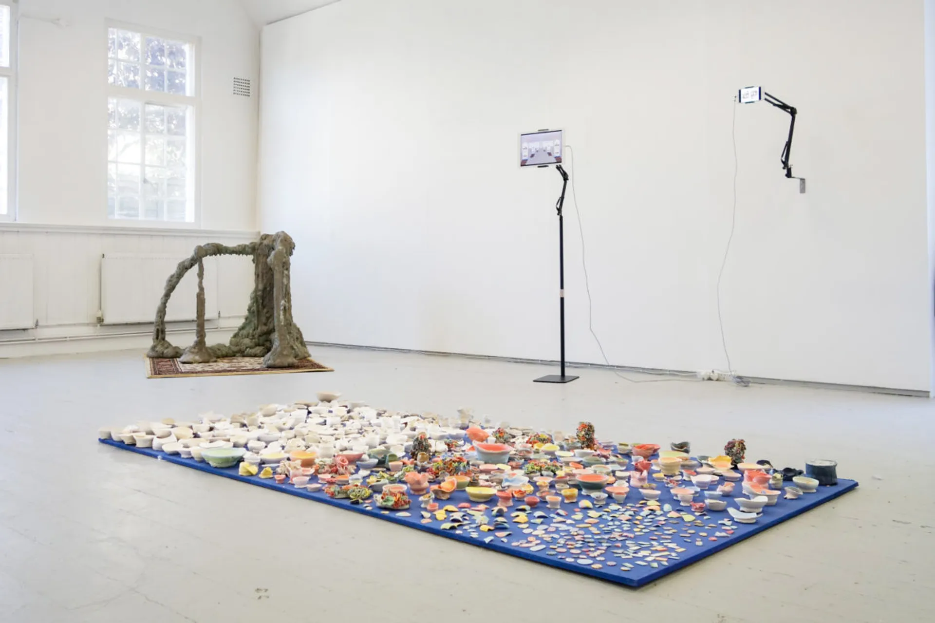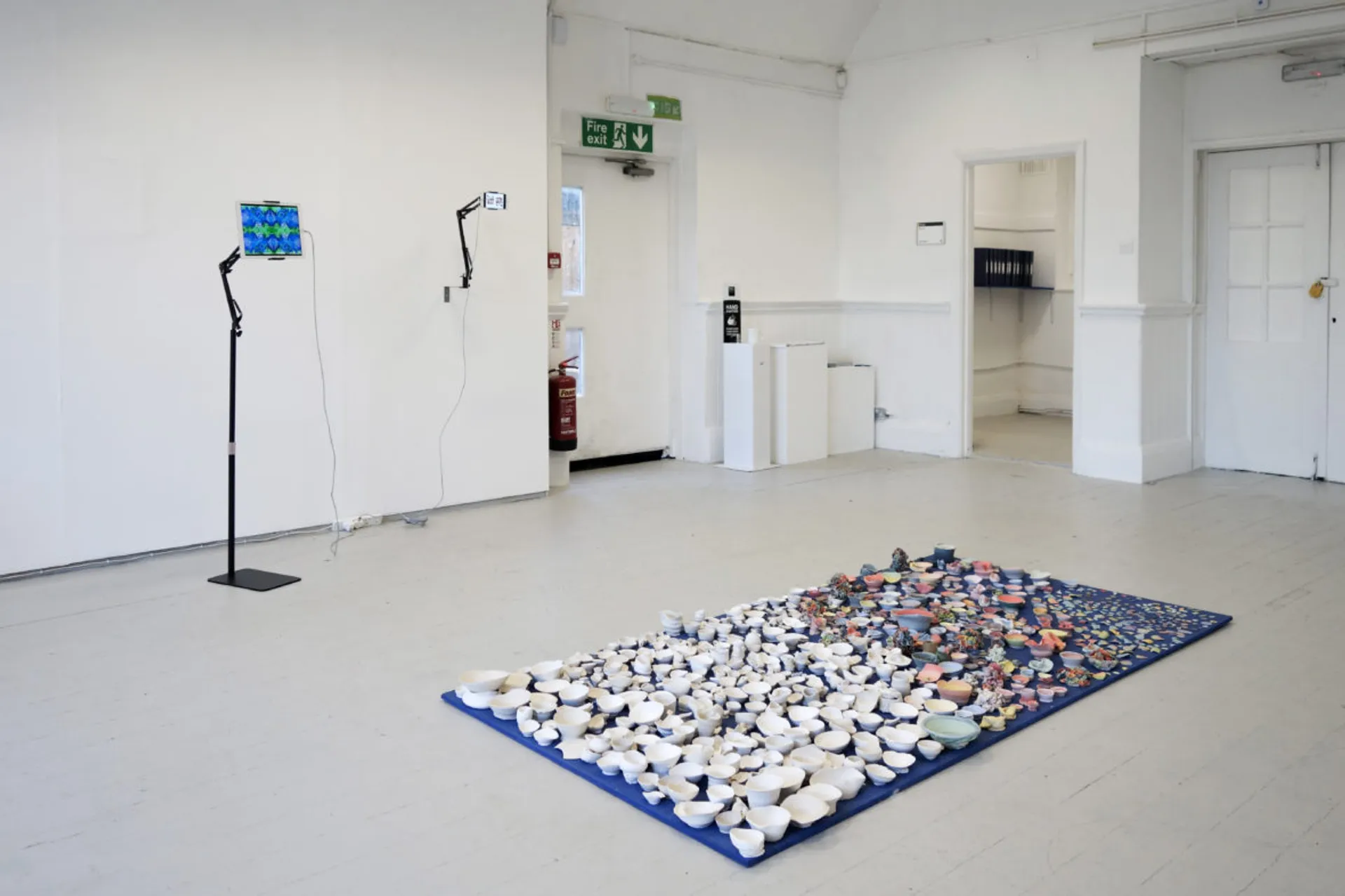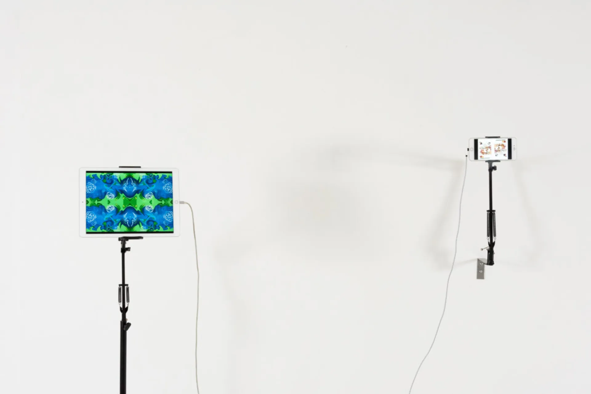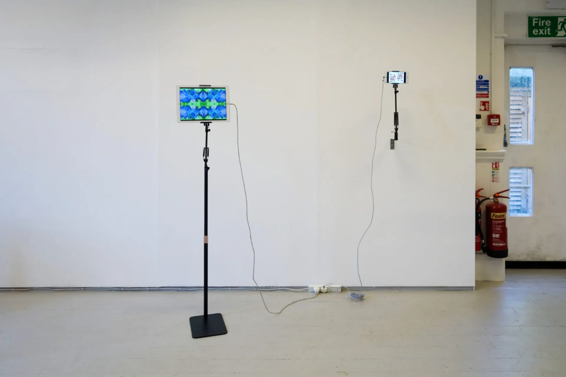 Long works in a wide range of mediums including; pencils, glue sticks, clay, household waste, and electronic art. In the past two years, living under the pandemic has led her to focus on food, the internet and the ways in which algorithms control our actions. Food is directly related to our survival, embodies social hierarchy, shows wealth disparity and the different lives we lead as a result. Long cites food as a breakthrough and fundamental social marker and uses her practice, two series of works, ‘The original long life‘ and ‘Going forward, going backwards‘ to discuss the consumption alienation. Through recreating and combining Long’s existing digital works, she presents several groups of looping moving images on an electronic display held by a long arm articulate metal installation. From distorting and deforming well-known images like Green Giant, organic food labels, and long life milk products. Long discusses that as we shift our food purchases from the local markets to supermarkets, the way we consume is being monopolised. This monopolisation creates invisible privilege, and determines our every day life. What’s more, the Internet and the collection of data is also determining what information we are exposed to and amplifies the biases that enforce privilege.