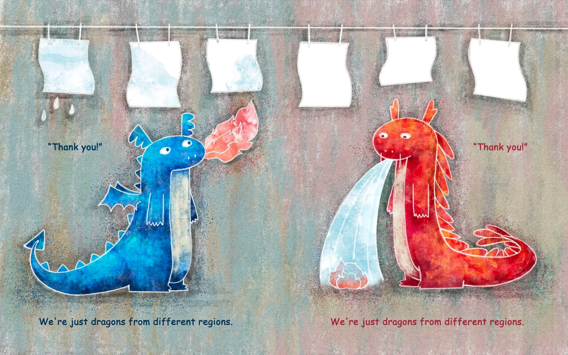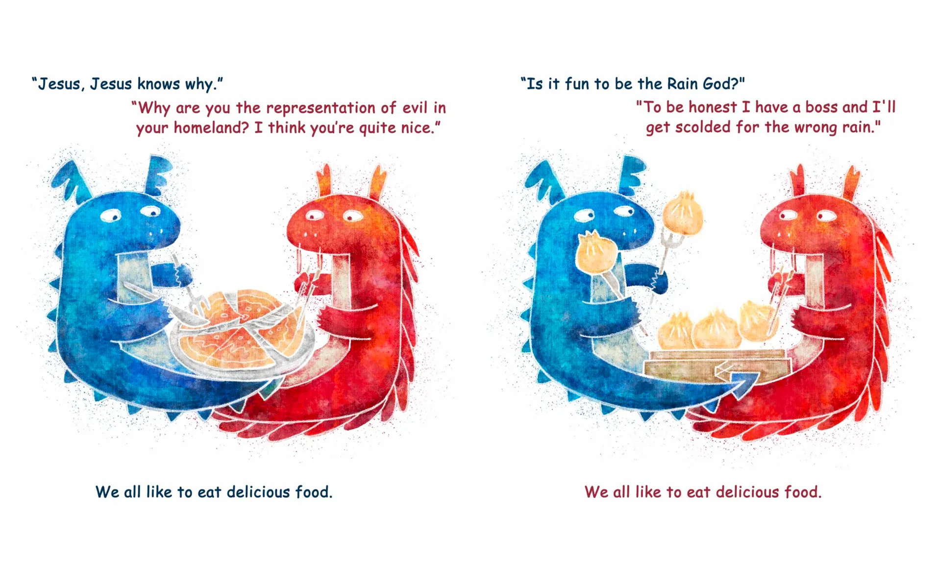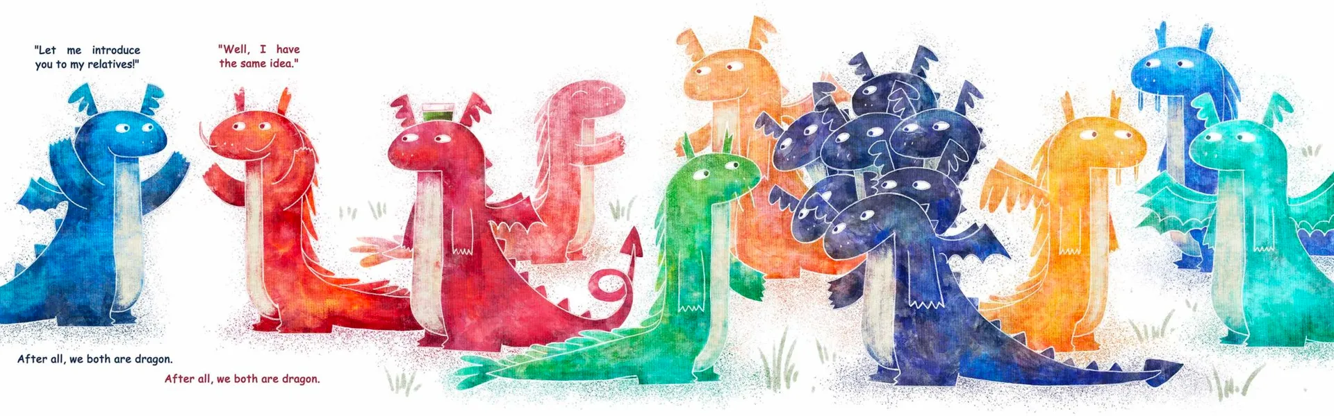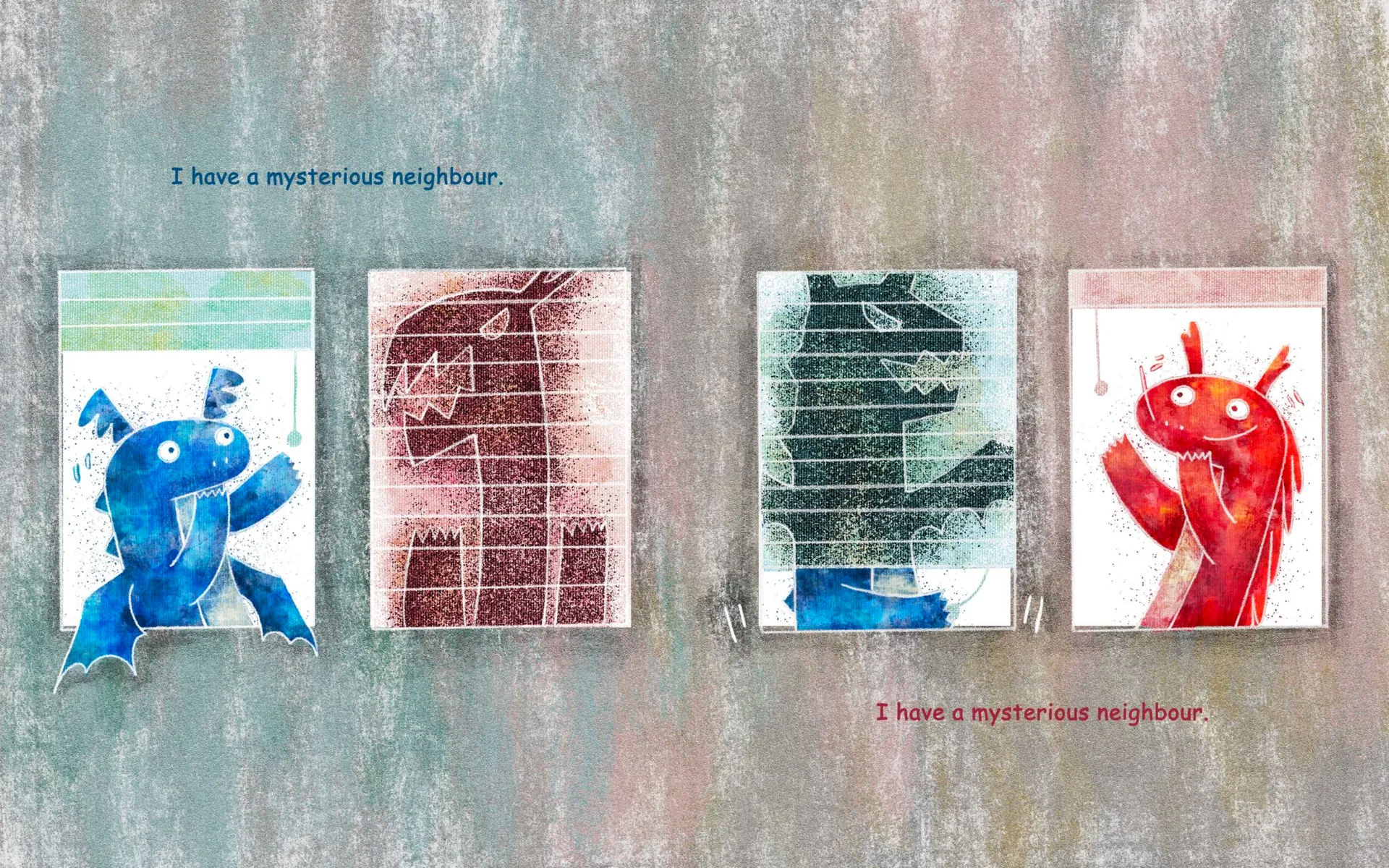 My neighbour must be a monster is a picture book for children which tells a story about two different dragons. It explores the importance of cultural empathy and tolerance in a metaphorical and relaxing way.