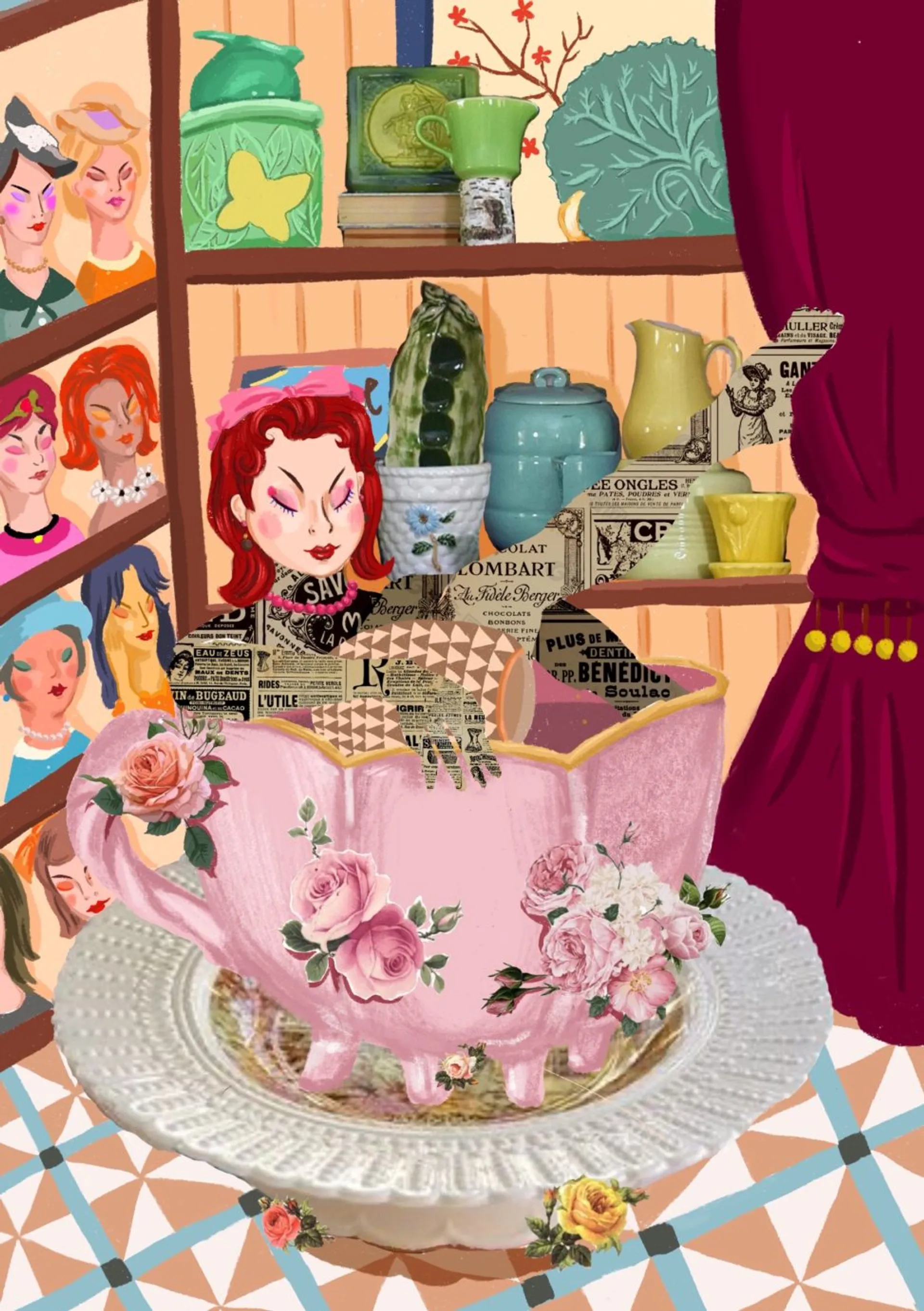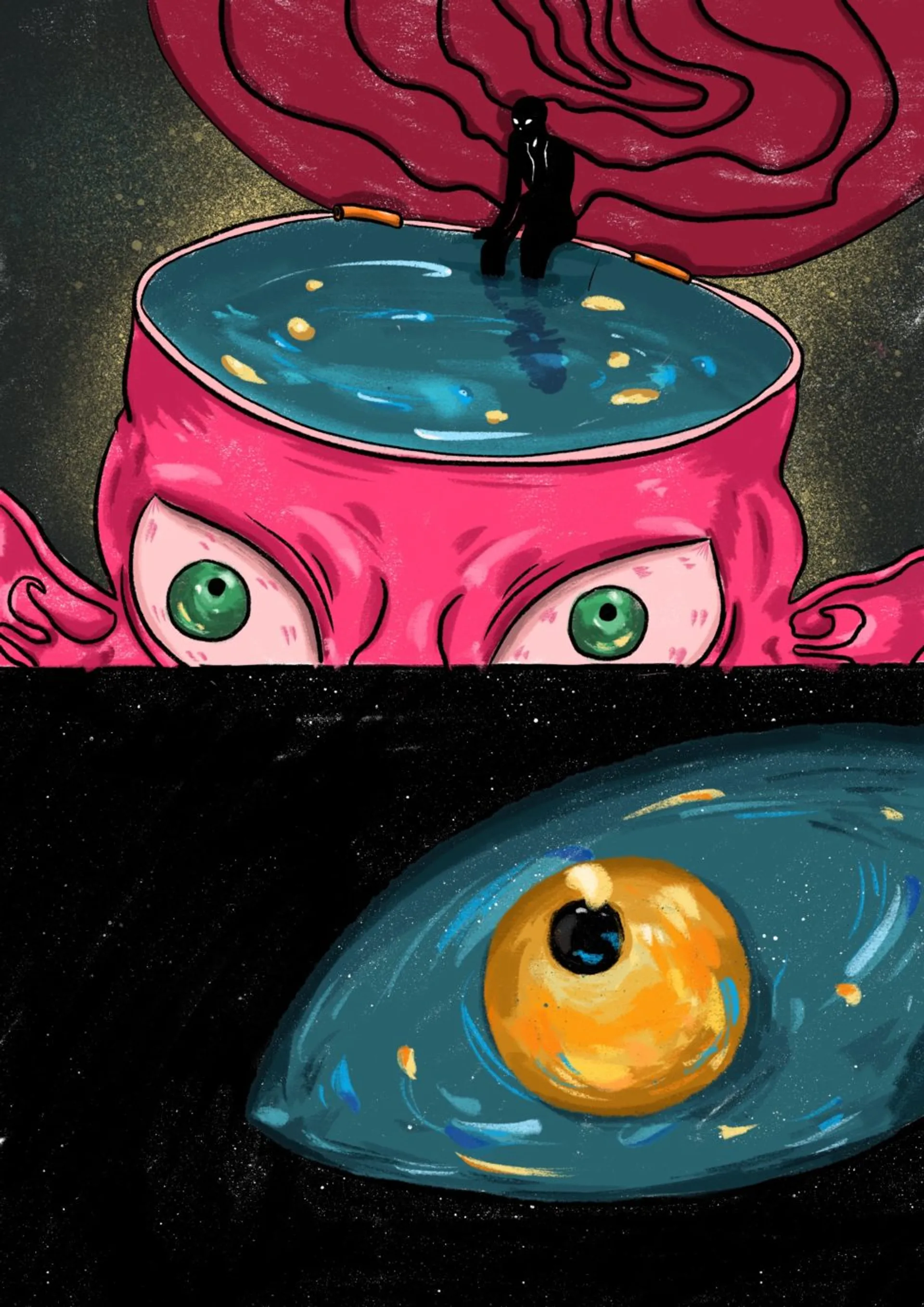 Hello! I hope my works can bring you infinite dream space. You can image what is happening to these people in the picture.And their identity, story….I really like use colorful things . Hope you like it too!
