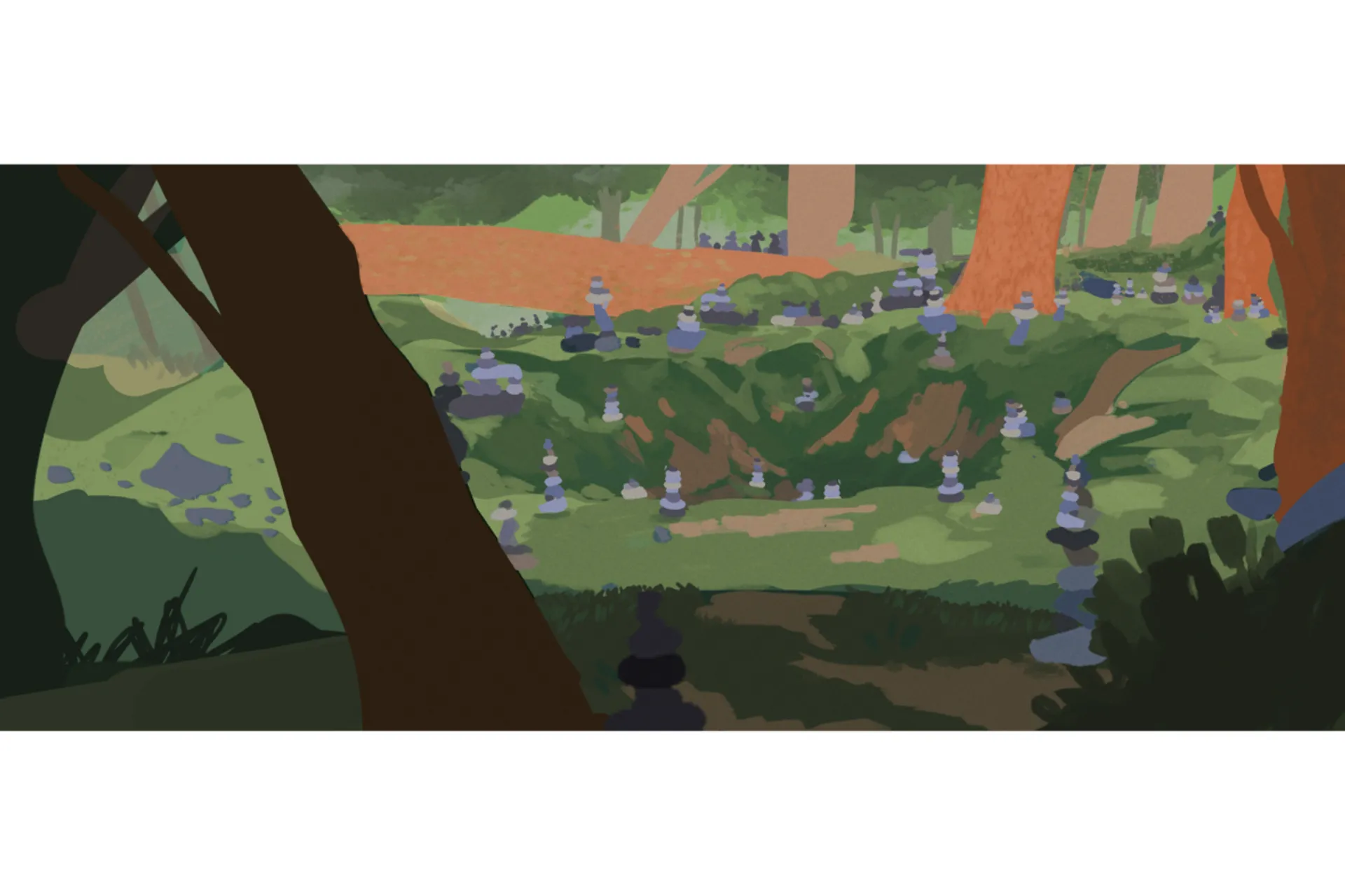 Yena’s Final Film ‘Dol’ is based on her discovery of the tradition of dol-tap (“stone-towers”) which are piles of rocks that symbolise hopes and prayers; found in the corners of Korea’s mountain trails. Inspired by the thought of countless stories behind seemingly insignificant rocks, she created a short animation with themes of innocence, passing on traditions, a wordless language of hope and a nod to Korea’s difficult history.