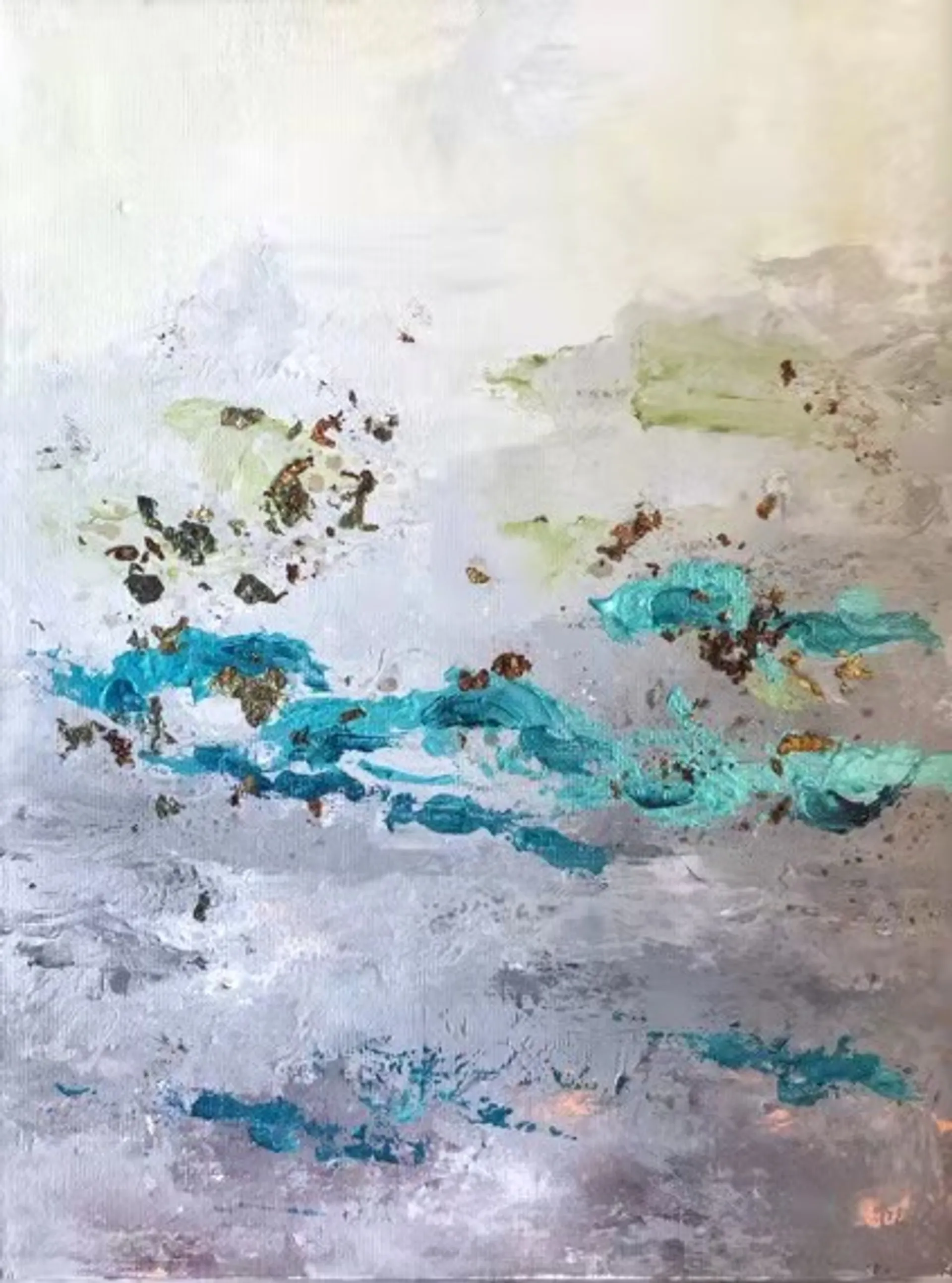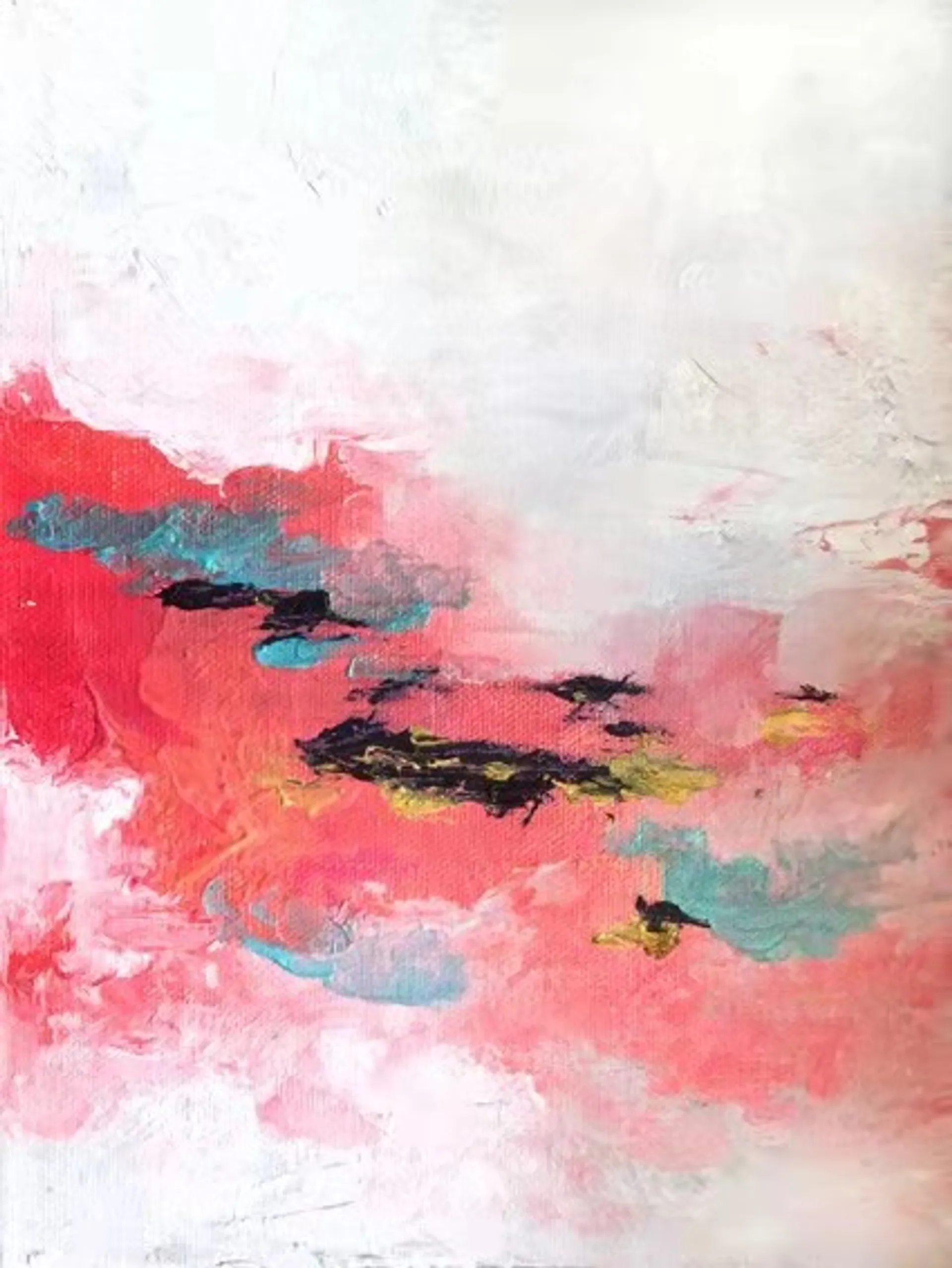 This set of paintings constructs a visualisation of pathological cellular activities inside a body suffering from cancer. Each individual represents a related symptom including internal haemorrhage, helcodermatosis, etc. Colours are put to the canvas with one single palette knife. Some parts also contain other materials such as gold foil papers, they would be applied onto the moist as a symbolisation of something heterogeneous and invasive like cancer cells. This series is inspired by scan image of cells broadly used in medical practice. It could be seen as an extension of surgical illustration in modern age. This kind of images is normally presented in vibrant colours to high-lighten the sophisticated structure of cells. These works adapt a similar colour scheme to depict various states of internal pathogenic development in an abstract method.