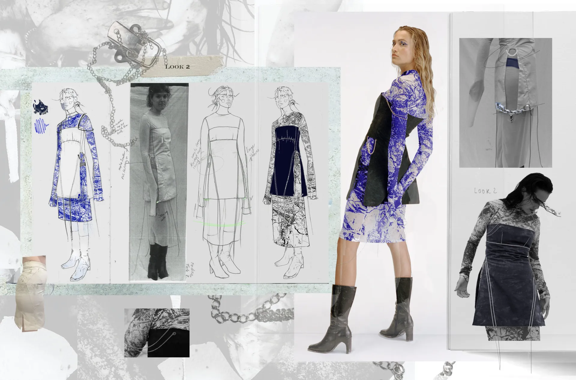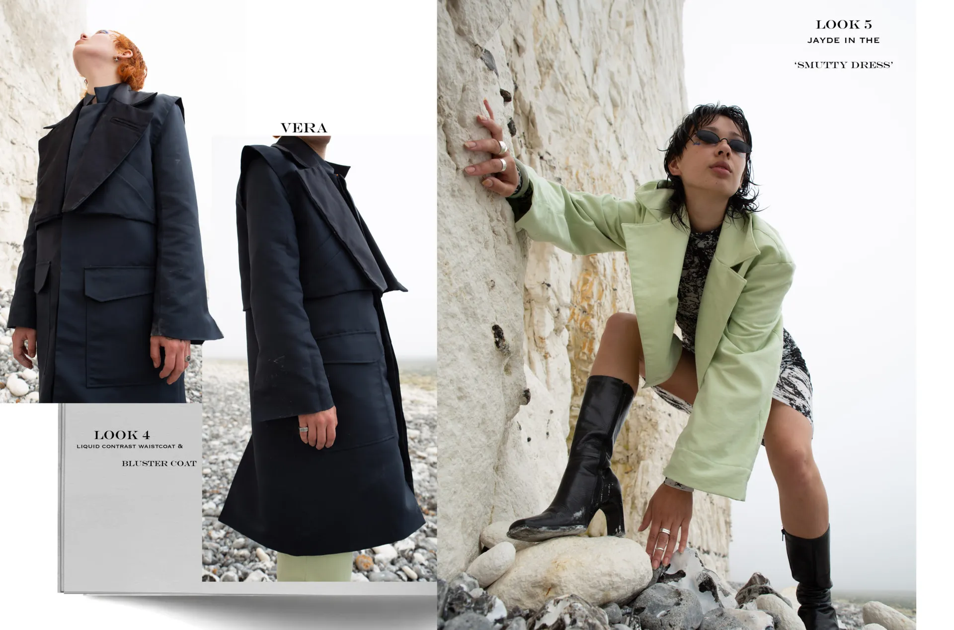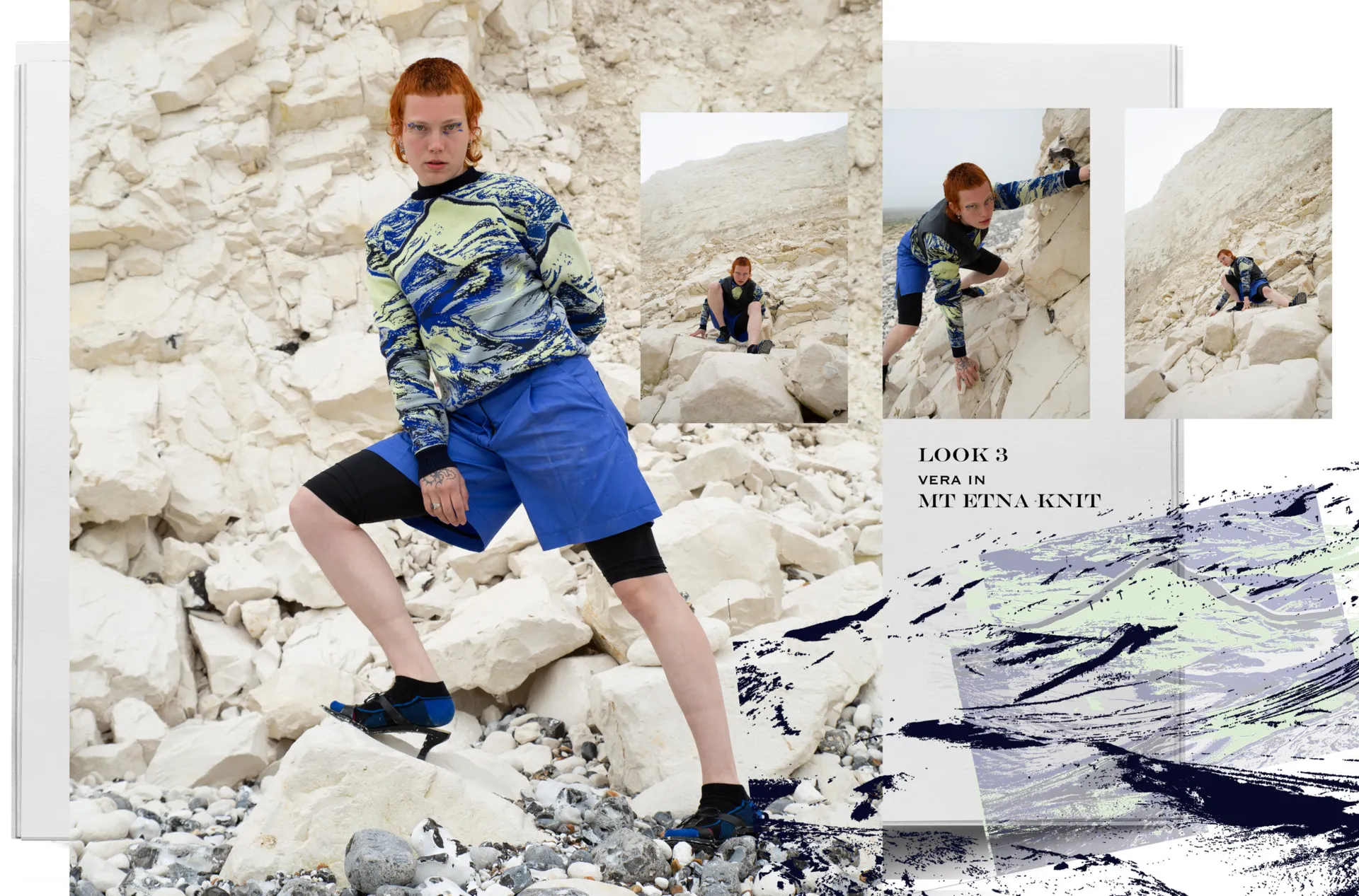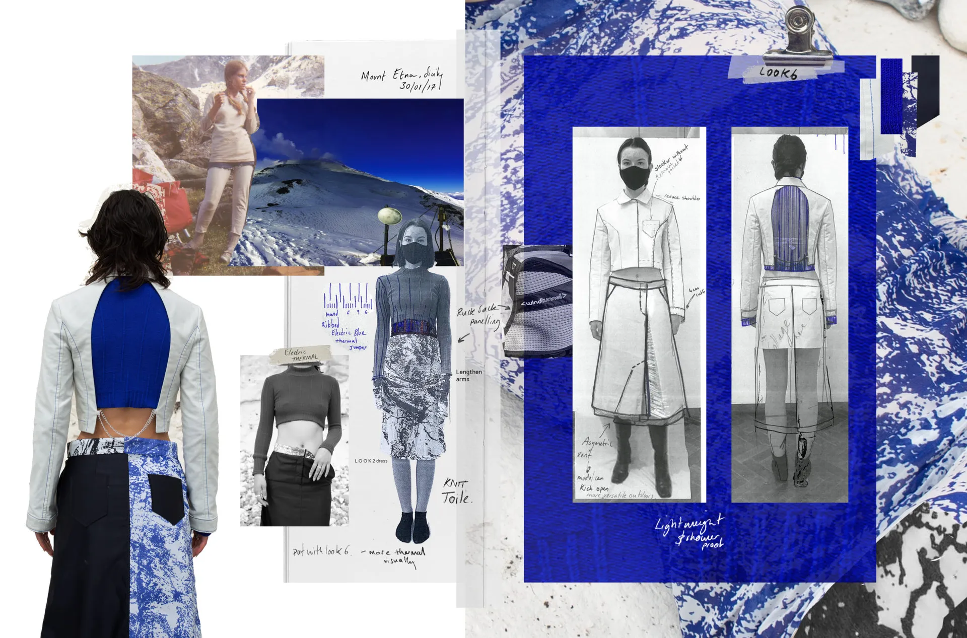YOUTHFUL BRAVERY – hopes to mould a narrative for the post pandemic woman to reclaim their childlike fearlessness to start exploring the world again. inspired by my own inner traveller and the women i have met along the way. i have used elements of my own old and worm travelling uniform to inform my design work. From cargo pants and knitted thermal undergarments, to the old and somewhat impractical dresses i climbed mountains in.