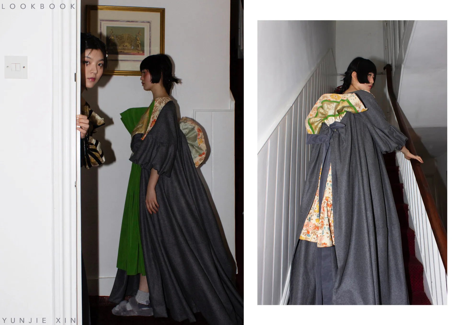 My initial idea comes from my childhood memory, when my mother was altering kids garments to fit my sister and me in order to give the garments a longer life. And my mother told me that my grandma used to do this as well, which made me think of ‘make do and mend’ in WW2 when people were sourcing non-garment fabrics to make clothes to wear.