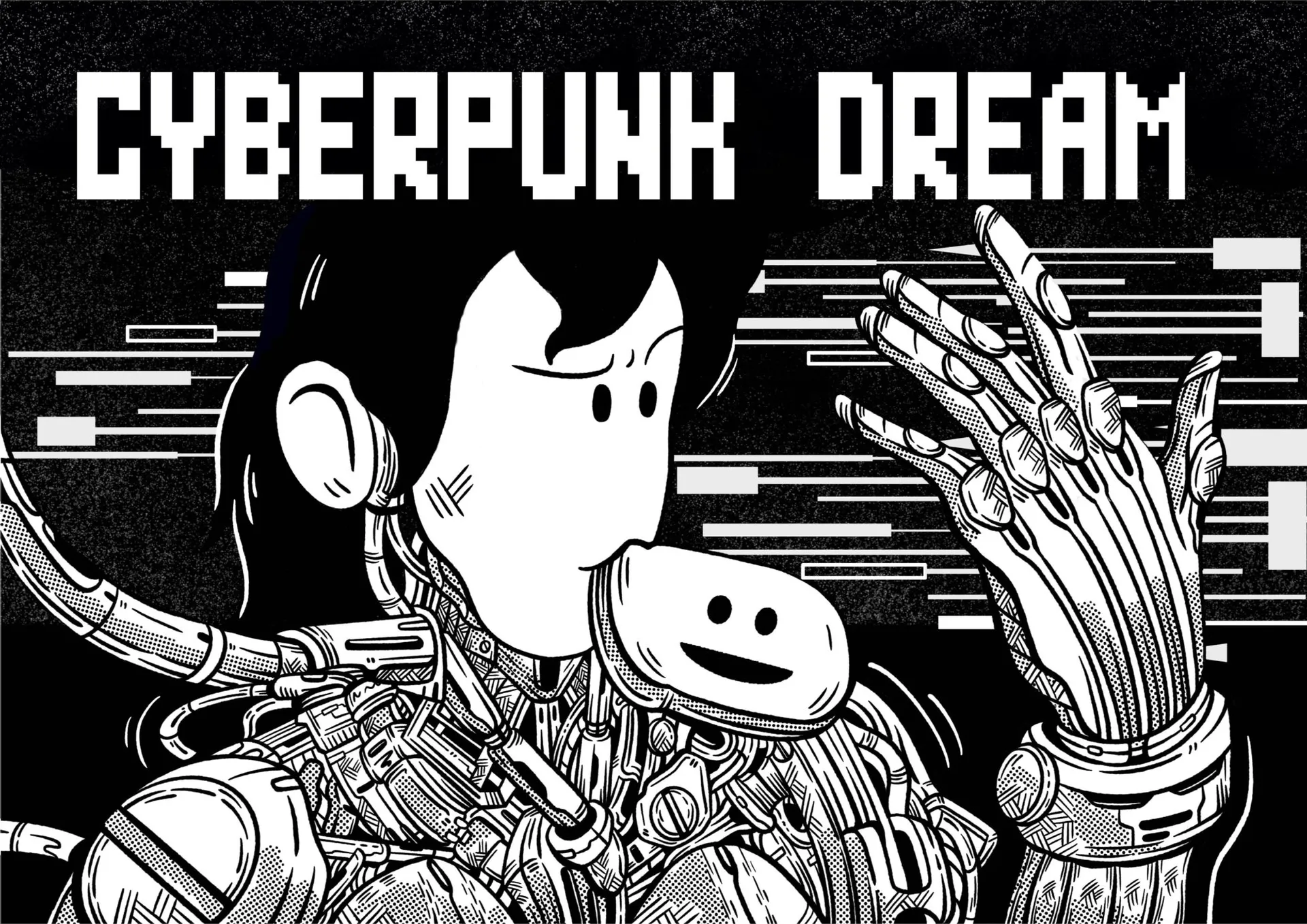 Cyberpunk Dream is a science fiction comic book story in which the main character travels throughout the cyberpunk world. The comic looks at various aspects of the cyberpunk lifestyle and explores how cyberpunks eat, dress, travel and entertain themselves. In the comic, readers will find ideas and concerns that relate to realities of the human world.