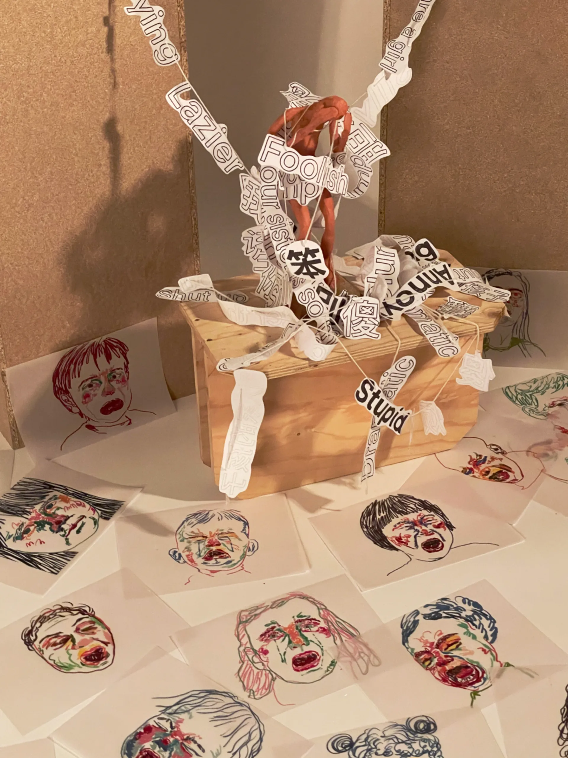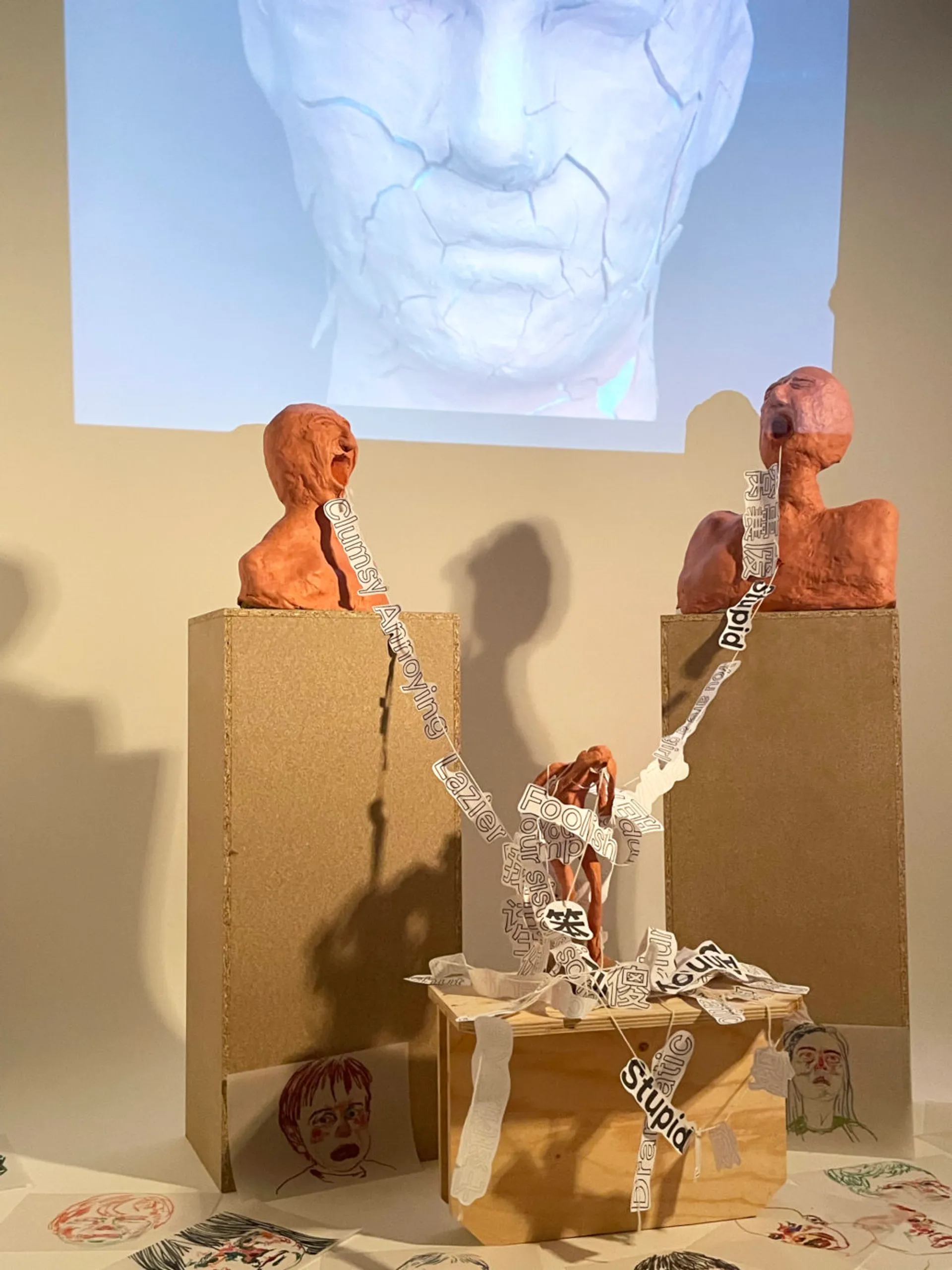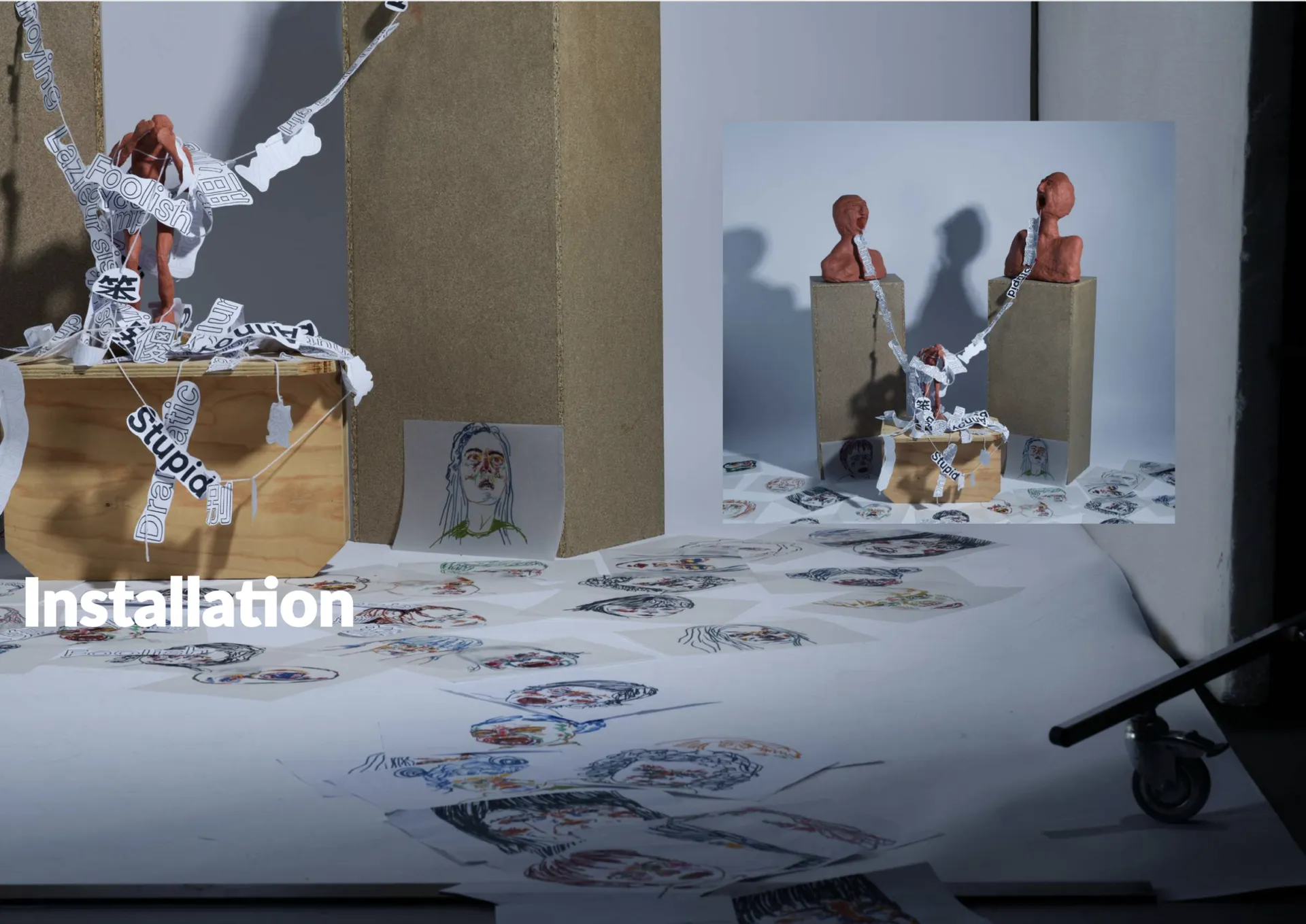 The project explores the fact that children who are exposed to verbal violence by their parents in childhood experience many different behaviours as they grow up, most of which are harmful. The target audience for this project is all parents and carers. It encourages the audience to reflect on and learn from their own experiences and behaviour, with the hope that this might contribute to a reduction in abusive incidents towards children. The installation uses video and sound to create an immersive experience for the audience and the final visual presentation shows the extent of damage that can be done to children by those that are supposed to care for them.